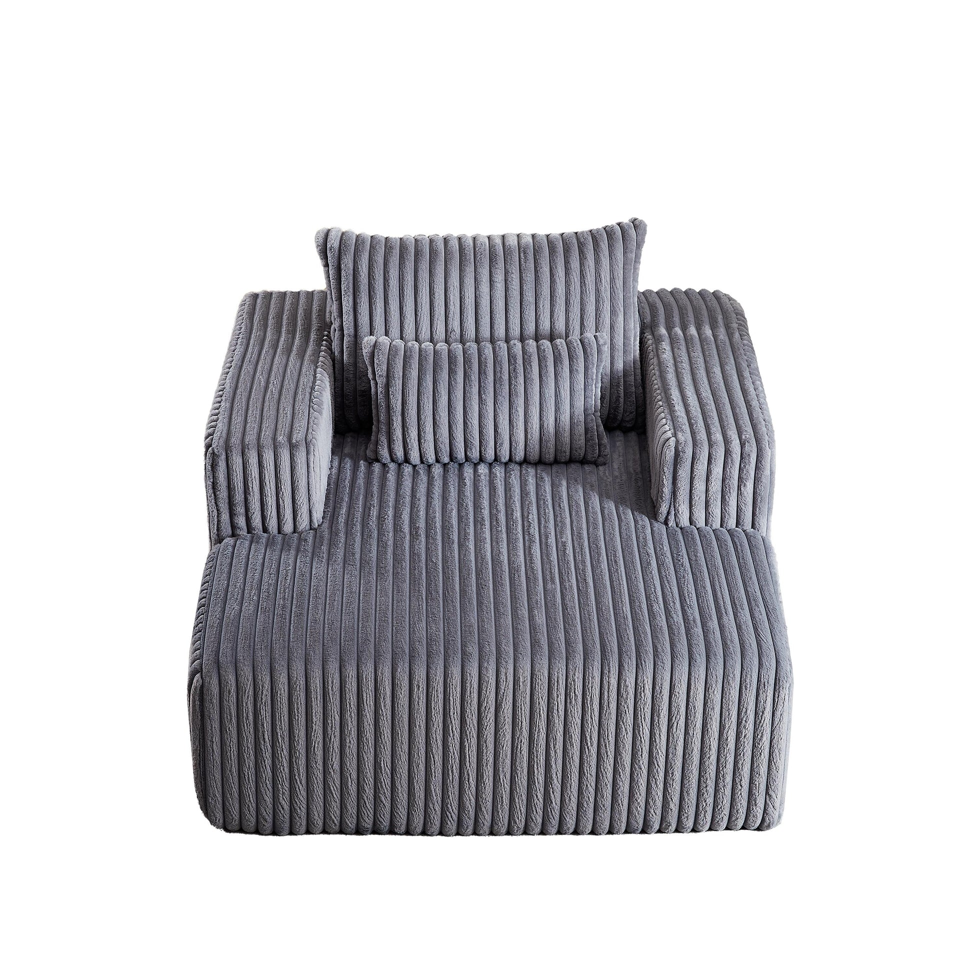 Fauteuil de salon gris moderne en velours côtelé éponge 62,5 avec 2 coussins pour salon