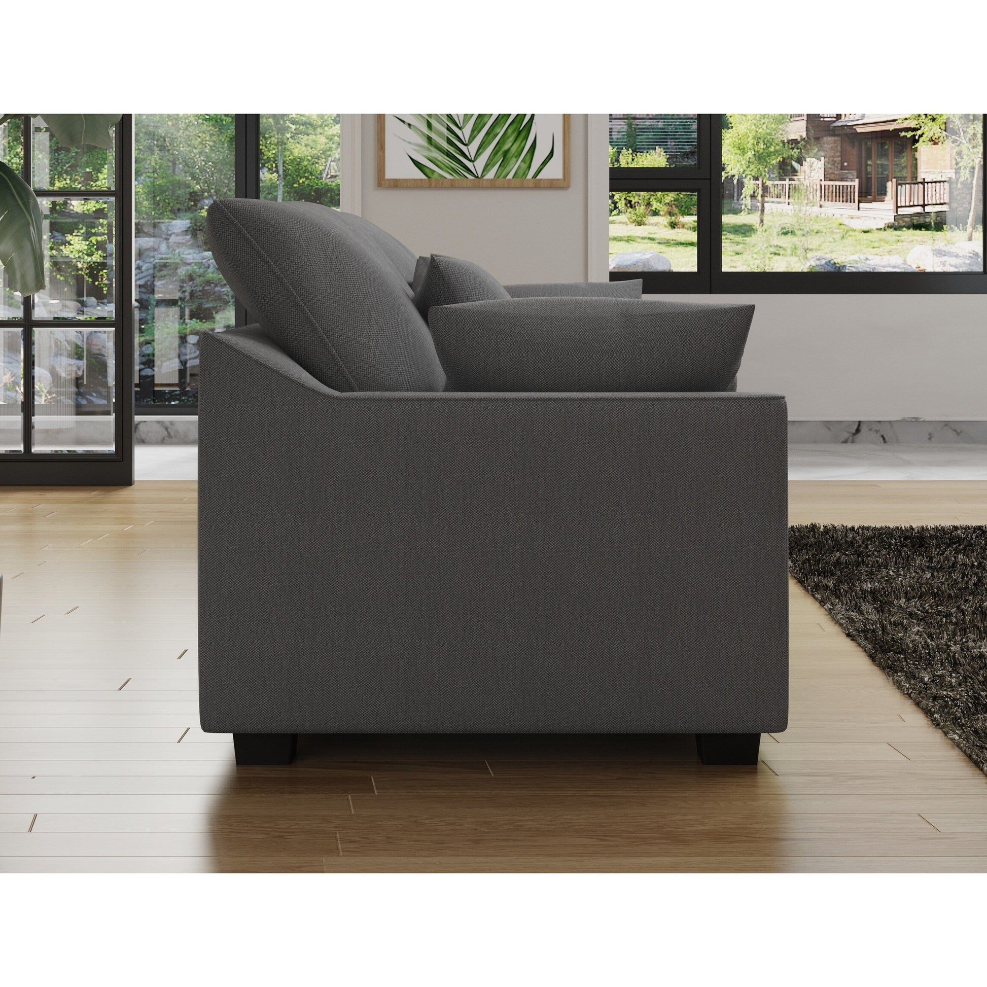 - Matériaux de haute qualité : Le canapé est fabriqué en tissu haute performance 100 % polyester. Les coussins de dossier amovibles sont garnis de polyester doux et soutenus par des ressorts à l'intérieur, ce qui augmente l'élasticité et le confort du canapé. Les pieds du canapé sont en bois massif.