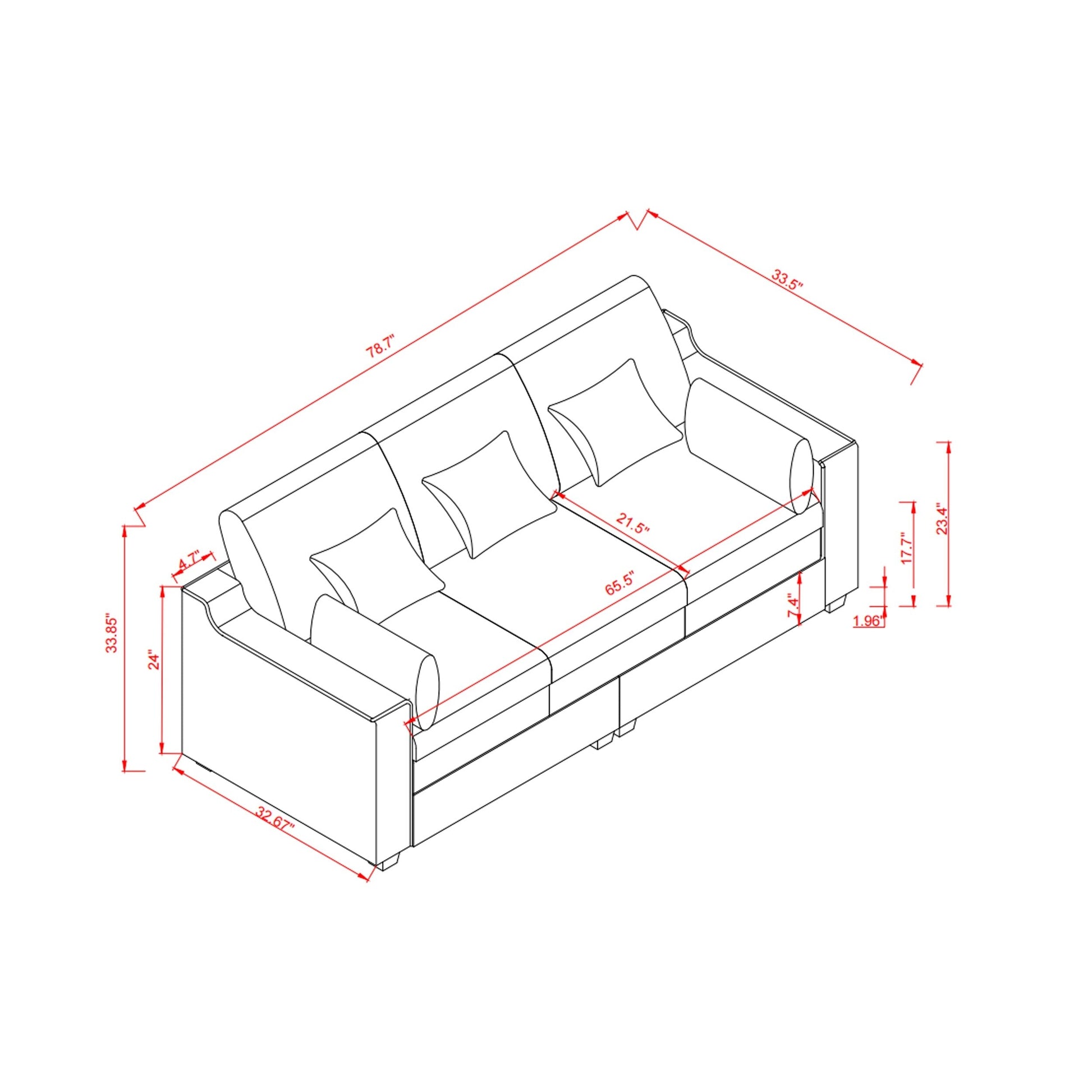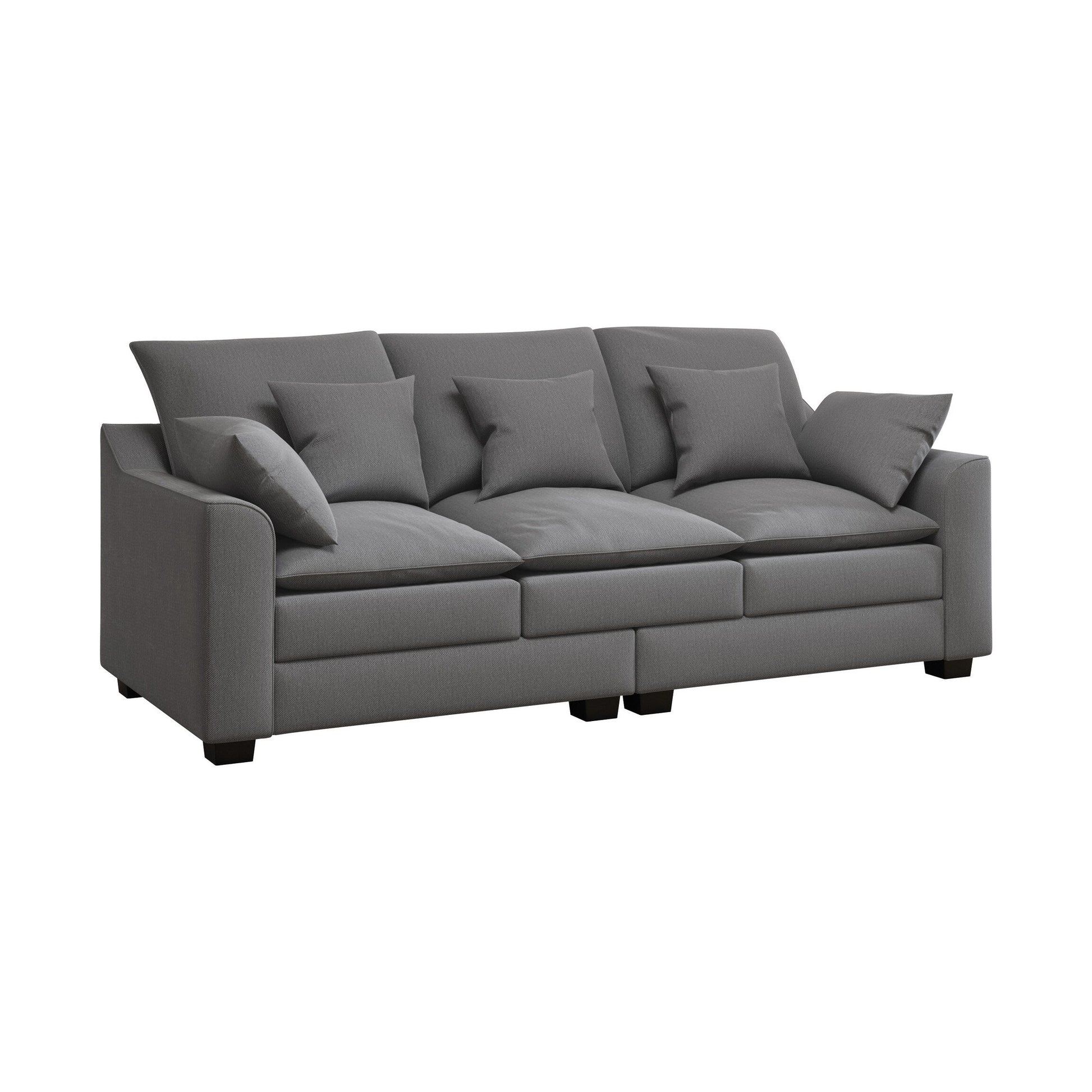 Canapé 3 places gris moderne en polyester 78,7 avec coussins et pieds en bois massif pour le salon