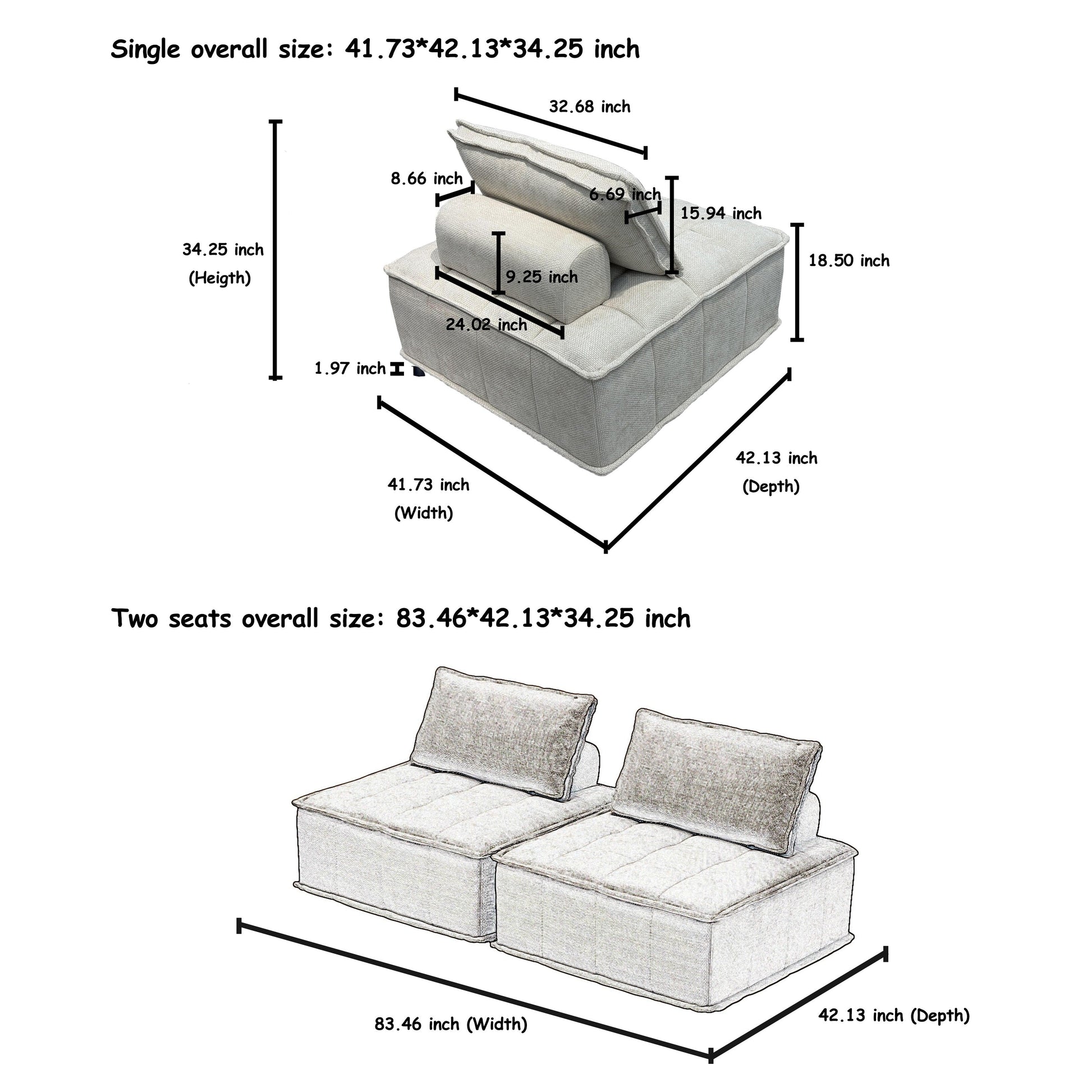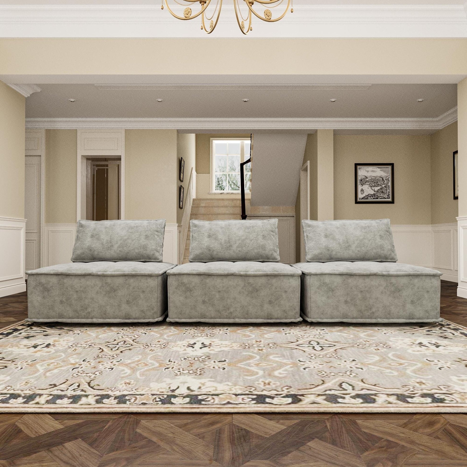 Ensemble de canapés modulaires carrés surdimensionnés gris 3 pièces en chenille avec coussins en mousse haute densité, combinaison libre