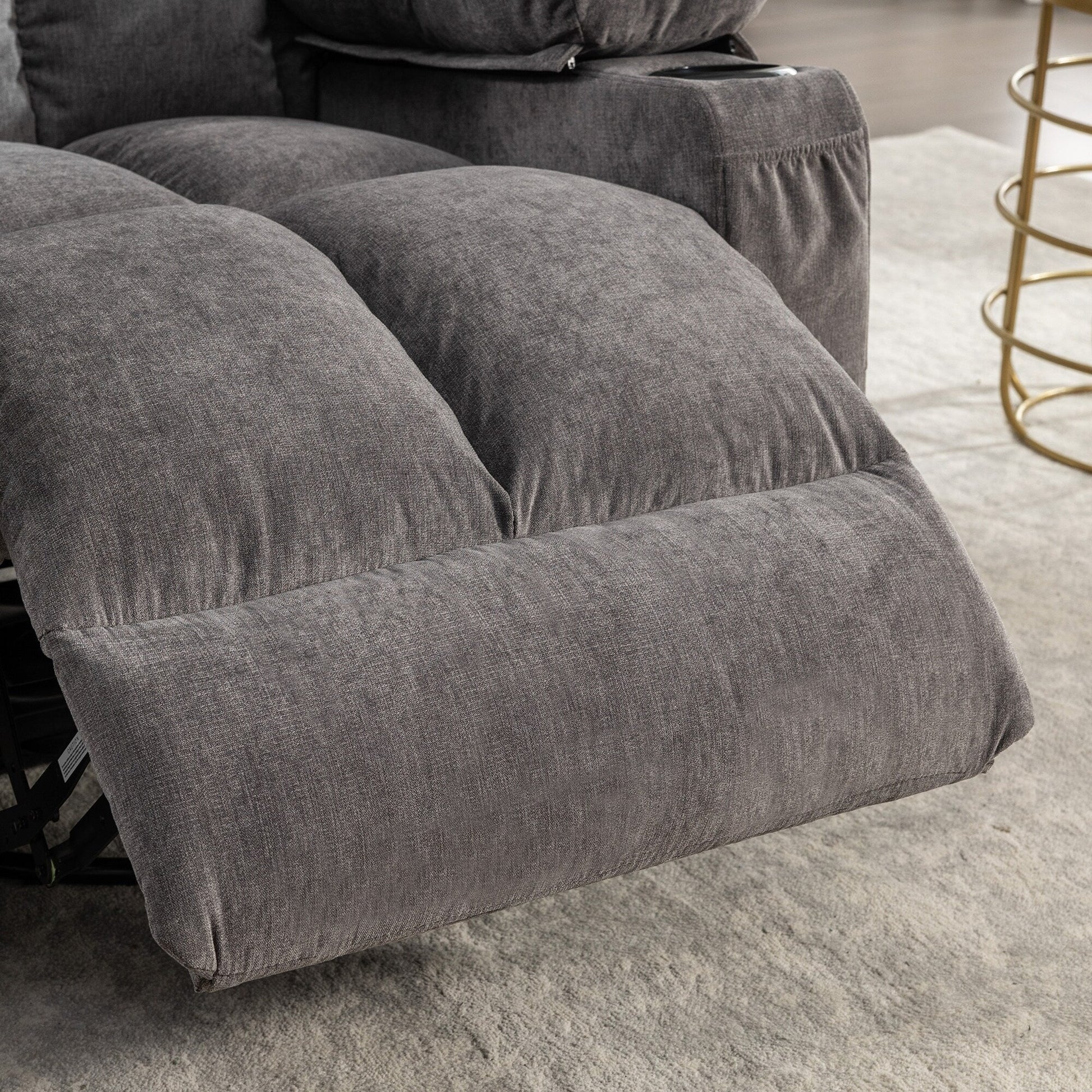 Fauteuil inclinable à bascule surdimensionné gris avec massage par vibrations, chauffage, port USB, deux porte-gobelets et rangement latéral