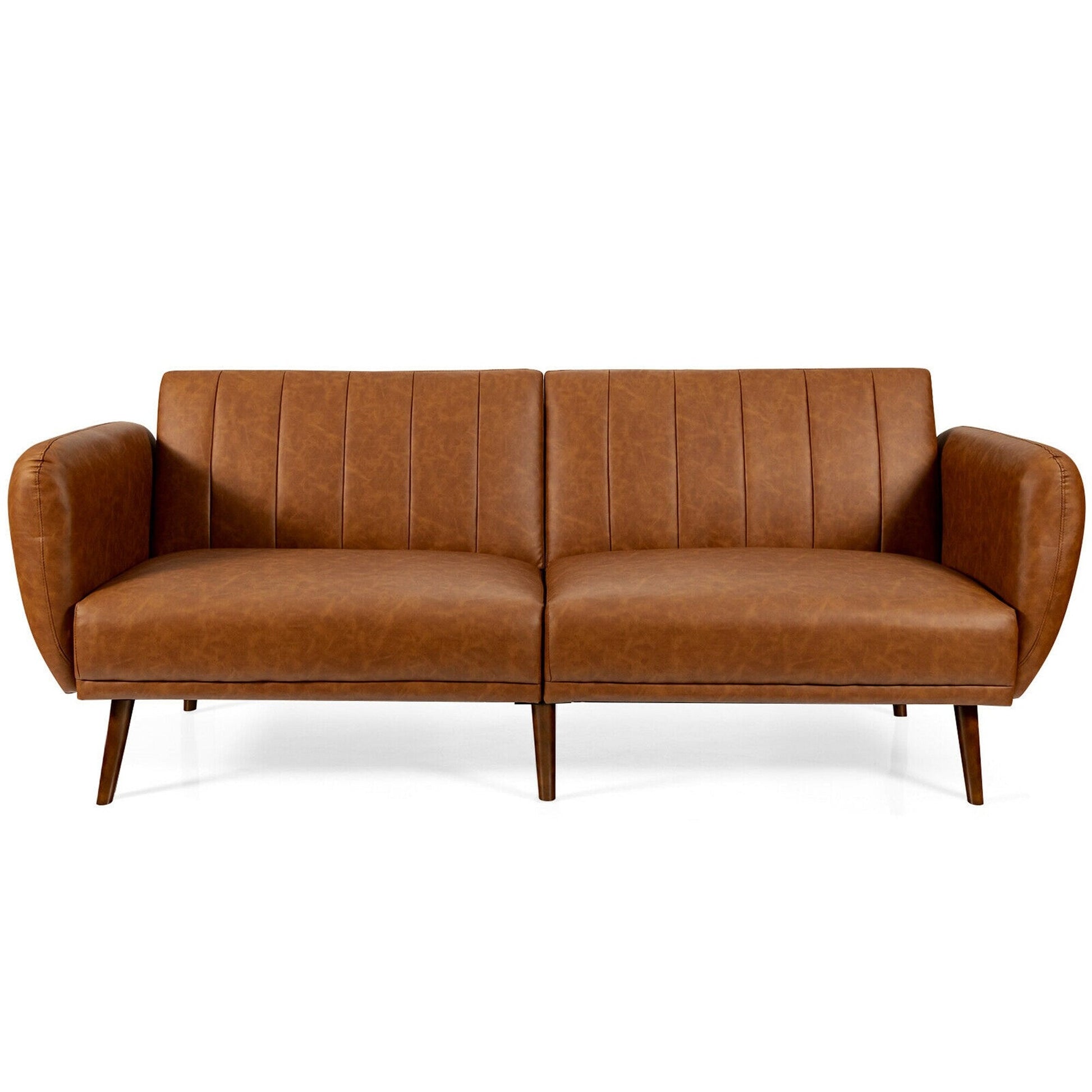 Canapé-lit futon convertible Gymax en polyuréthane réglable avec bois