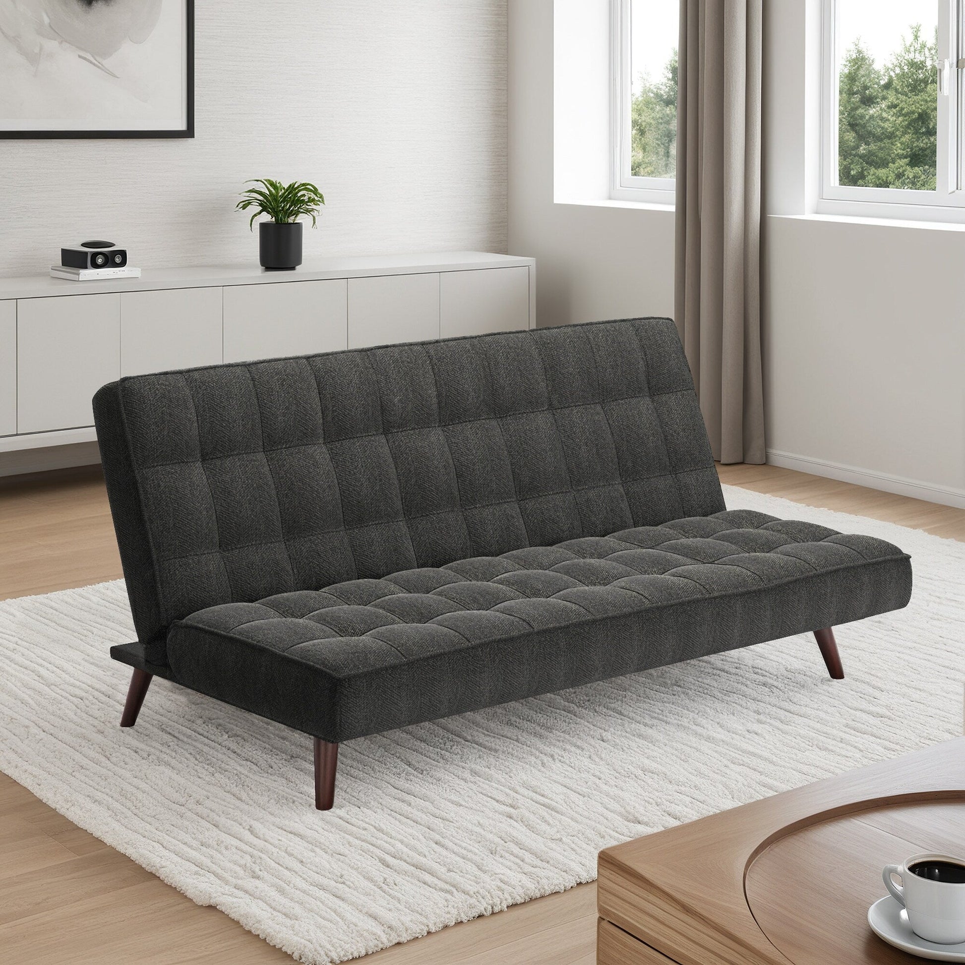 Redéfinissez votre espace avec un futon polyvalent : ce meuble transitionnel capitonné en chenille est soigneusement conçu pour apporter confort et élégance à chaque espace. Grâce à son dossier multi-positions, il se transforme facilement d'un canapé chic en une chaise longue décontractée, puis en un lit spacieux, ce qui en fait le compagnon idéal pour les soirées pyjama improvisées ou pour une utilisation quotidienne. Son revêtement en chenille ultra-doux apporte une touche chaleureuse et accueillante, tandis que son capitonnage profond lui confère une silhouette structurée et ajustée. Soutenu par des pieds fuselés en bois, subtilement inspirés du style Mid-Century, ce futon offre l'équilibre parfait entre style et fonctionnalité. Un investissement élégant et judicieux pour tous ceux qui cherchent à optimiser l'espace sans compromettre le style.