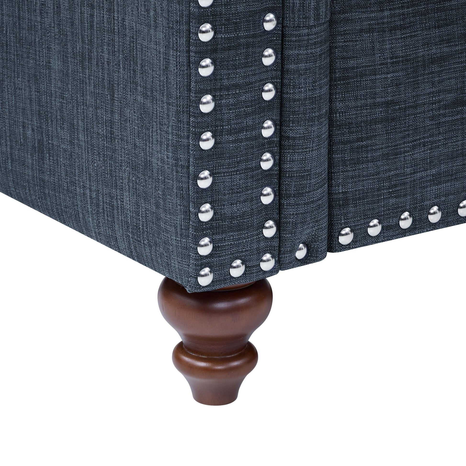 - Des ressorts à arc dans l'assise empêchent son affaissement au fil du temps. De plus, ce canapé est doté de pieds tournés et d'accoudoirs roulés avec une garniture cloutée classique, complétant ainsi un style aussi bien traditionnel que campagnard français.