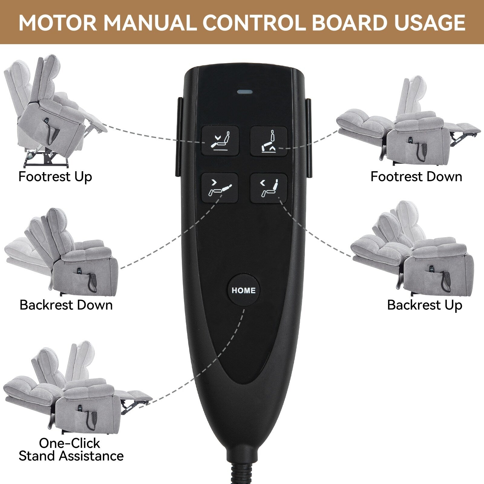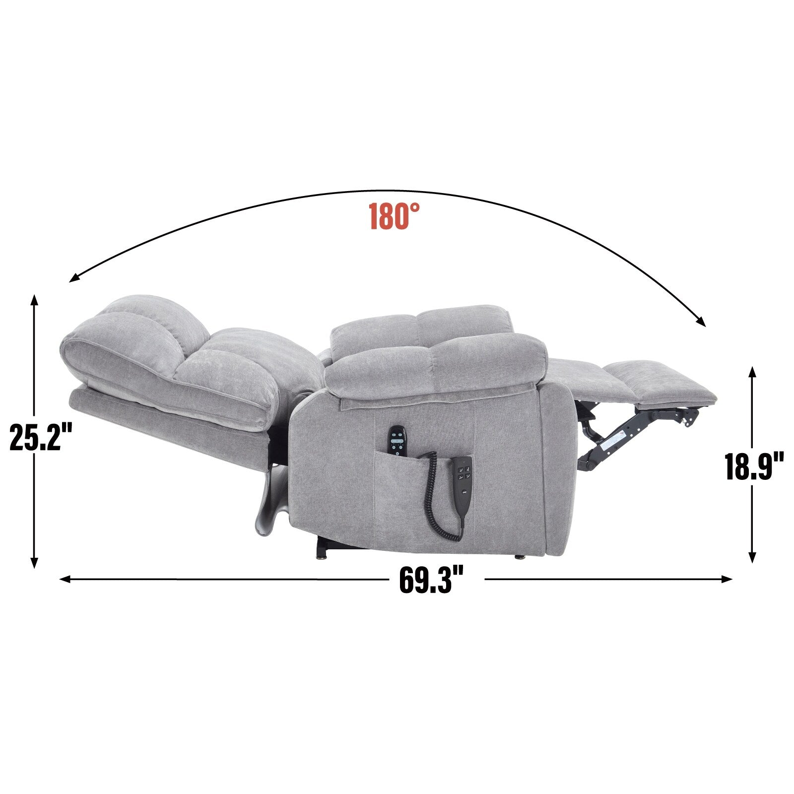 Fauteuil releveur électrique à double moteur : la télécommande permet de contrôler l'élévation ou l'inclinaison du fauteuil. Vous pouvez ainsi obtenir la position souhaitée, qu'il soit incliné à près de 180 degrés ou relevable. Le fauteuil releveur est propulsé par un moteur électrique qui le relève entièrement, fonctionnant en douceur et en silence pour aider les personnes âgées à se lever facilement. Il est également idéal pour les personnes souffrant de problèmes d'équilibre au niveau des jambes ou du dos, ou après une intervention chirurgicale.