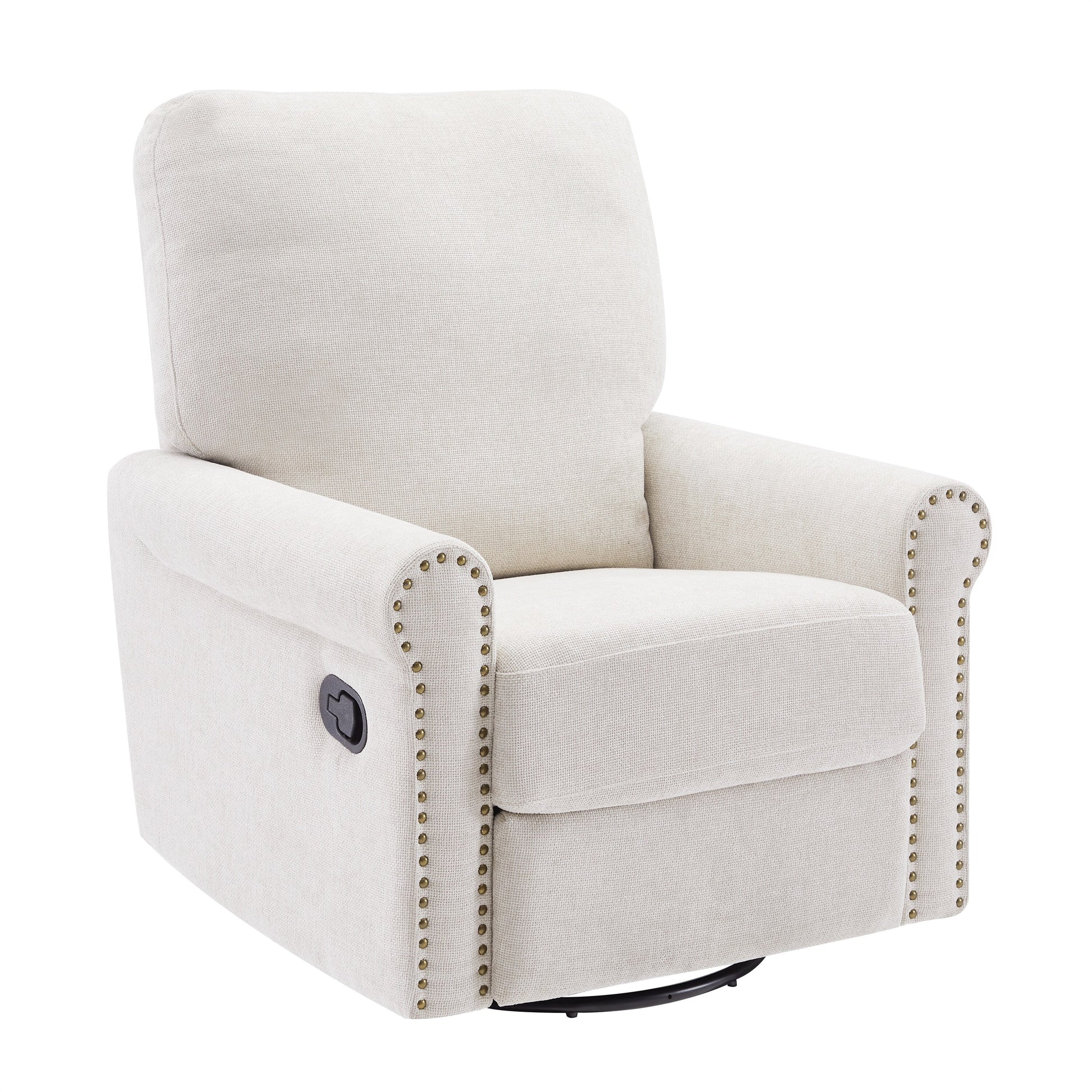 Ce fauteuil inclinable pivotant à 360° allie confort, fonctionnalité, durabilité et style à la chambre de bébé. Doté d'un dossier moelleux et d'accoudoirs confortables, il offre un espace de détente tout au long de la journée, tandis que ses élégants clous décoratifs ajoutent une touche d'élégance à sa silhouette classique.
