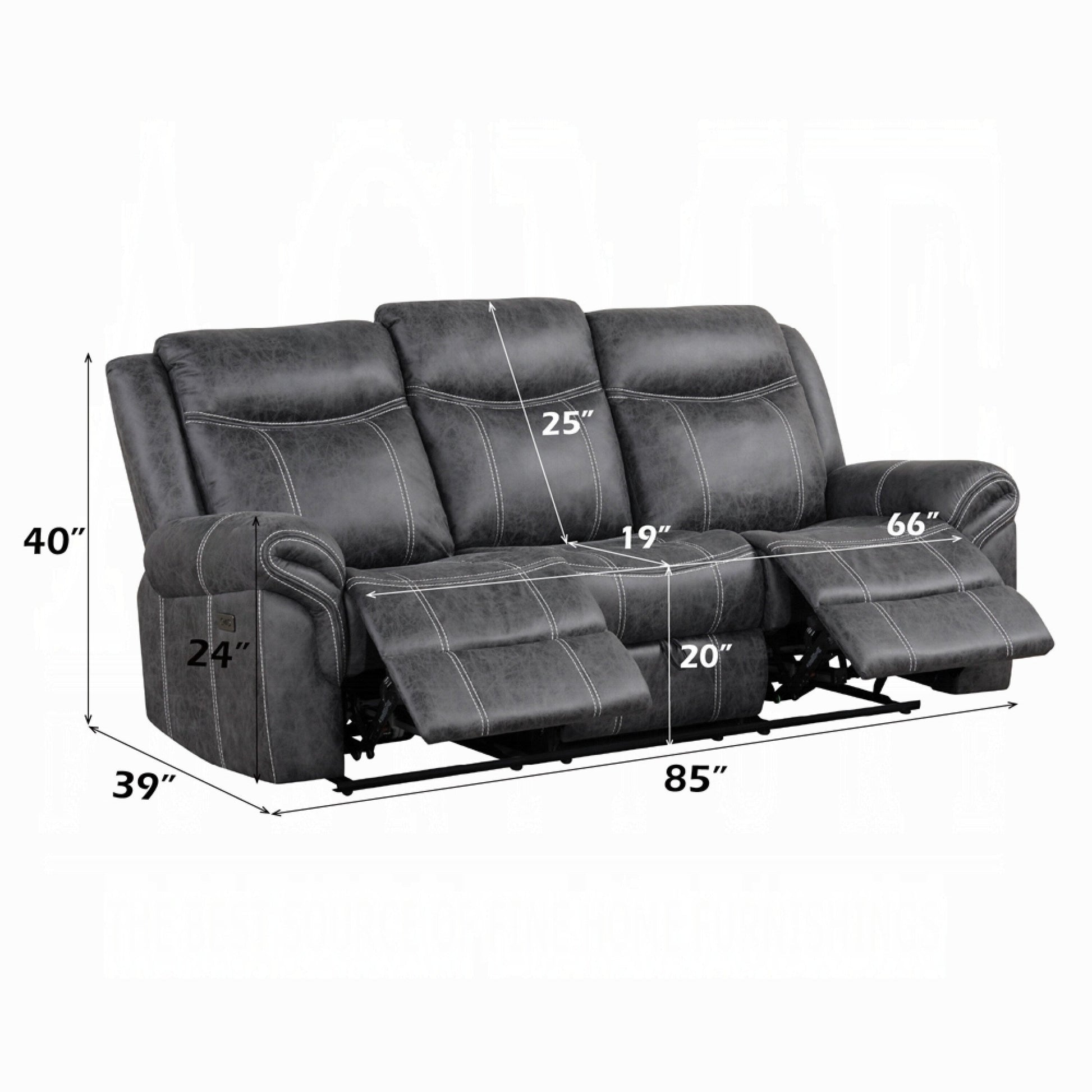Canapé inclinable électrique Hesy avec table rabattable, gris foncé, 85 pouces