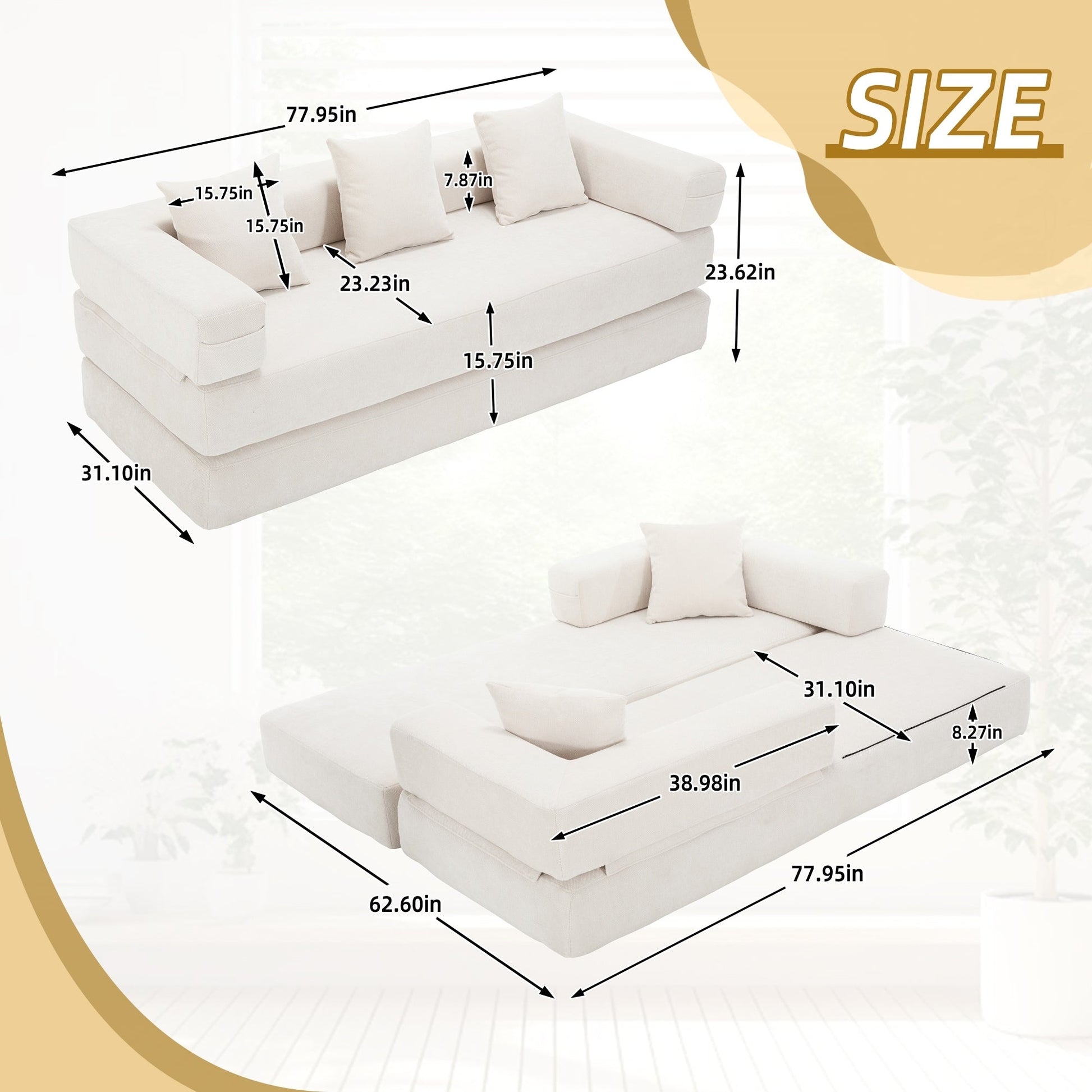 HOMEFUN Canapé-lit convertible pliable en mousse à mémoire de forme avec coussins et revêtement en chenille pour le salon