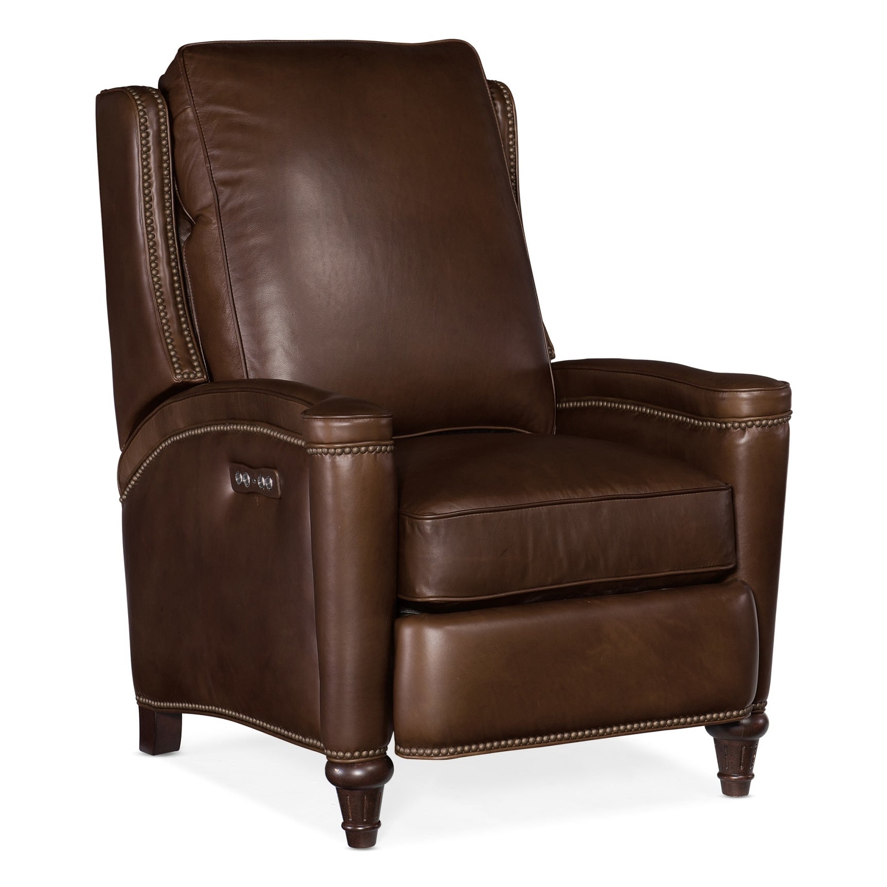 Des accoudoirs incurvés, des montants arrondis et un dossier à oreilles galbé orné de clous décoratifs confèrent au fauteuil inclinable électrique Rylea une touche de distinction. Ce fauteuil élégant allie un cuir aniline pleine fleur d'une couleur douce à des pieds en bois foncé. Un port USB est inclus pour recharger vos appareils pendant votre détente.