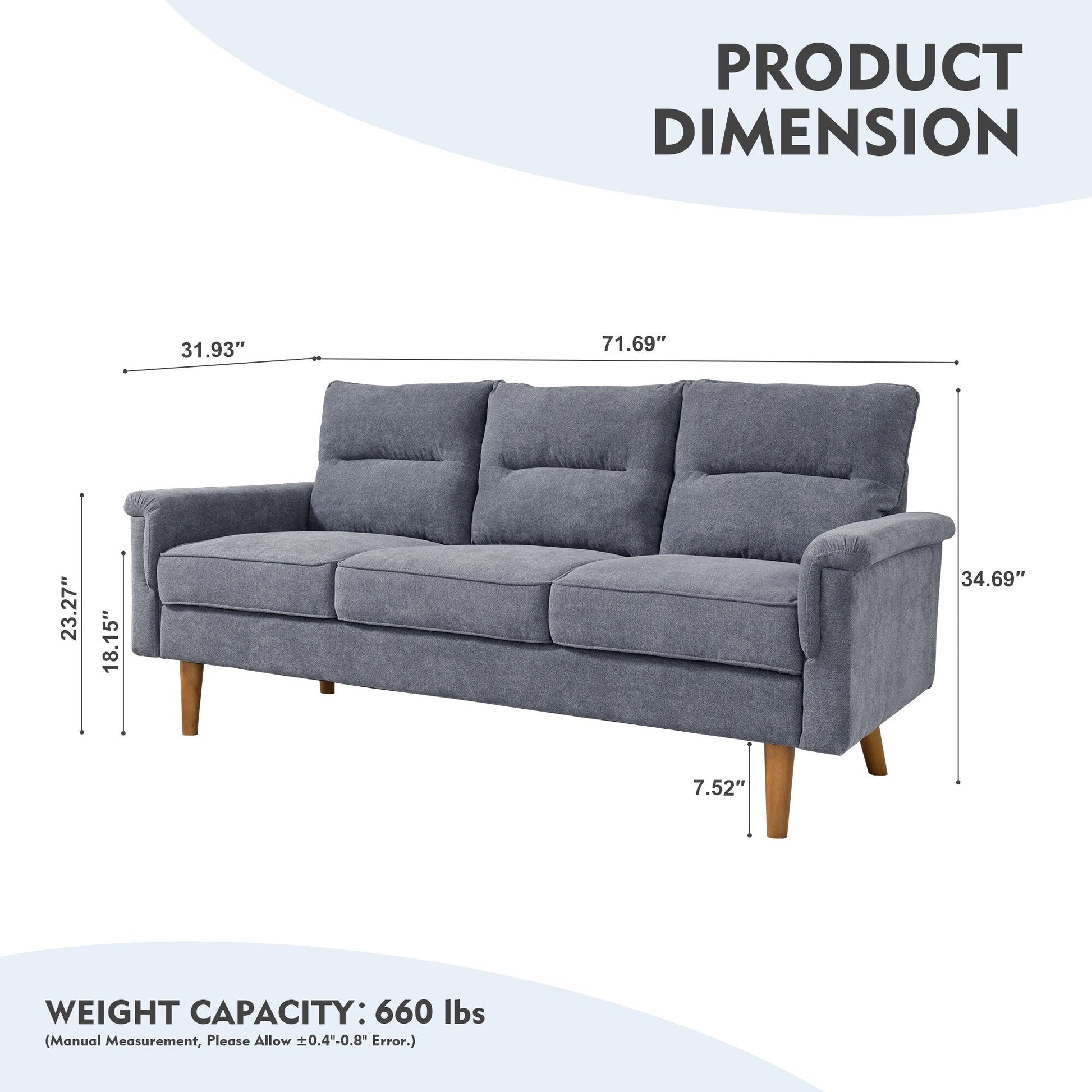 Invitez vos invités avec le design élégant et raffiné du canapé 3 places moderne en tissu rembourré HOOOWOOO de 71 pieds. Son revêtement en tissu doux et moelleux, ses couleurs naturelles, ses lignes épurées et ses pieds en bois robustes lui confèrent un confort et une élégance intemporels. Grâce à ses coussins en éponge à rebond élevé et en coton PP, vos invités se détendront et apprécieront son design élégant et tendance. Disponible en daim ou en polyester, ce canapé est un excellent choix pour tout intérieur.