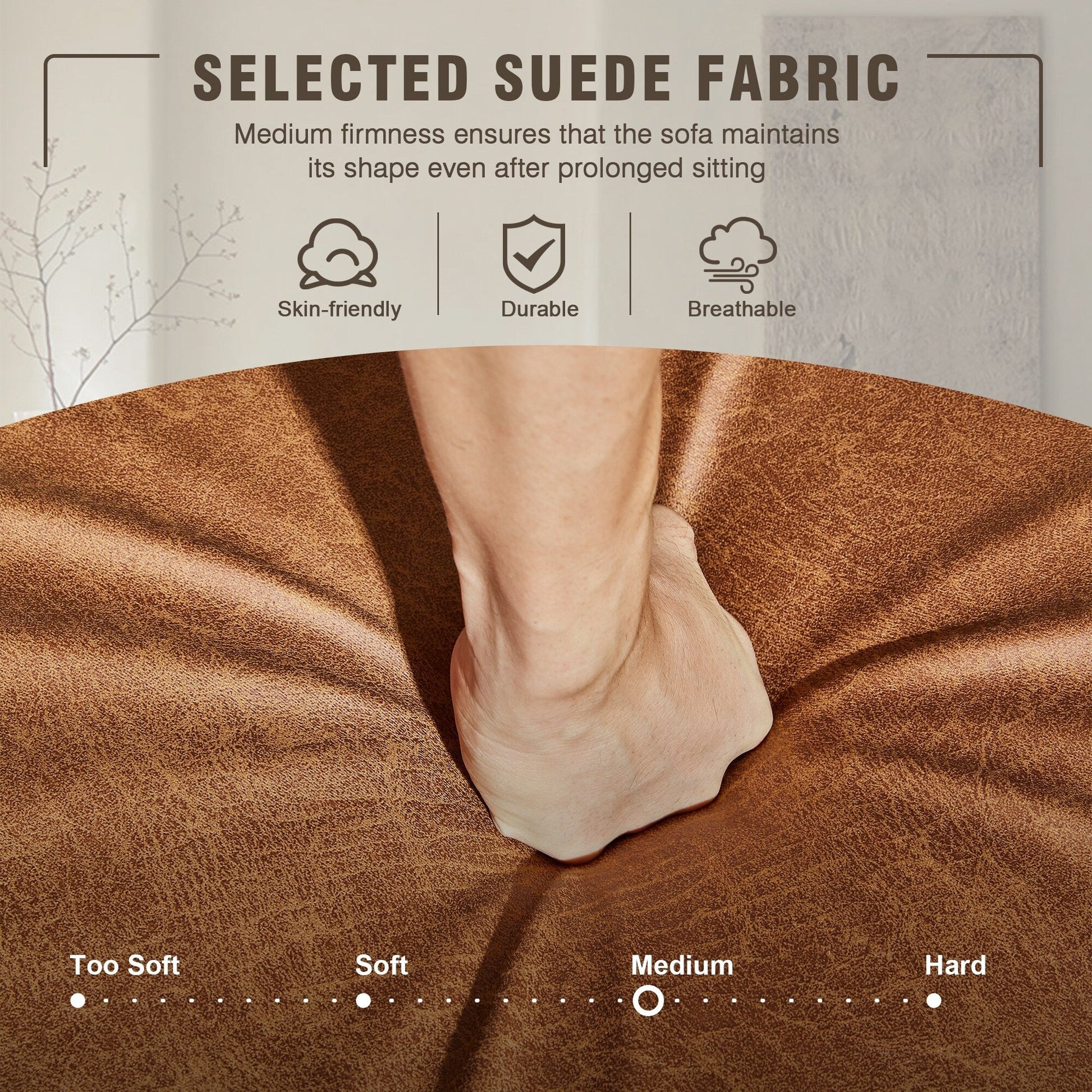 Profitez d'un moment de détente et de confort avec le canapé en daim avec méridienne HOOOWOOO, style milieu de siècle. Sa structure solide et ses pieds fuselés en bois améliorent considérablement sa stabilité et sa durabilité, tandis que son tissu en daim respirant vous garantit une texture confortable et de haute qualité. Disponible en marron clair et marron foncé pour s'harmoniser avec votre décoration.