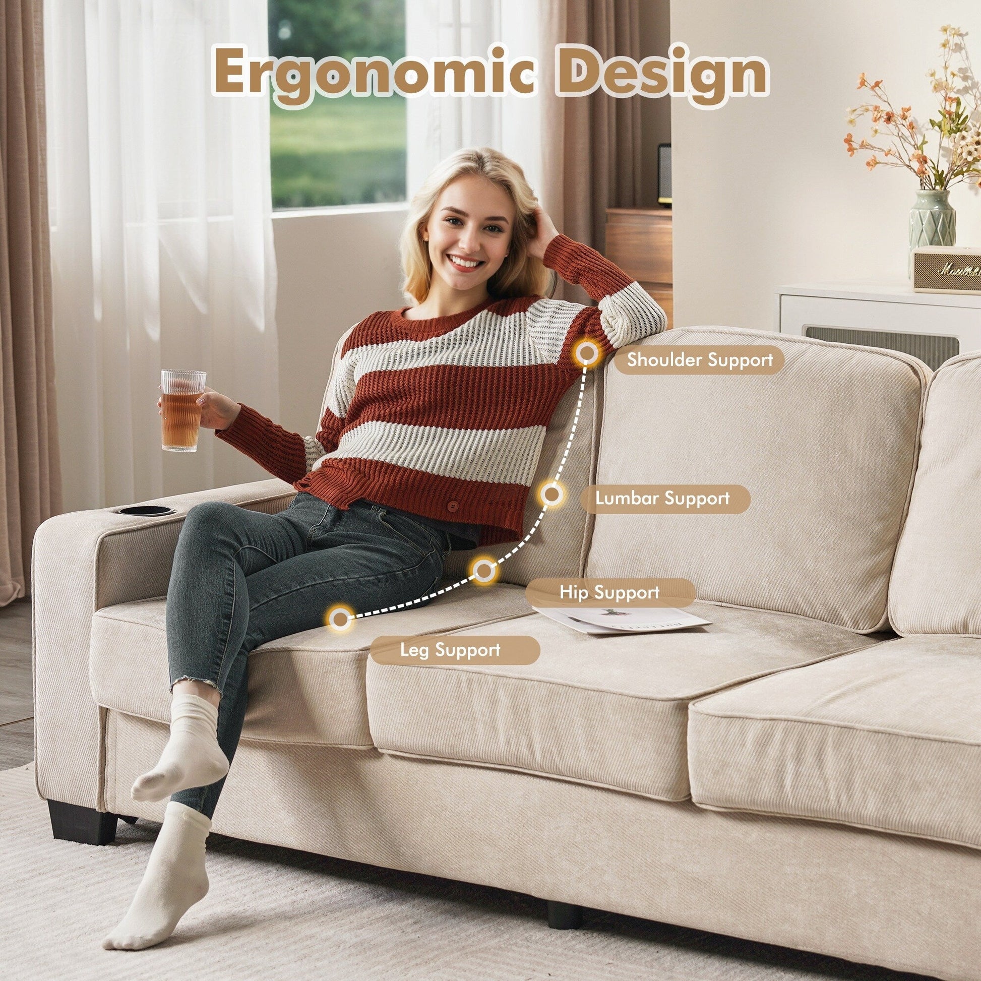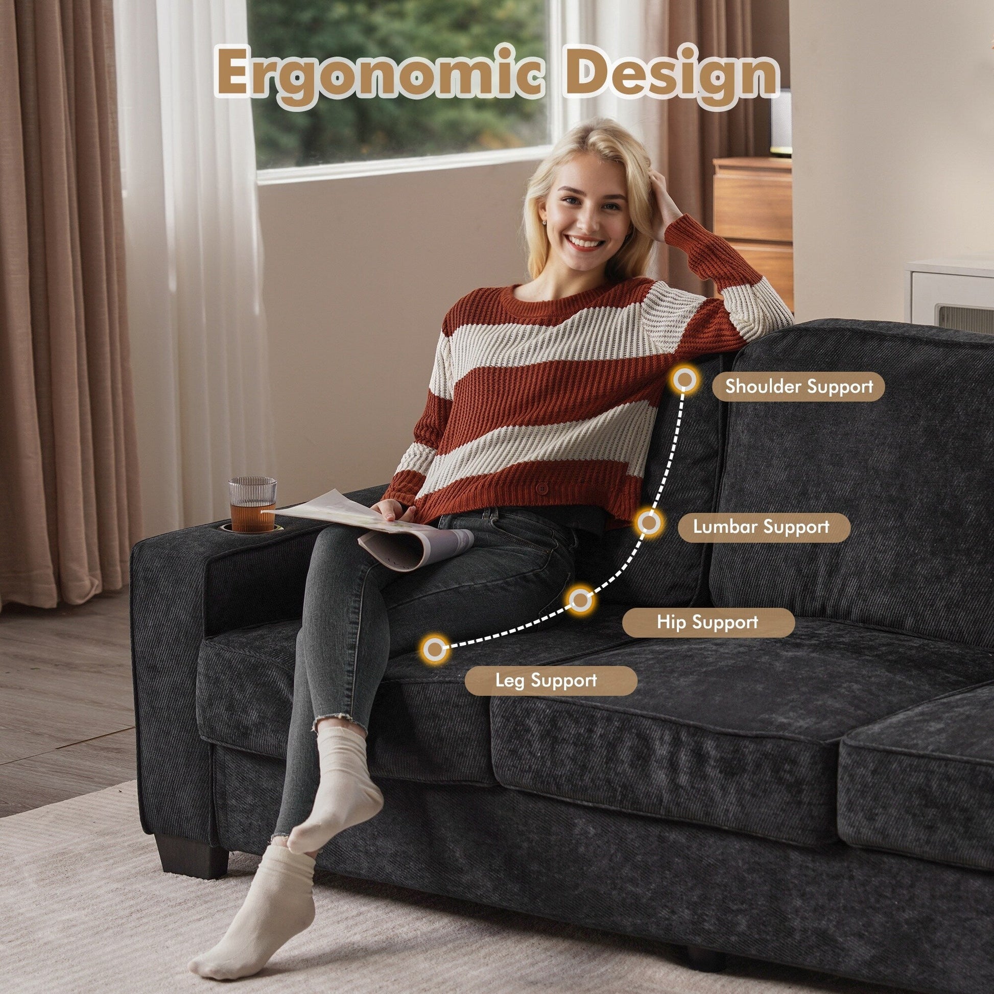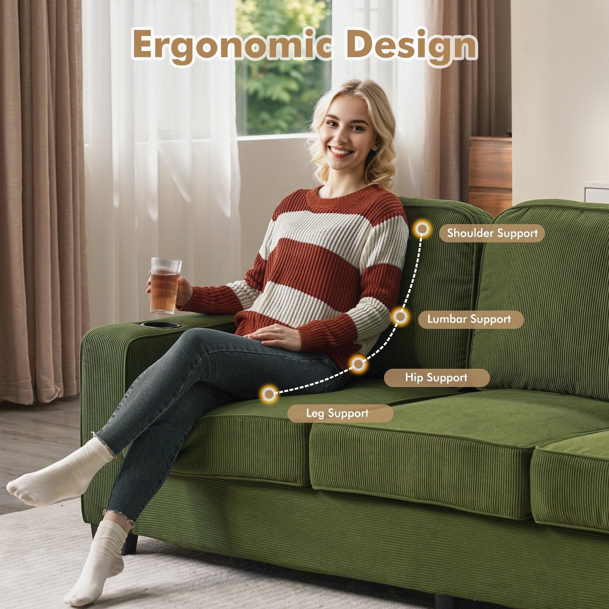 Sublimez votre espace de vie avec le canapé-lit moderne en velours côtelé HOOOWOOO, conçu avec soin pour allier style et praticité. Doté d'une structure robuste en bois et en acier, ce canapé, avec ses accoudoirs carrés, lui confère un style épuré et moderne tout en offrant un soutien optimal. Ses coussins épais en mousse haute densité offrent un soutien et une détente exceptionnels pour de longues heures d'assise. Un porte-gobelet intégré pratique optimise sa fonctionnalité, ce qui en fait le choix idéal pour prendre un café, grignoter ou passer une soirée cinéma entre amis ou en famille. Que ce soit pour recevoir ou se détendre, ce canapé allie avec élégance modernité et fonctionnalité, devenant ainsi la pièce maîtresse de votre intérieur.