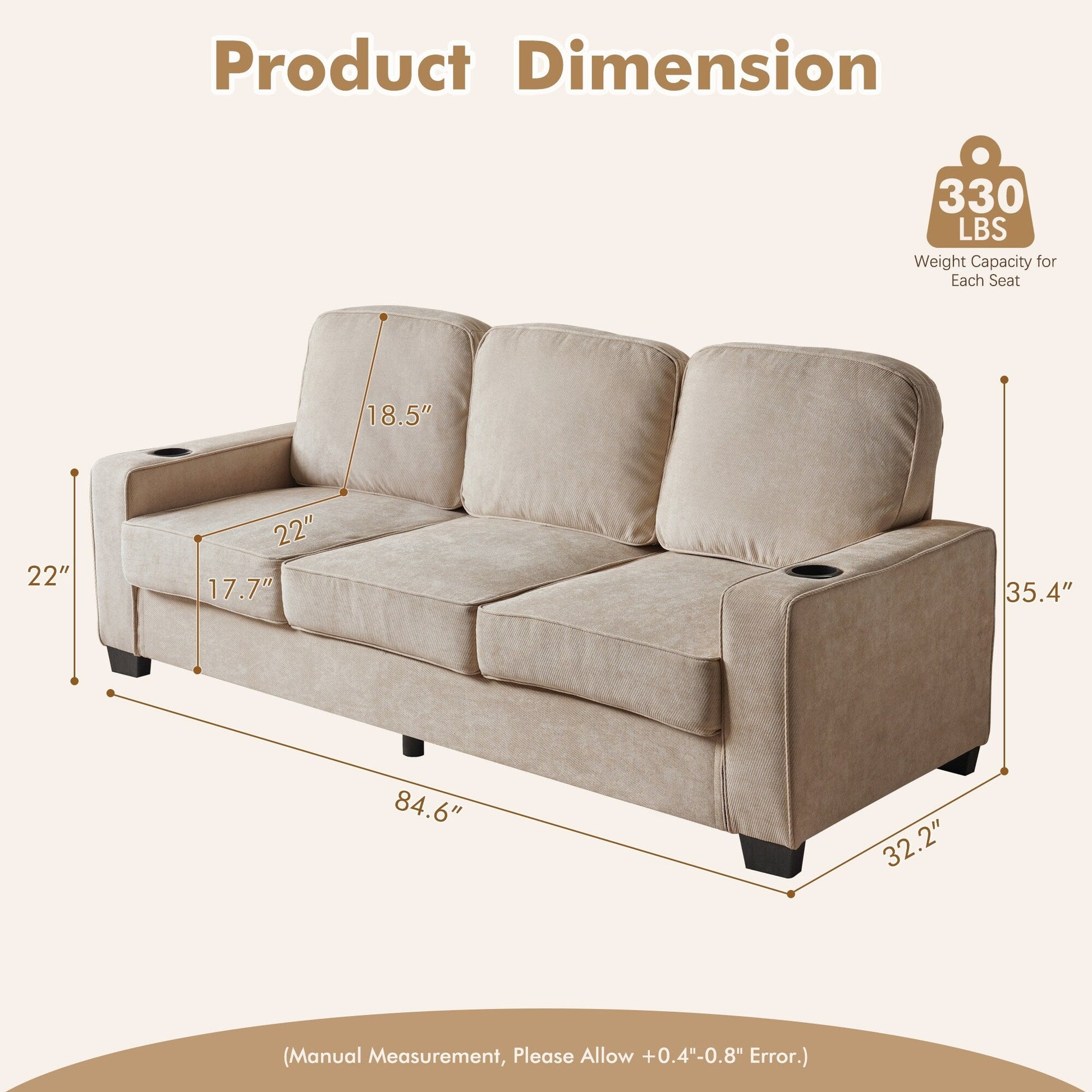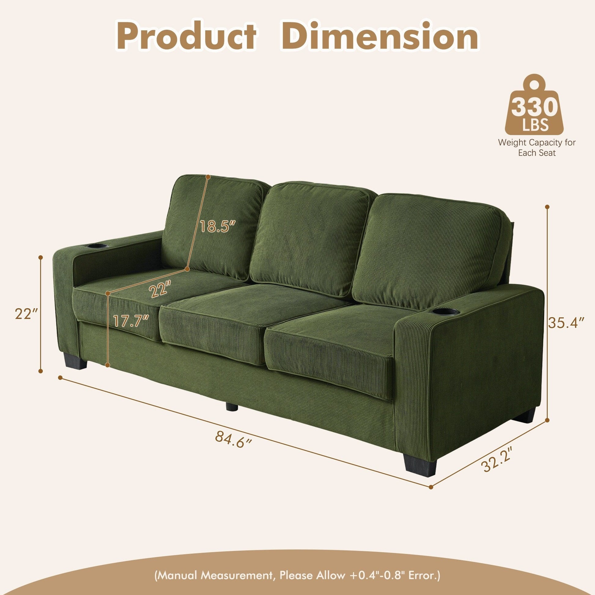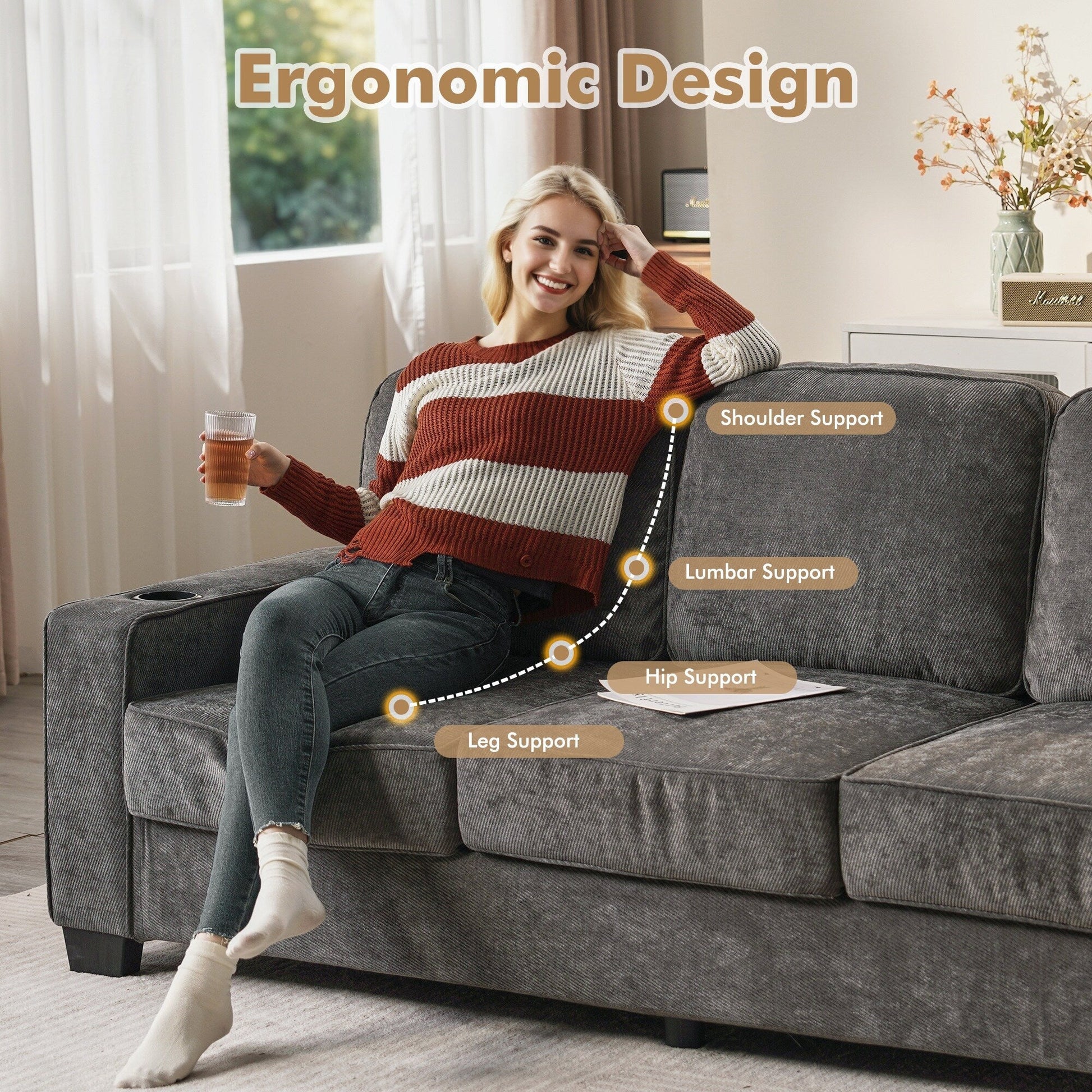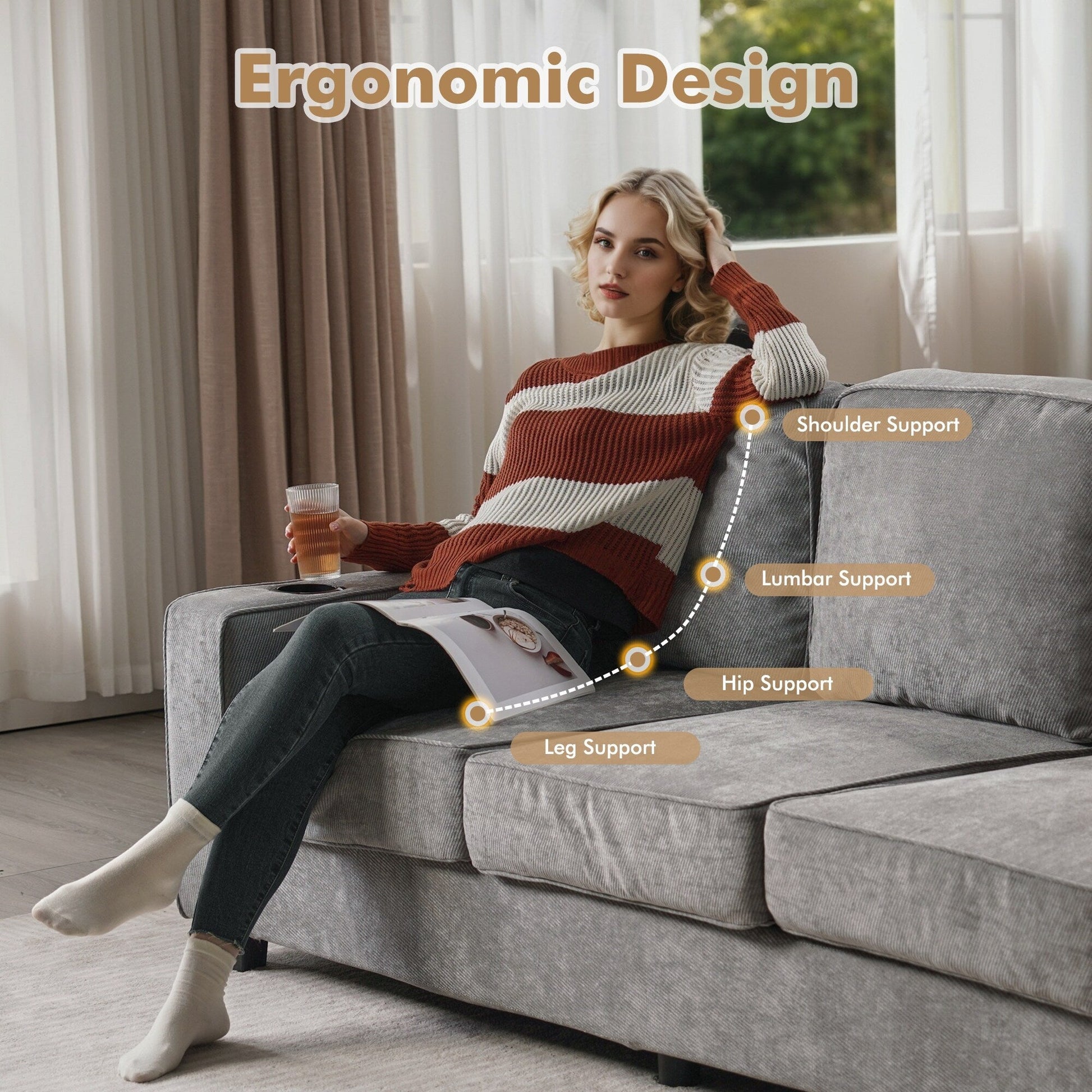 Sublimez votre espace de vie avec le canapé-lit moderne en velours côtelé HOOOWOOO, conçu avec soin pour allier style et praticité. Doté d'une structure robuste en bois et en acier, ce canapé, avec ses accoudoirs carrés, lui confère un style épuré et moderne tout en offrant un soutien optimal. Ses coussins épais en mousse haute densité offrent un soutien et une détente exceptionnels pour de longues heures d'assise. Un porte-gobelet intégré pratique optimise sa fonctionnalité, ce qui en fait le choix idéal pour prendre un café, grignoter ou passer une soirée cinéma entre amis ou en famille. Que ce soit pour recevoir ou se détendre, ce canapé allie avec élégance modernité et fonctionnalité, devenant ainsi la pièce maîtresse de votre intérieur.
