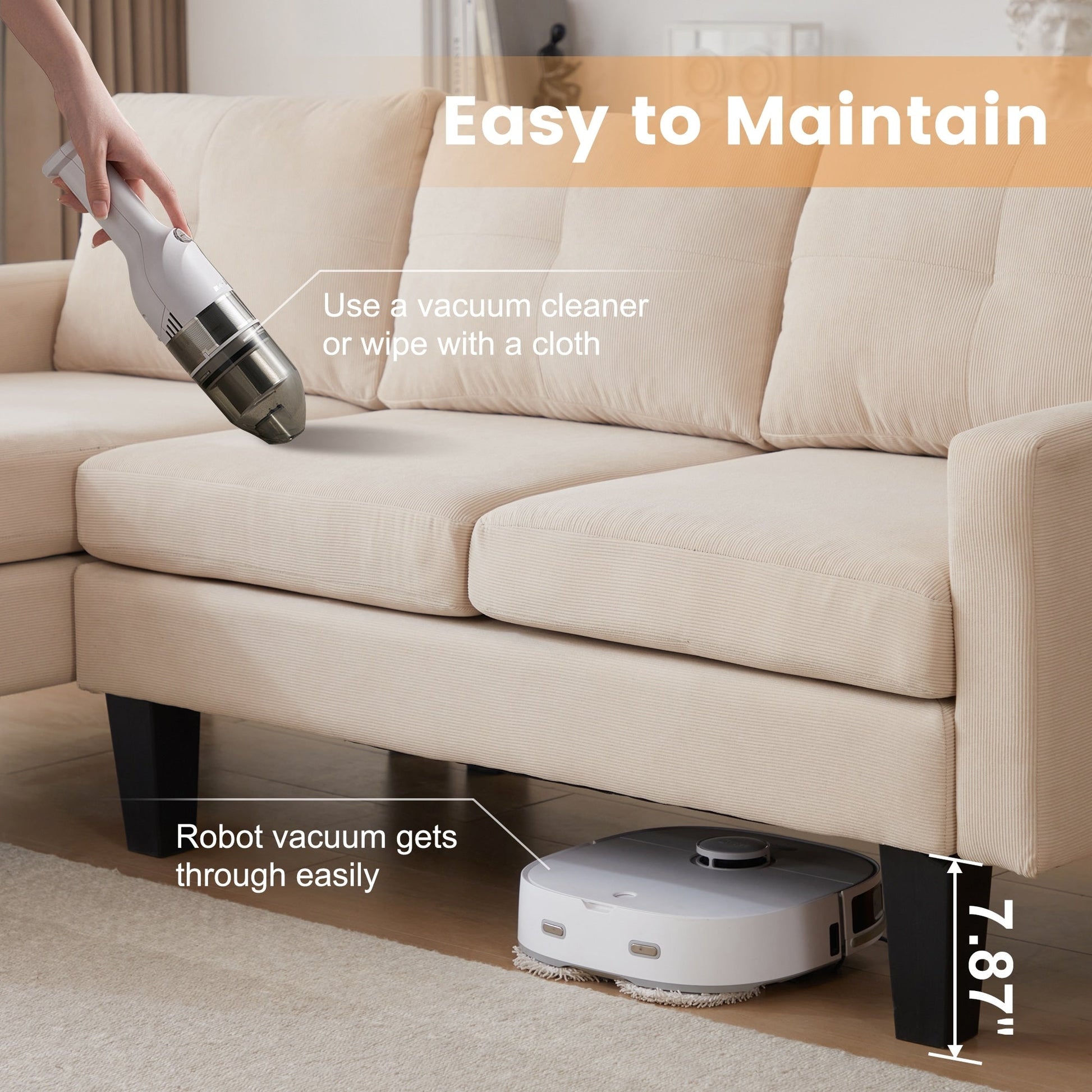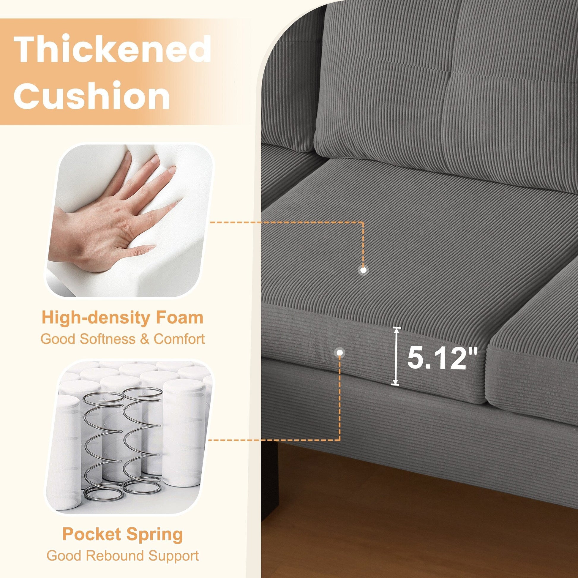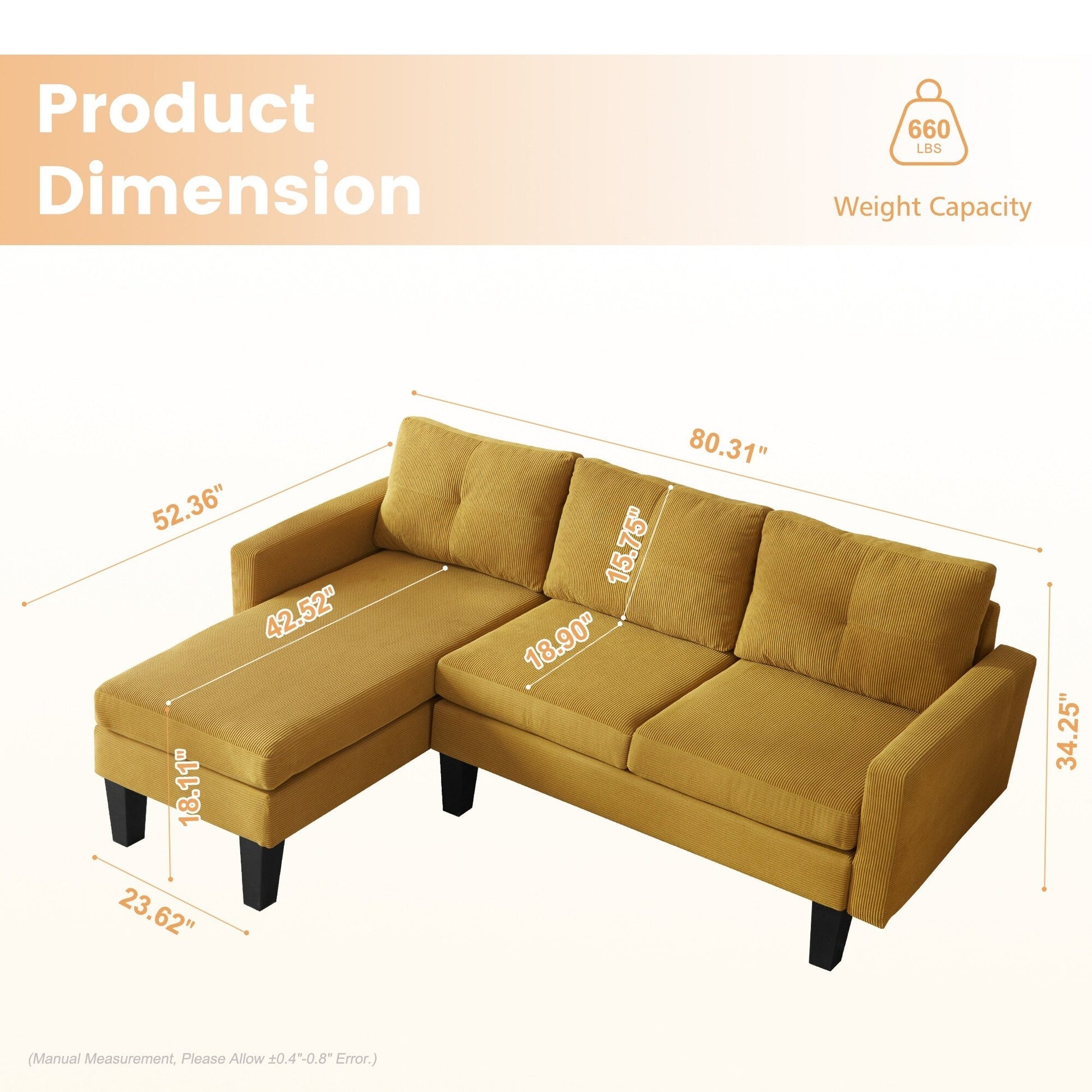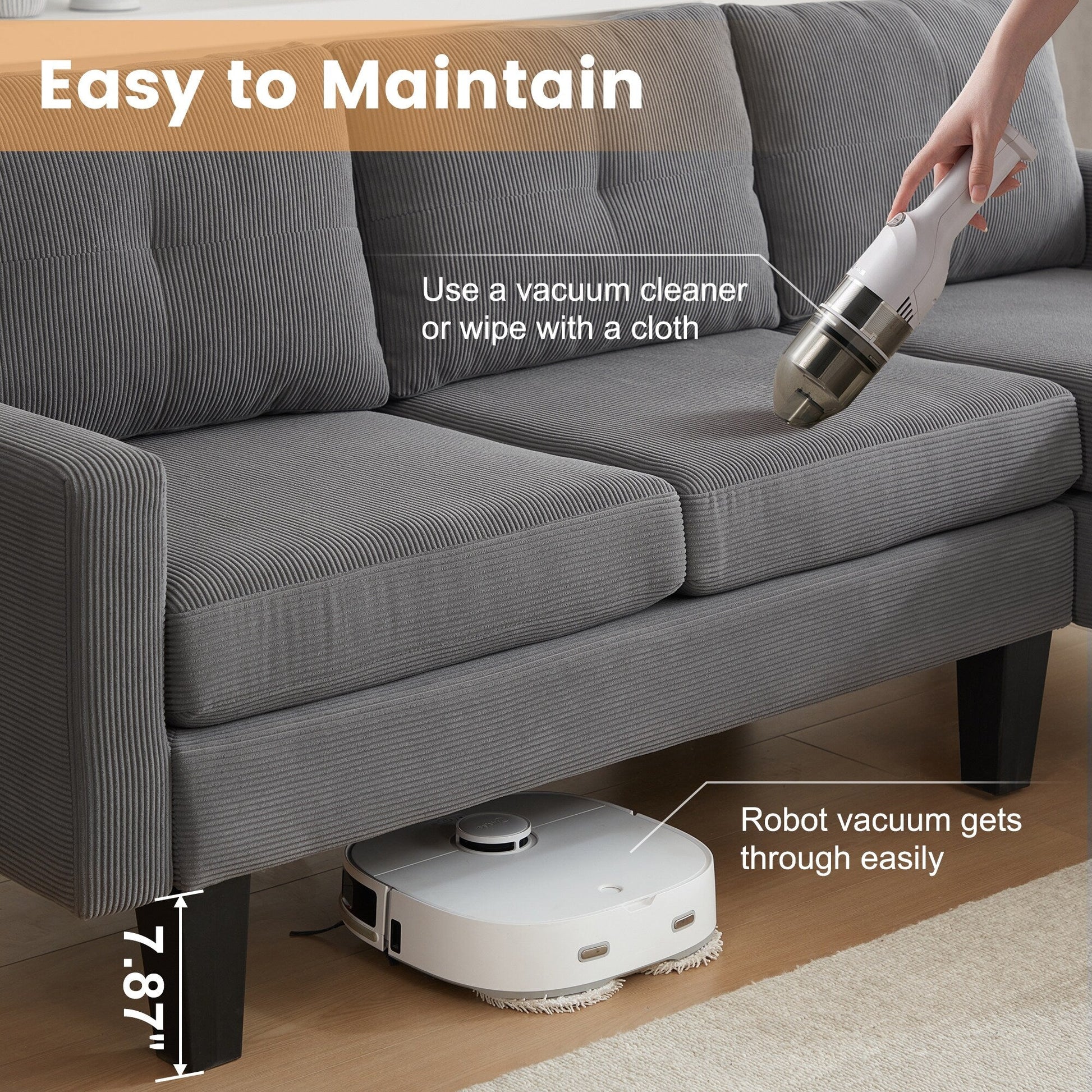 Offrez-vous le luxe du canapé méridienne moderne en L HOOOWOOO en velours côtelé. Doté d'une structure en bois massif et d'accoudoirs carrés, son style moderne et élégant apporte une atmosphère naturelle, simple et raffinée à votre salon. De plus, son rembourrage en mousse haute densité offre une assise agréable, tandis que son revêtement en velours côtelé doux et respirant allie style et praticité, vous permettant de profiter pleinement de vos moments de détente en famille et entre amis jusqu'à minuit.