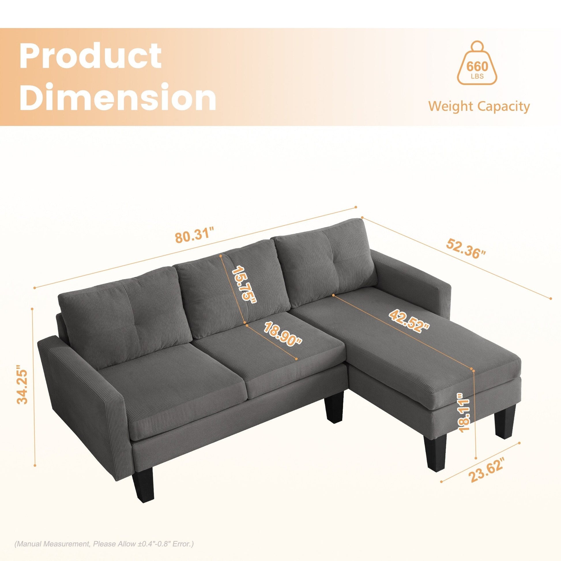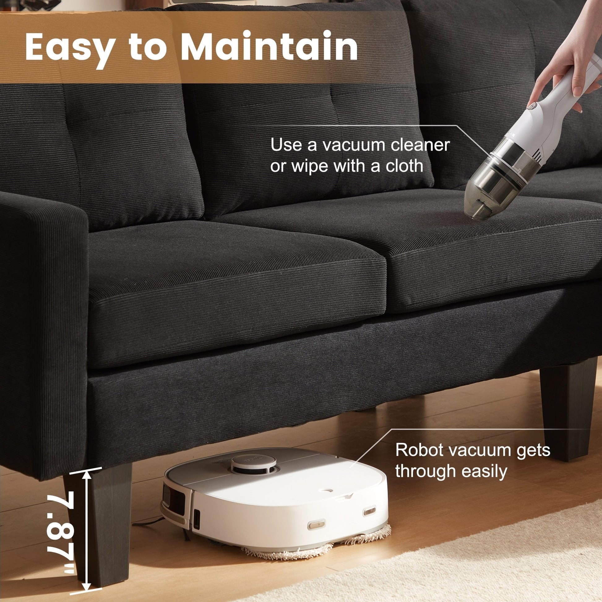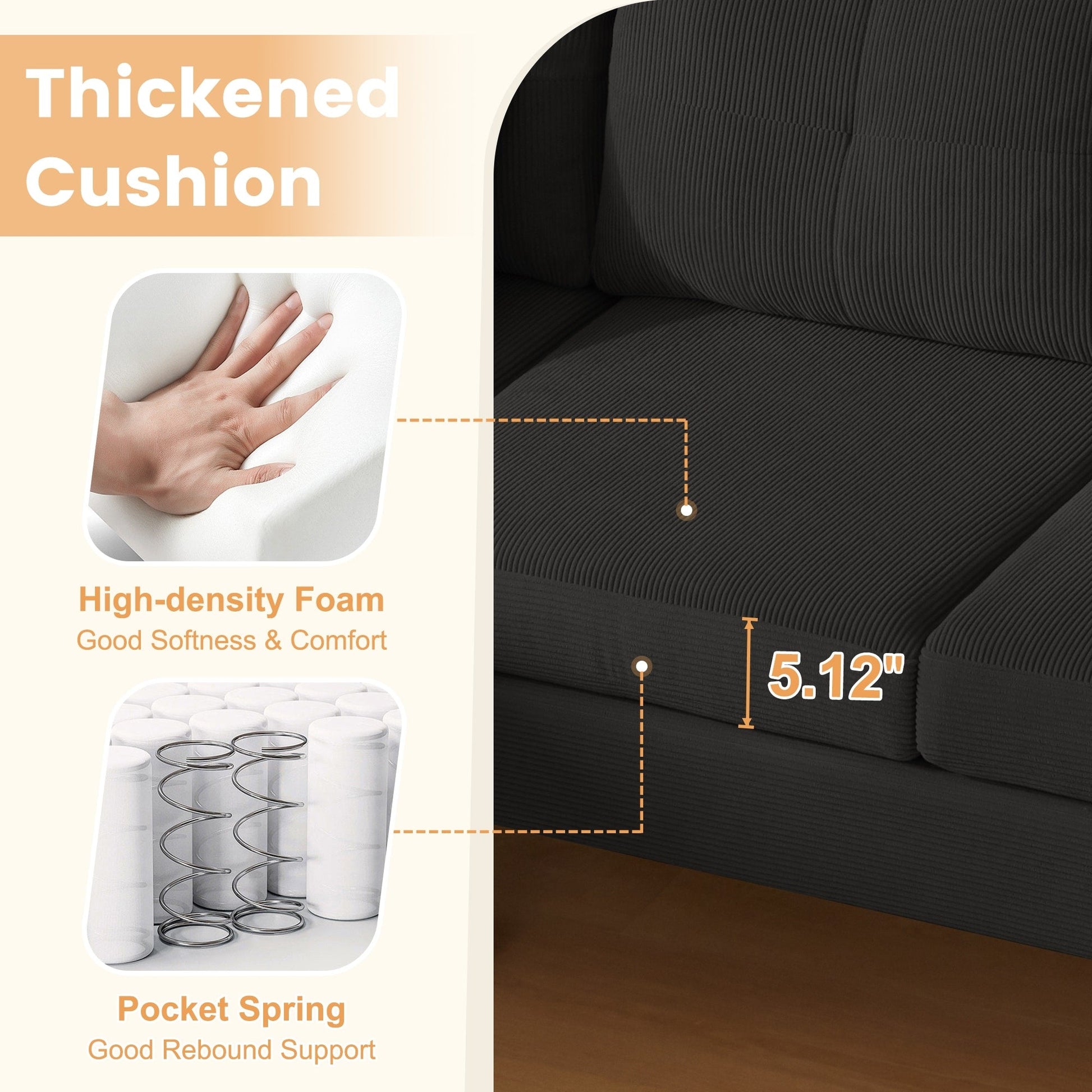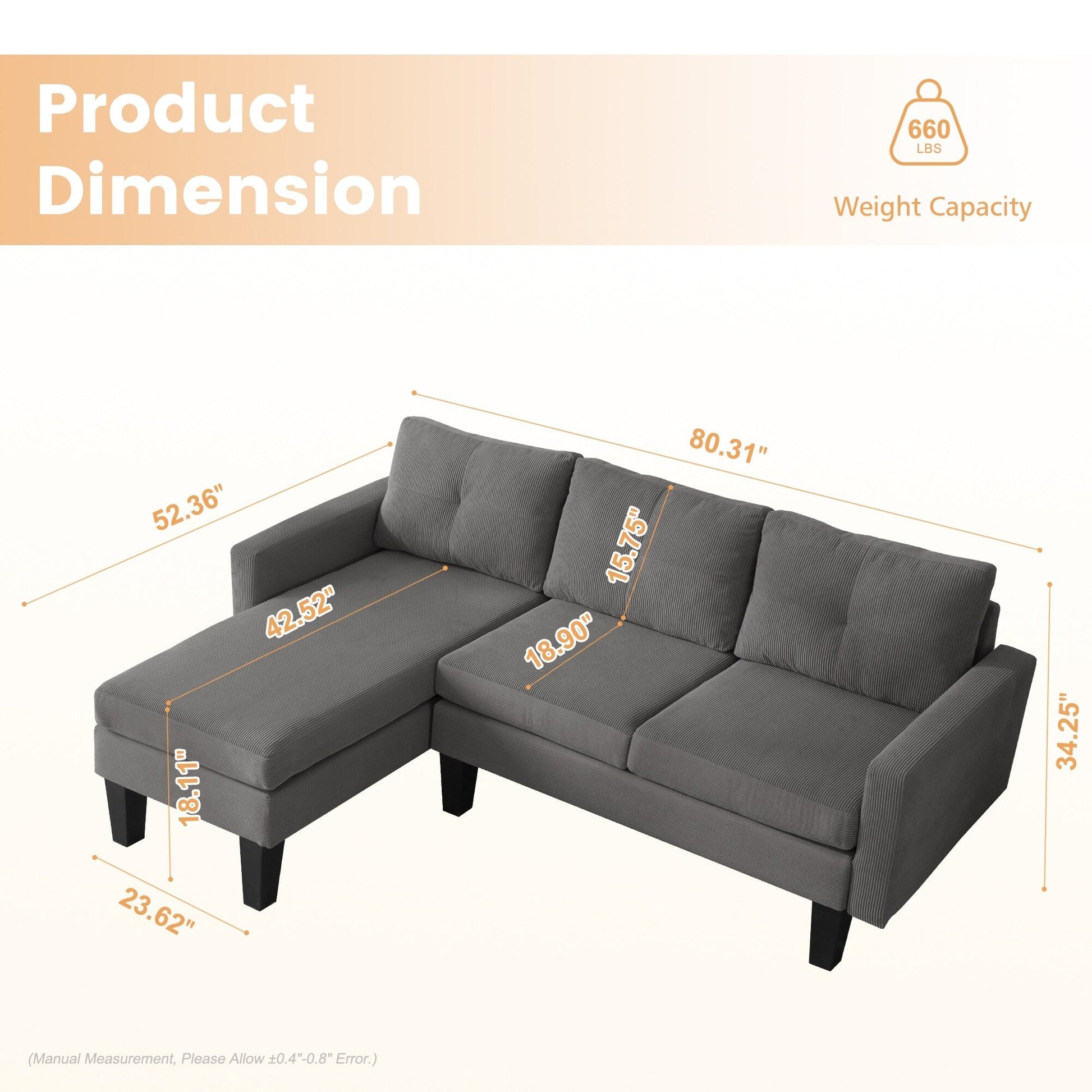 Offrez-vous le luxe du canapé méridienne moderne en L HOOOWOOO en velours côtelé. Doté d'une structure en bois massif et d'accoudoirs carrés, son style moderne et élégant apporte une atmosphère naturelle, simple et raffinée à votre salon. De plus, son rembourrage en mousse haute densité offre une assise agréable, tandis que son revêtement en velours côtelé doux et respirant allie style et praticité, vous permettant de profiter pleinement de vos moments de détente en famille et entre amis jusqu'à minuit.