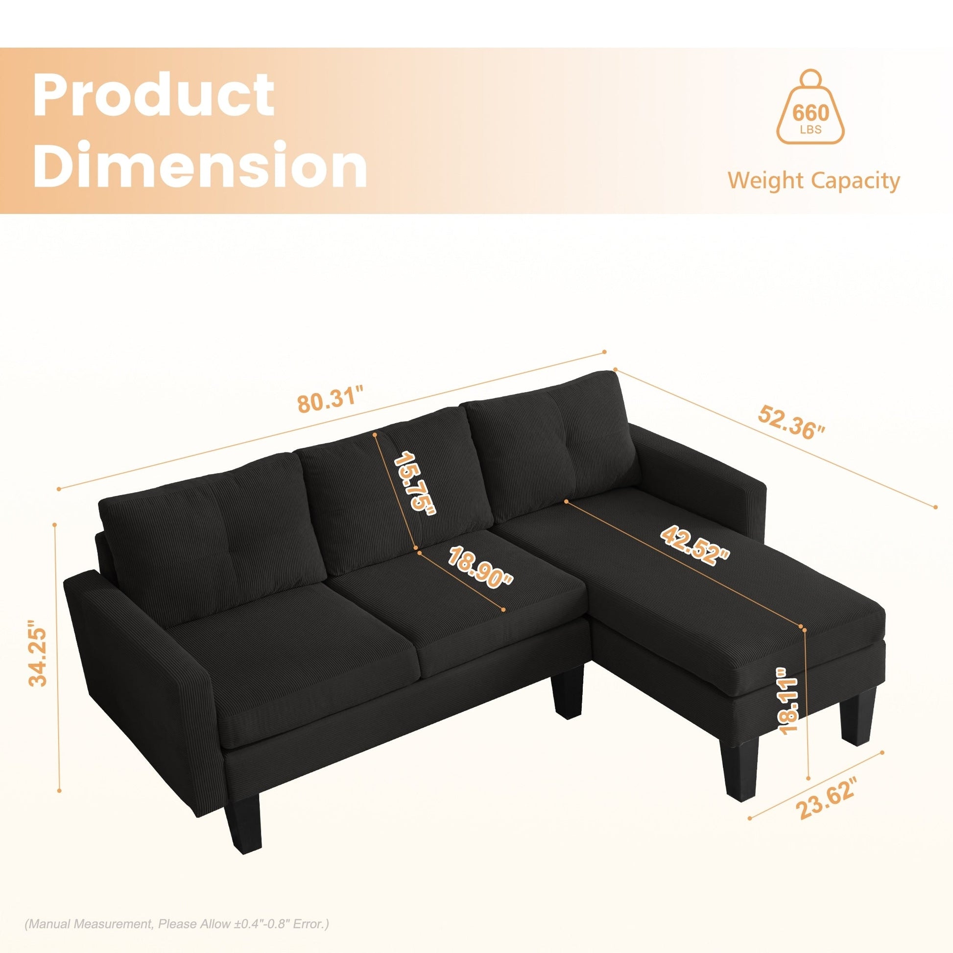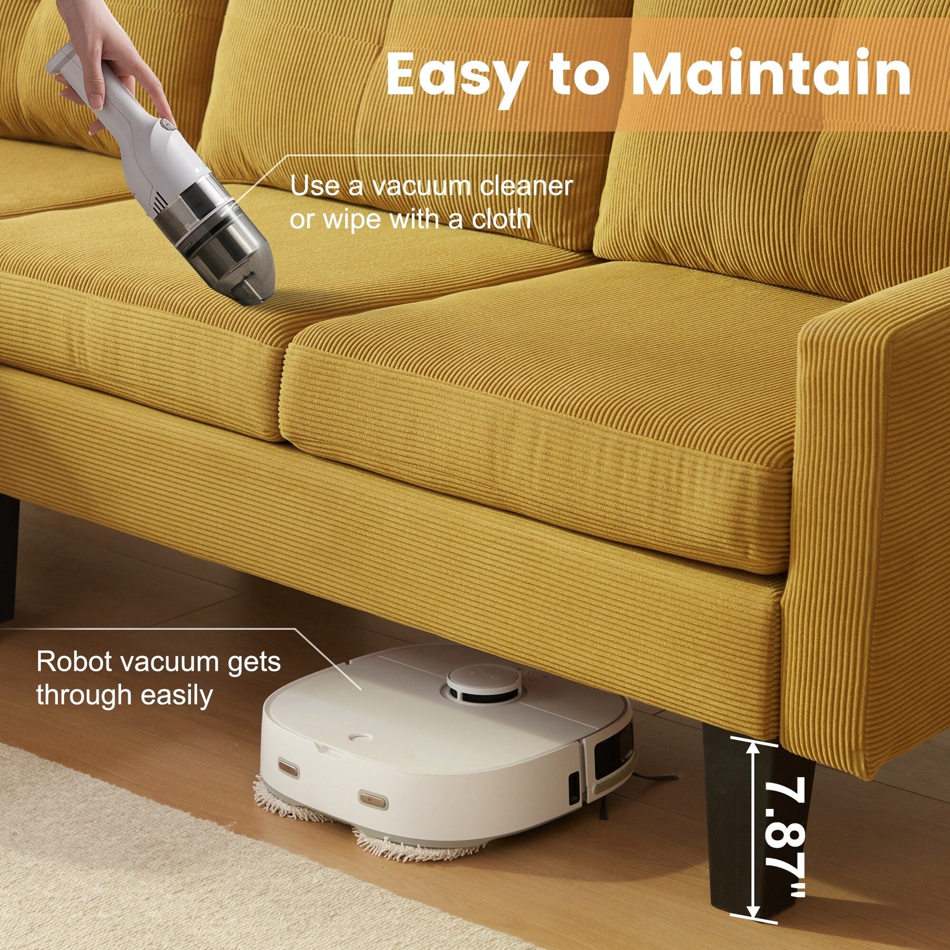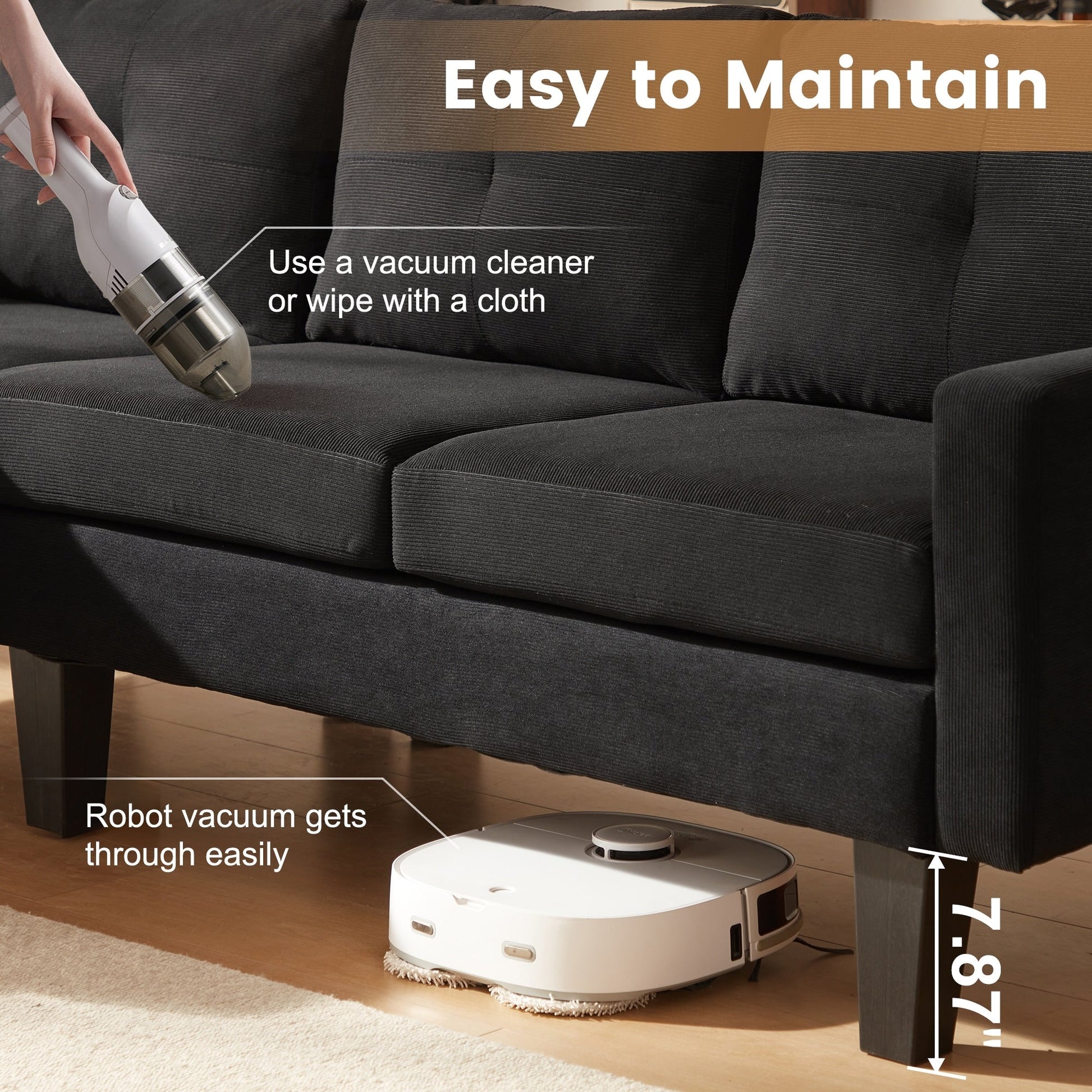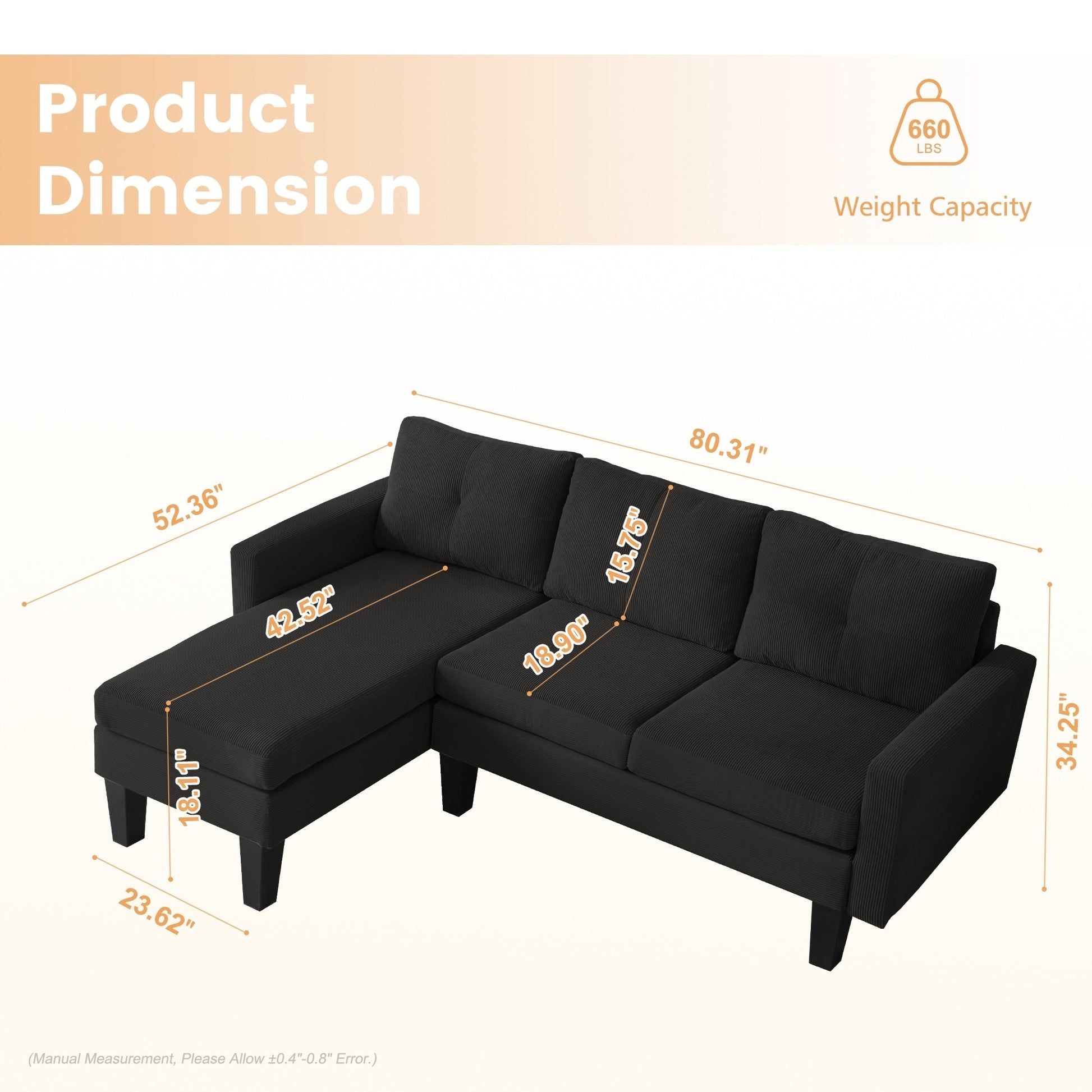 Offrez-vous le luxe du canapé méridienne moderne en L HOOOWOOO en velours côtelé. Doté d'une structure en bois massif et d'accoudoirs carrés, son style moderne et élégant apporte une atmosphère naturelle, simple et raffinée à votre salon. De plus, son rembourrage en mousse haute densité offre une assise agréable, tandis que son revêtement en velours côtelé doux et respirant allie style et praticité, vous permettant de profiter pleinement de vos moments de détente en famille et entre amis jusqu'à minuit.
