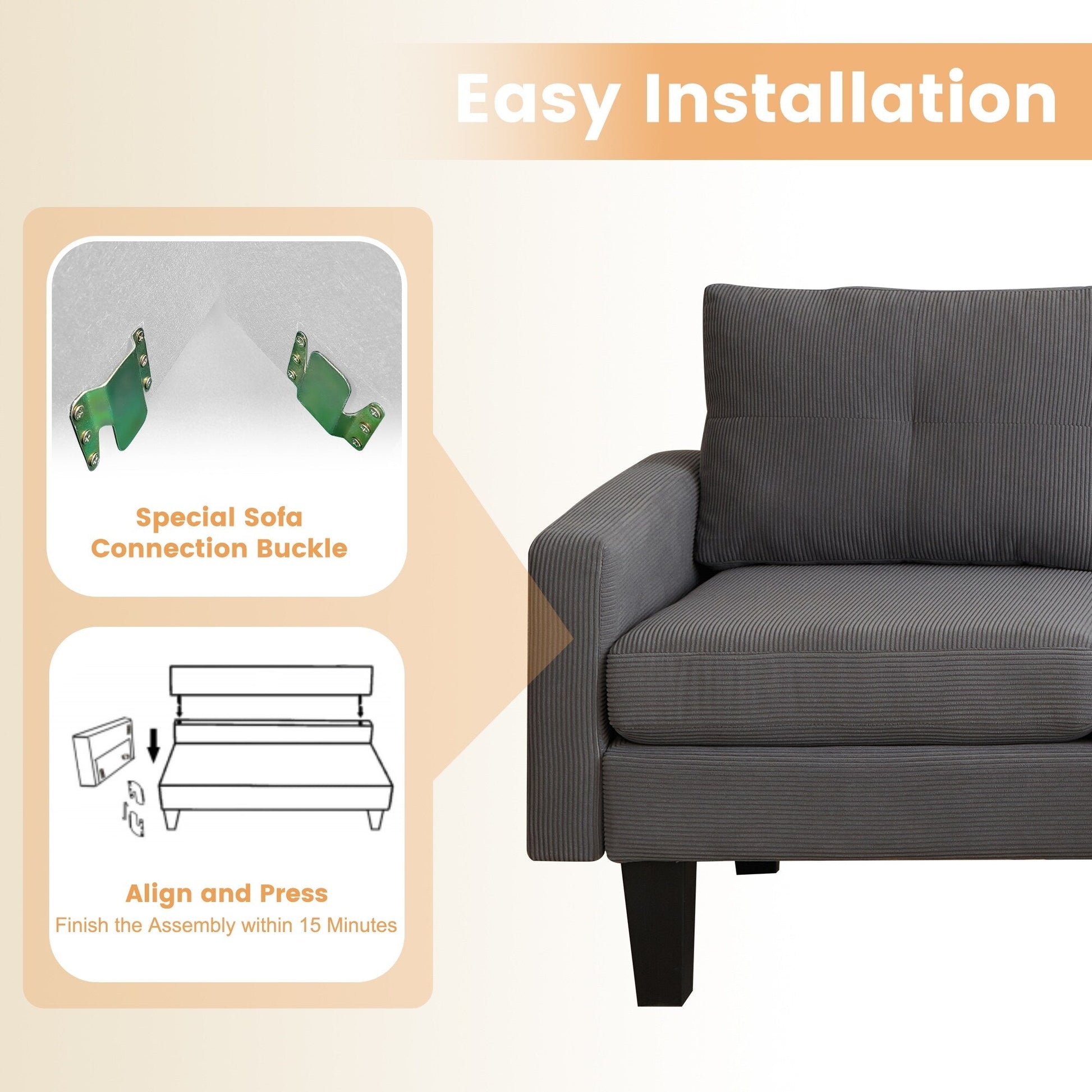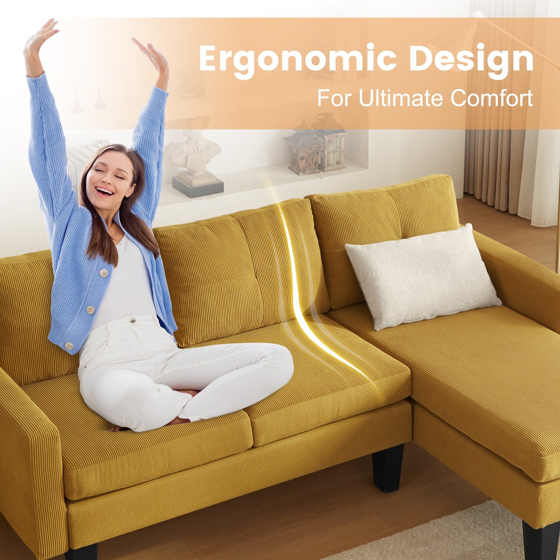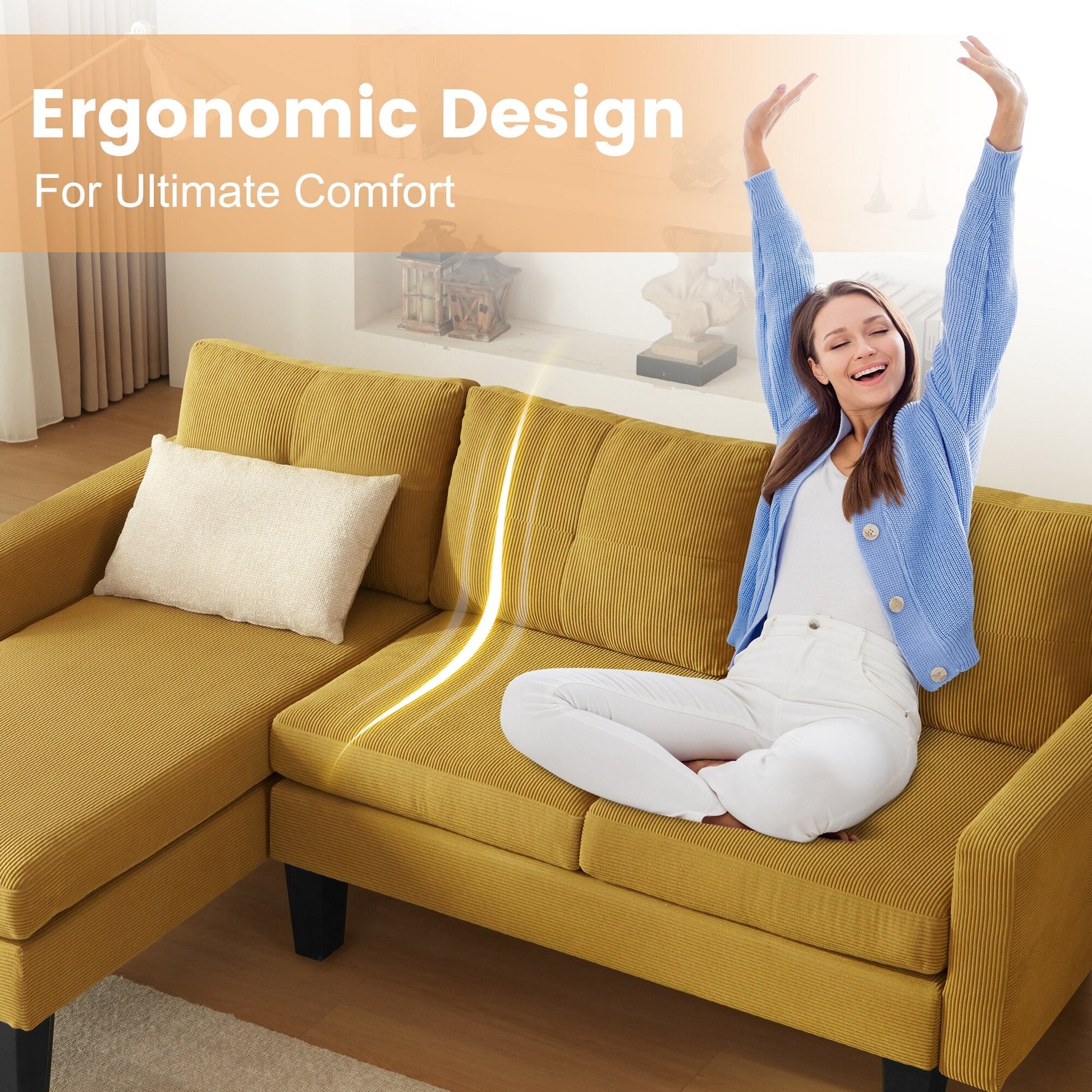 Canapé méridienne moderne en velours côtelé en forme de L HOOOWOOO