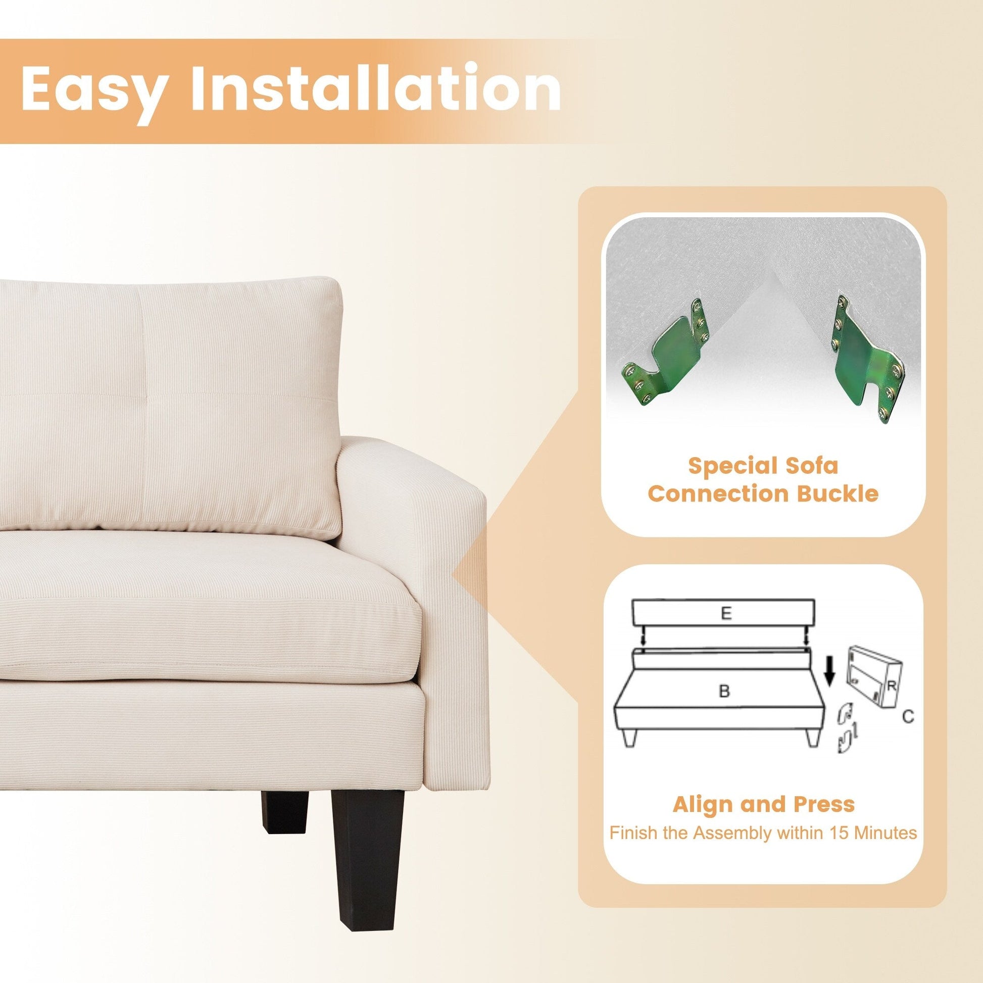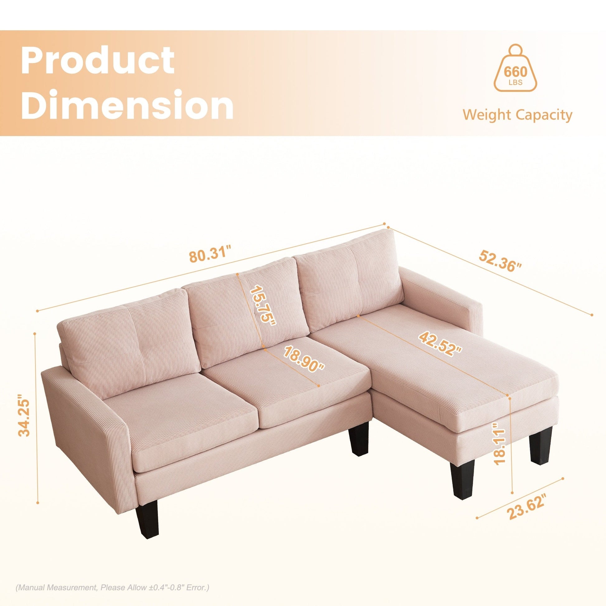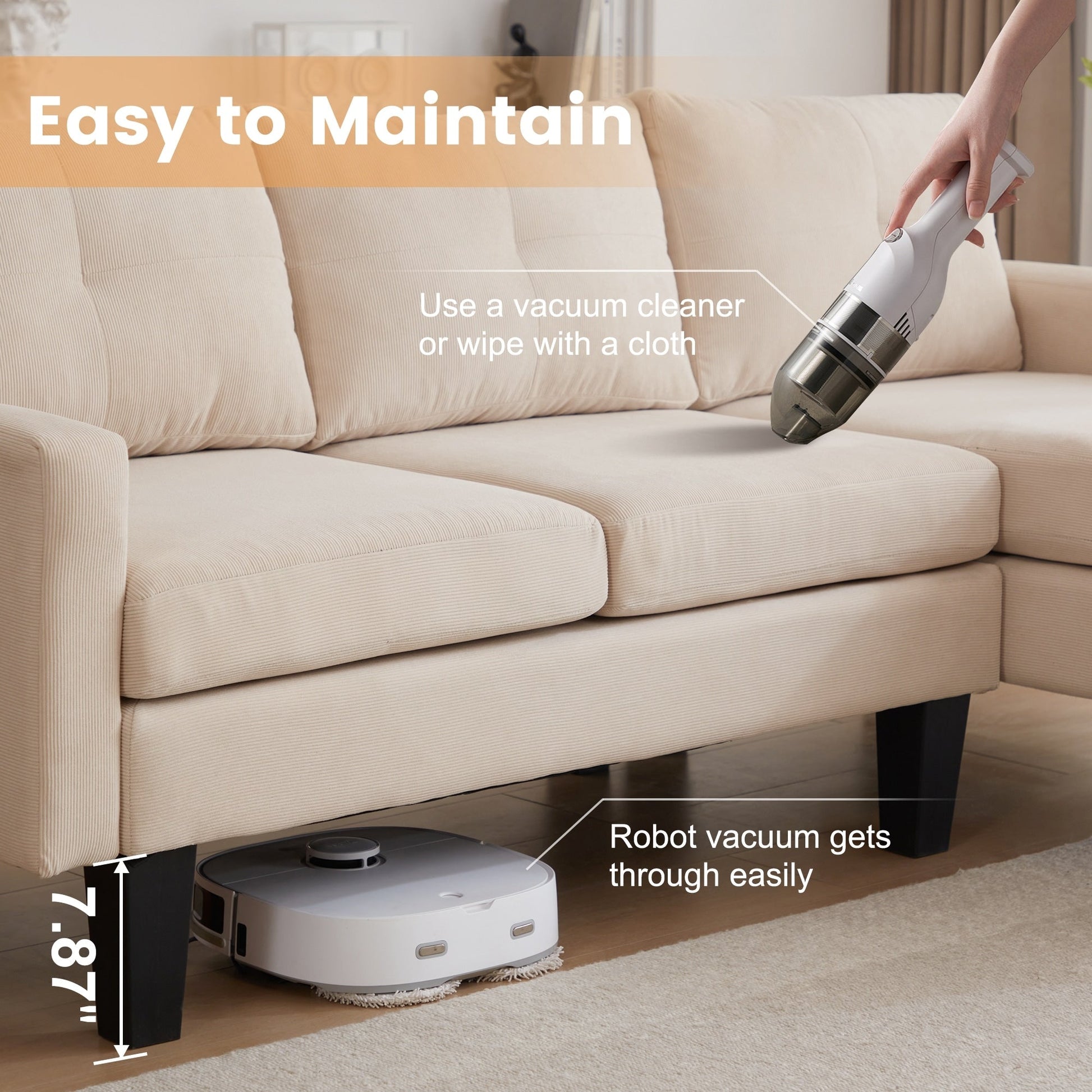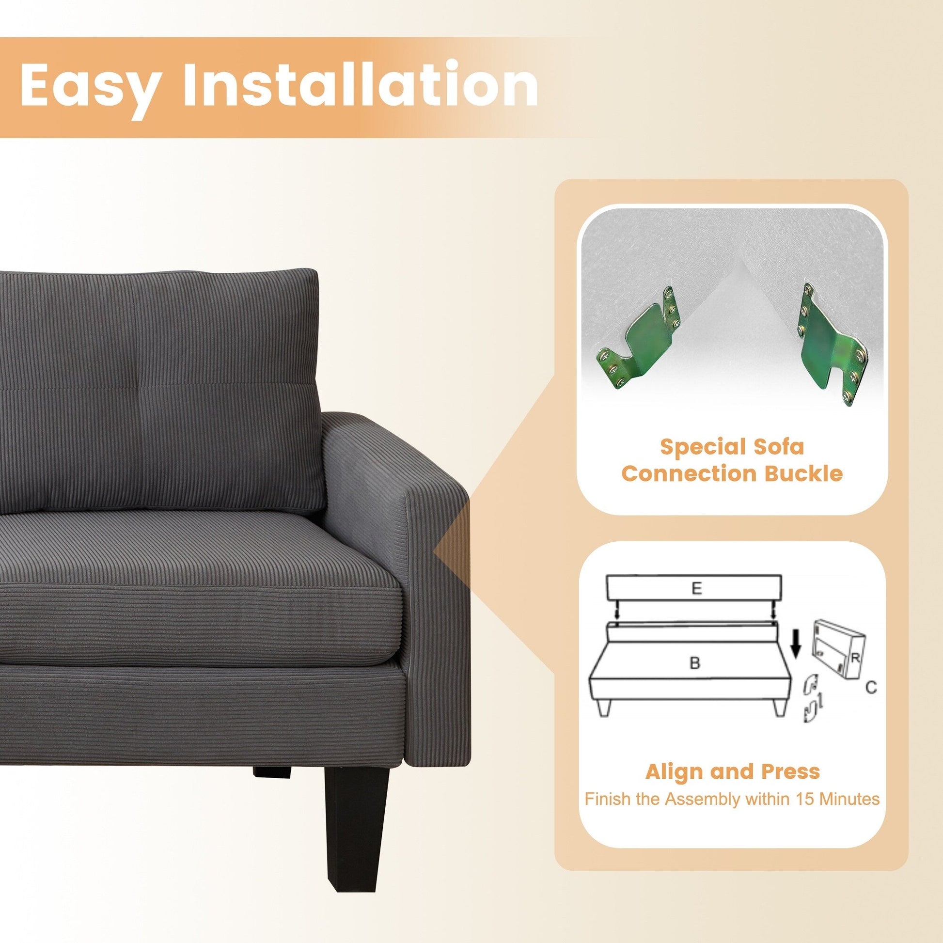 Canapé méridienne moderne en velours côtelé en forme de L HOOOWOOO