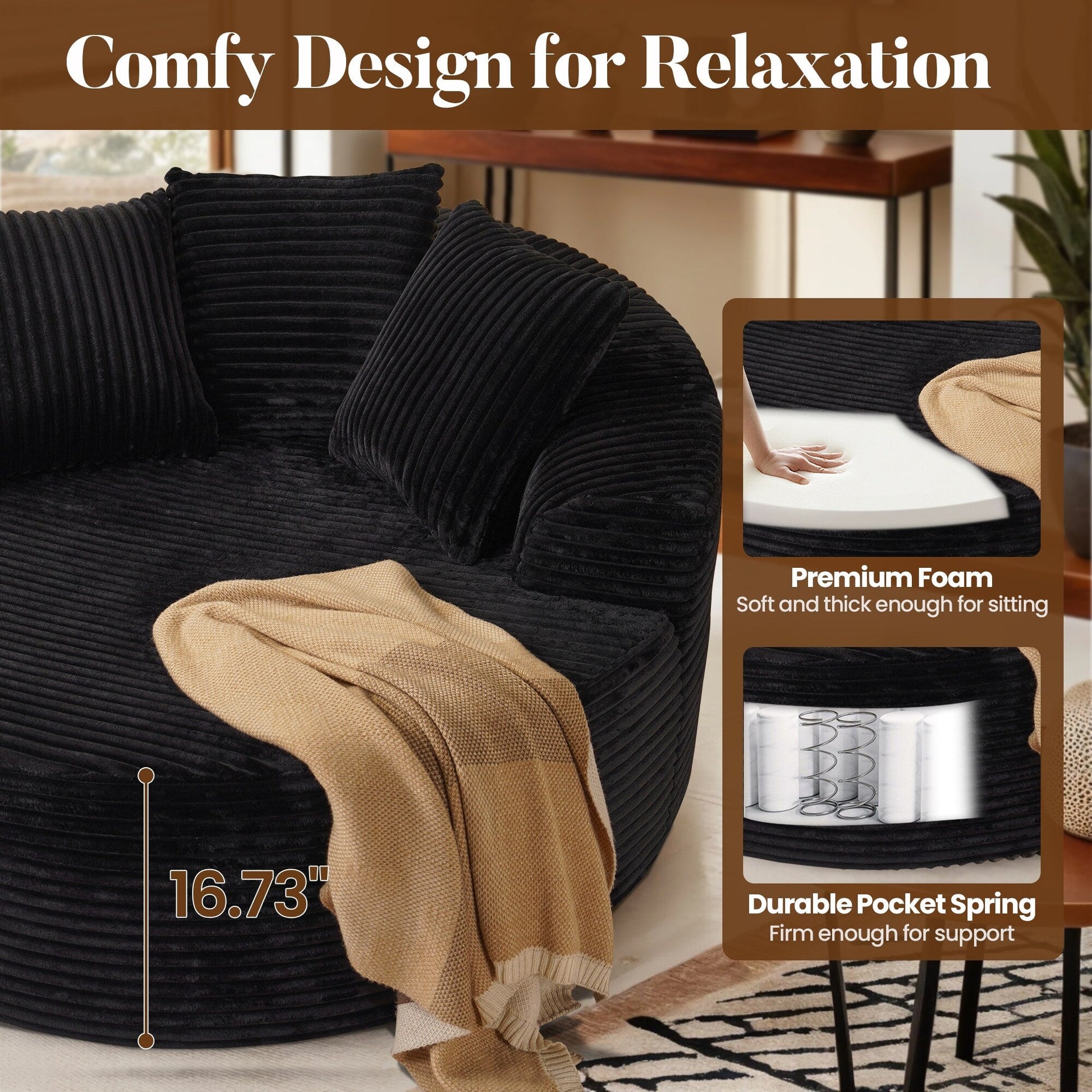 - Fabriqué avec un tissu en peluche et une mousse à rebond élevé