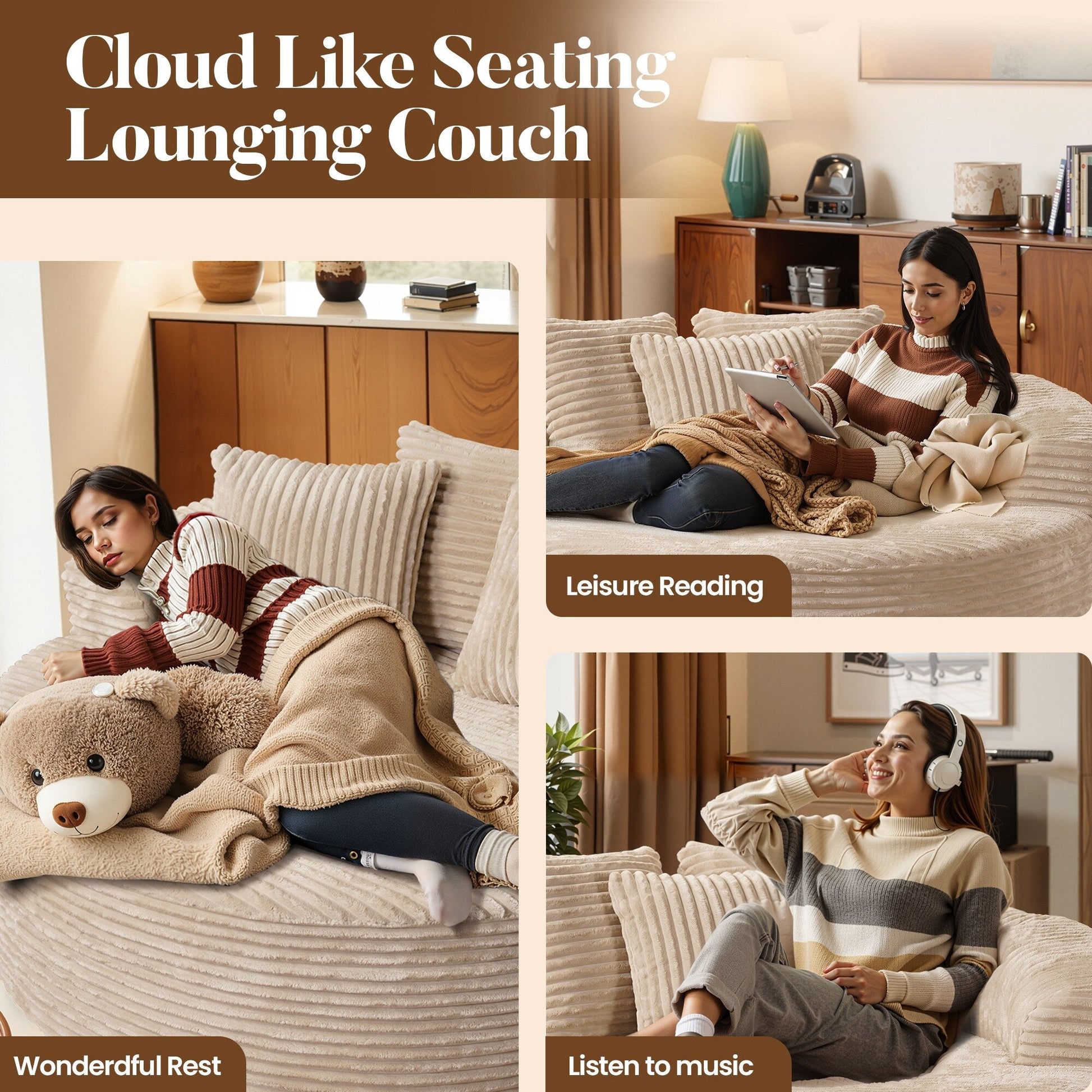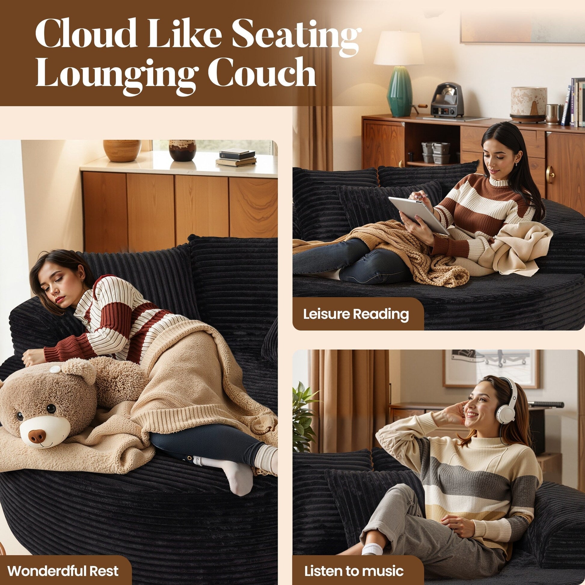 Canapé de sol moderne en tissu pelucheux HOOOWOOO