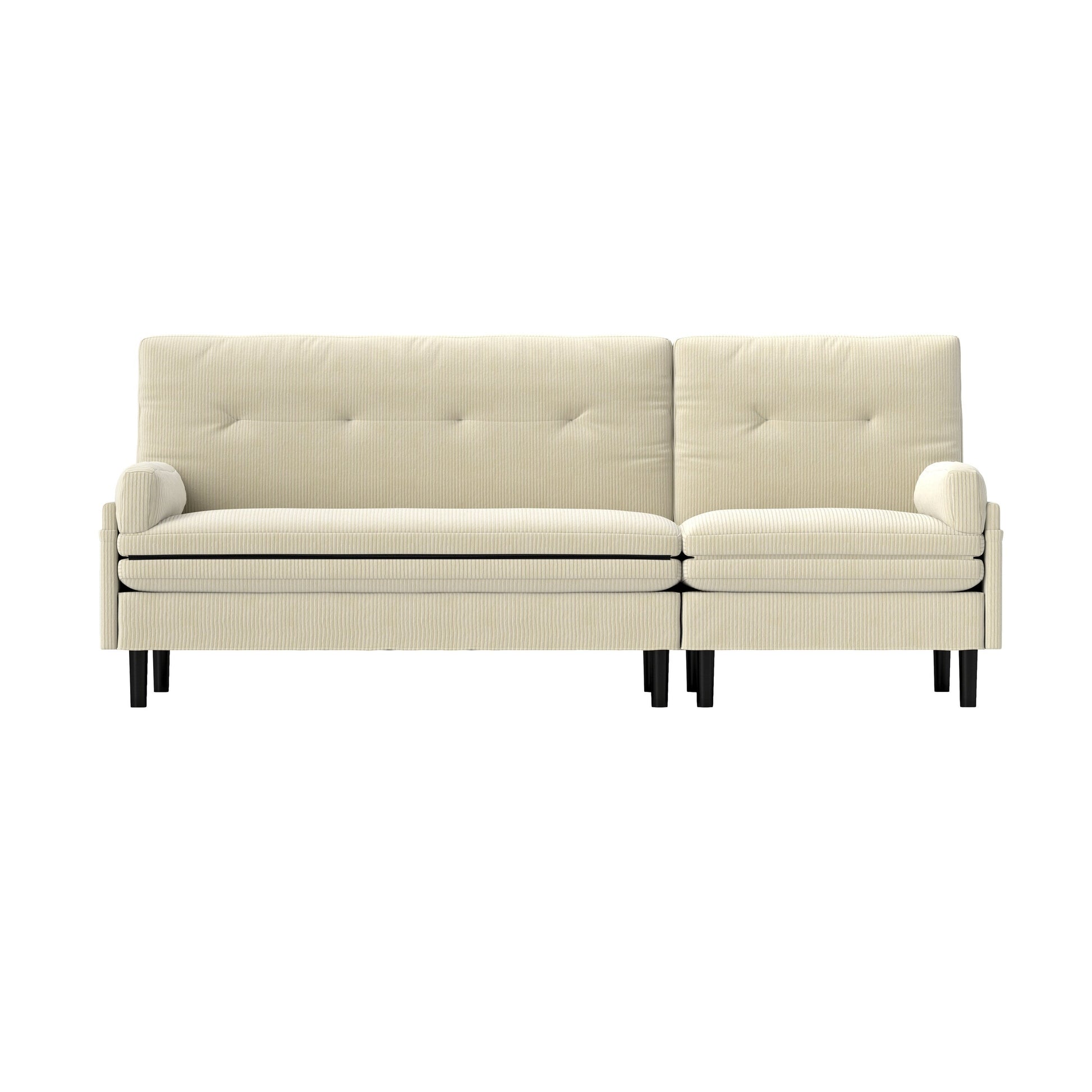 Canapé 3 places réglable en velours côtelé ivoire et lit d'appoint