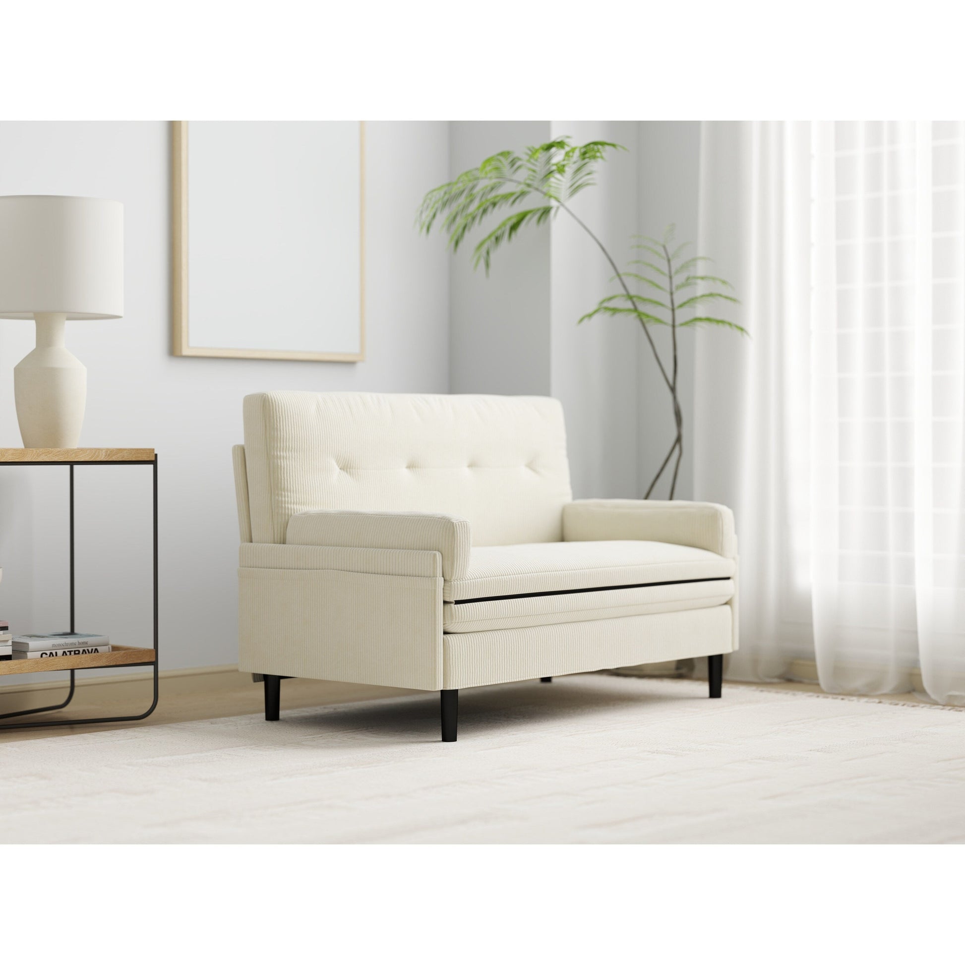 Canapé-lit d'appoint et causeuse réglable en velours côtelé ivoire
