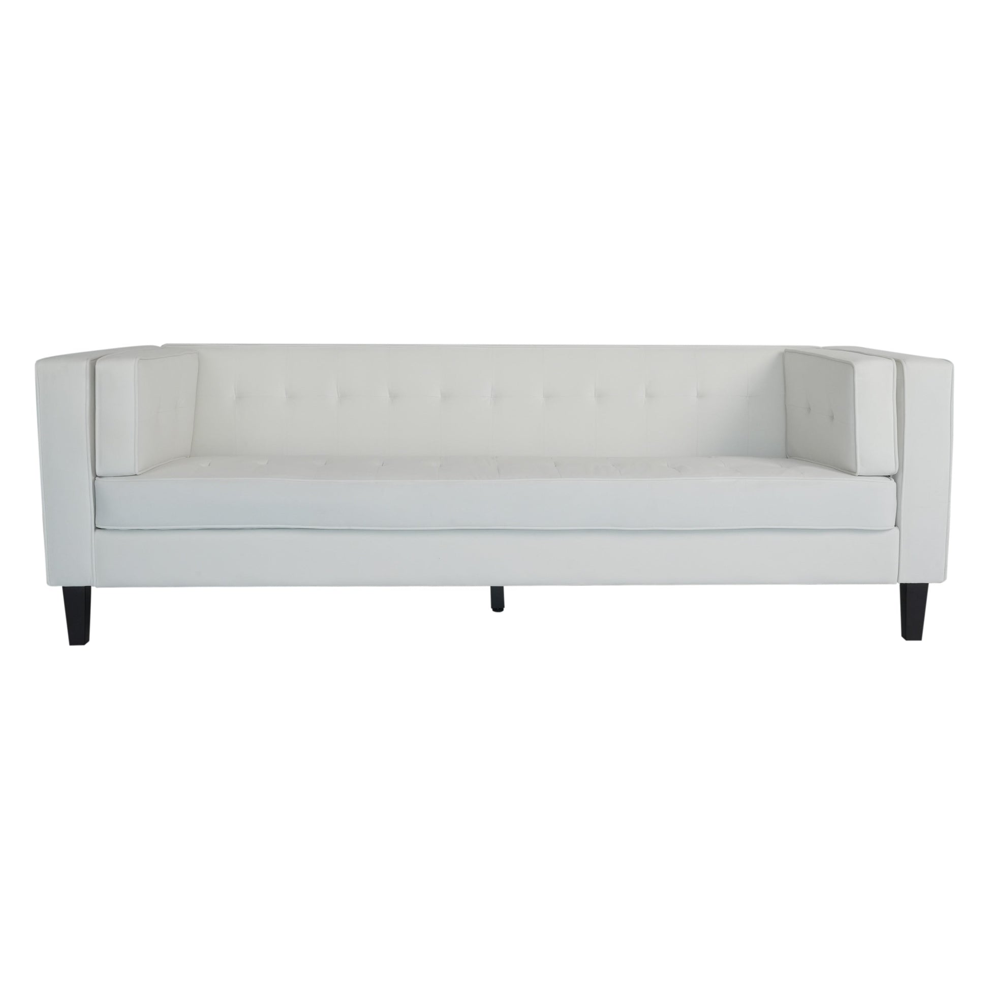 Canapé 3 places capitonné en velours ivoire avec cadre en bois dur