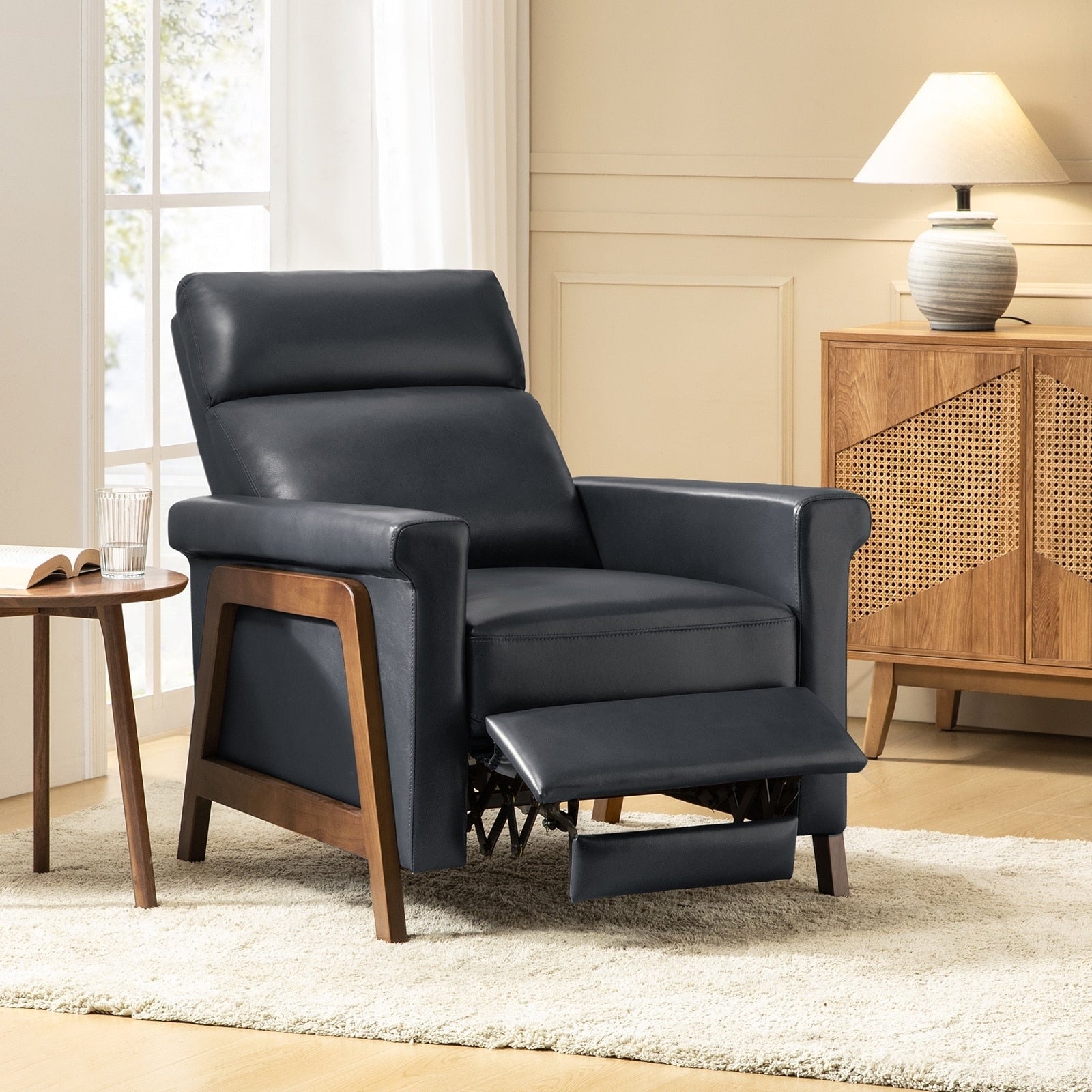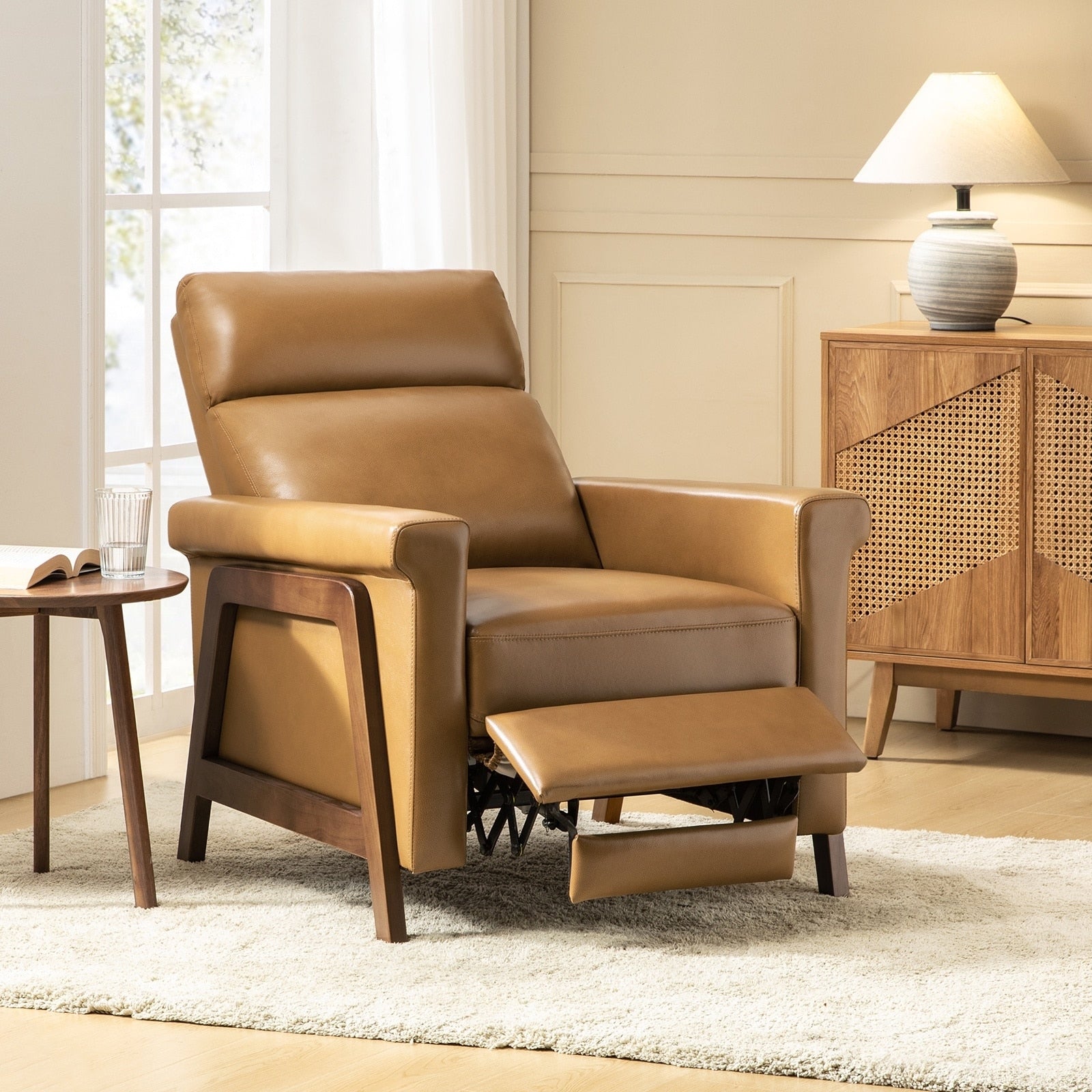 - Élégance intemporelle : Le fauteuil inclinable Spencer avec cadre en bois est recouvert de cuir véritable, idéal pour votre salon, salle à manger, chambre, bureau ou salle d'étude. Son revêtement en cuir véritable s'assouplit avec le temps, garantissant confort et style durables.
