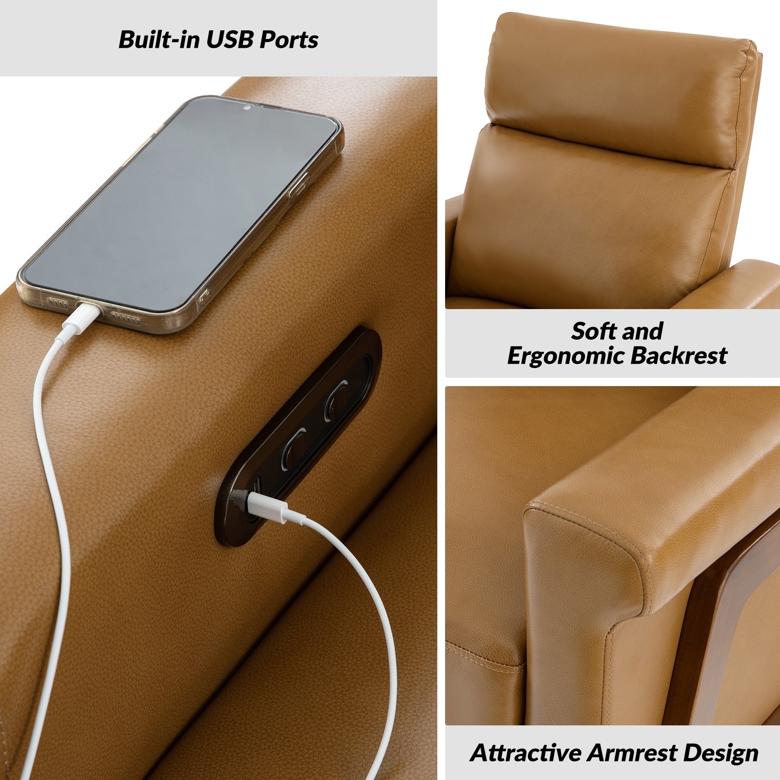 Fauteuil inclinable Jaime Modern Power en cuir véritable avec ports USB par HULALAHOME