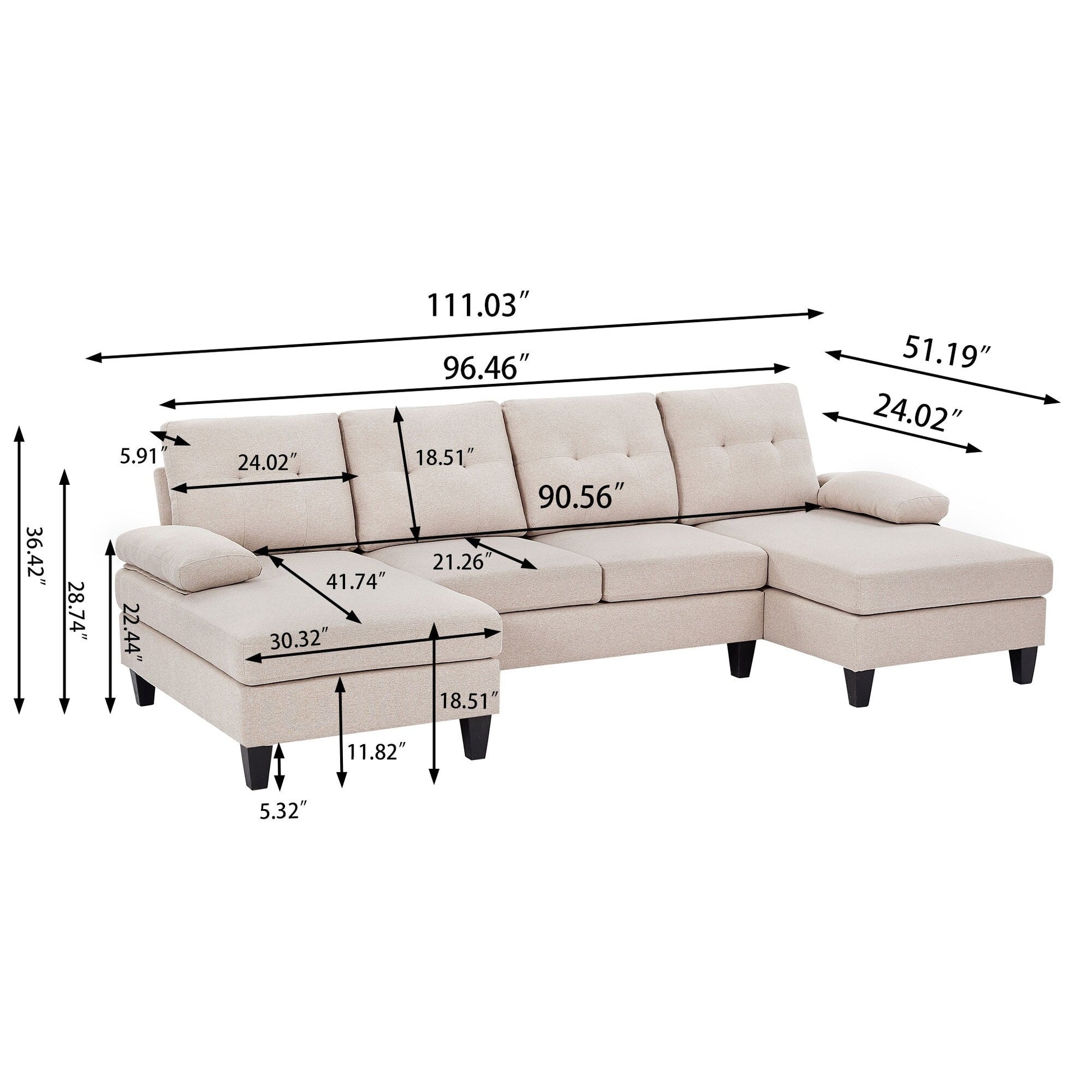 Canapé sectionnel Jarenie en U 4 places avec méridienne double pour salon
