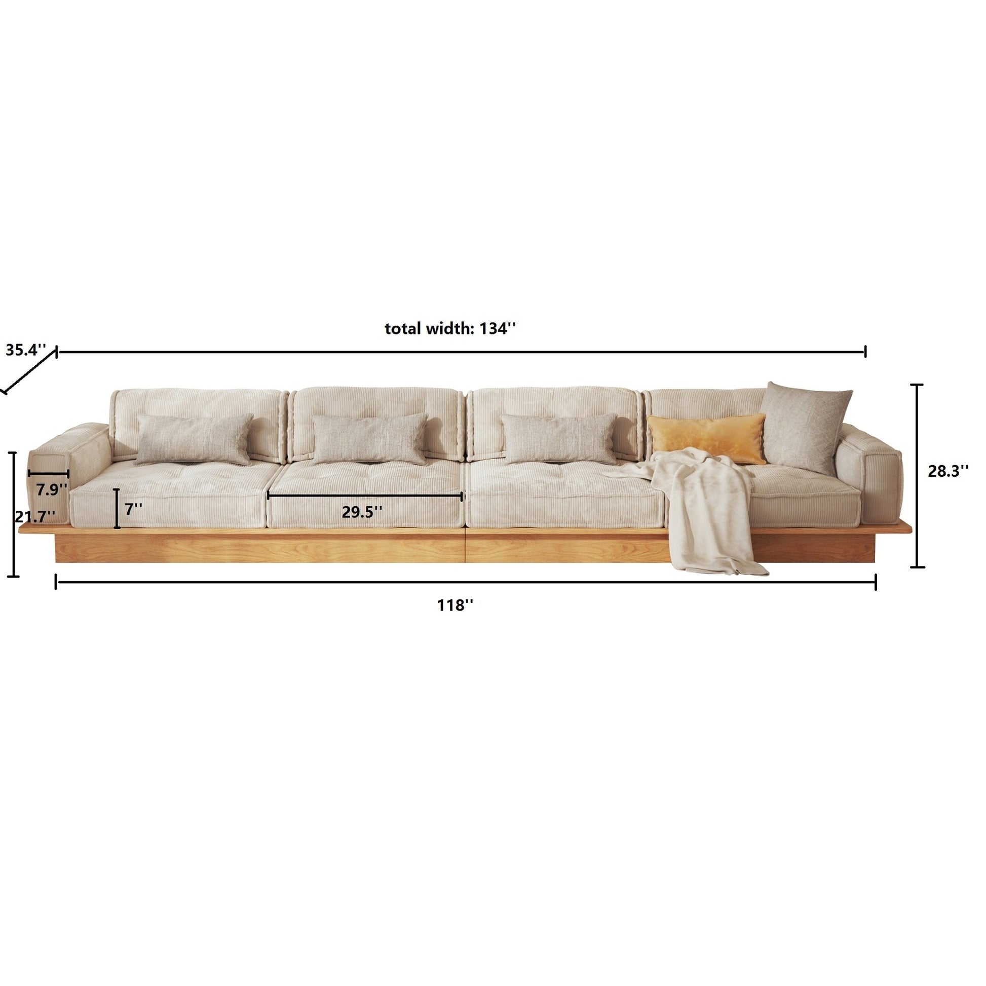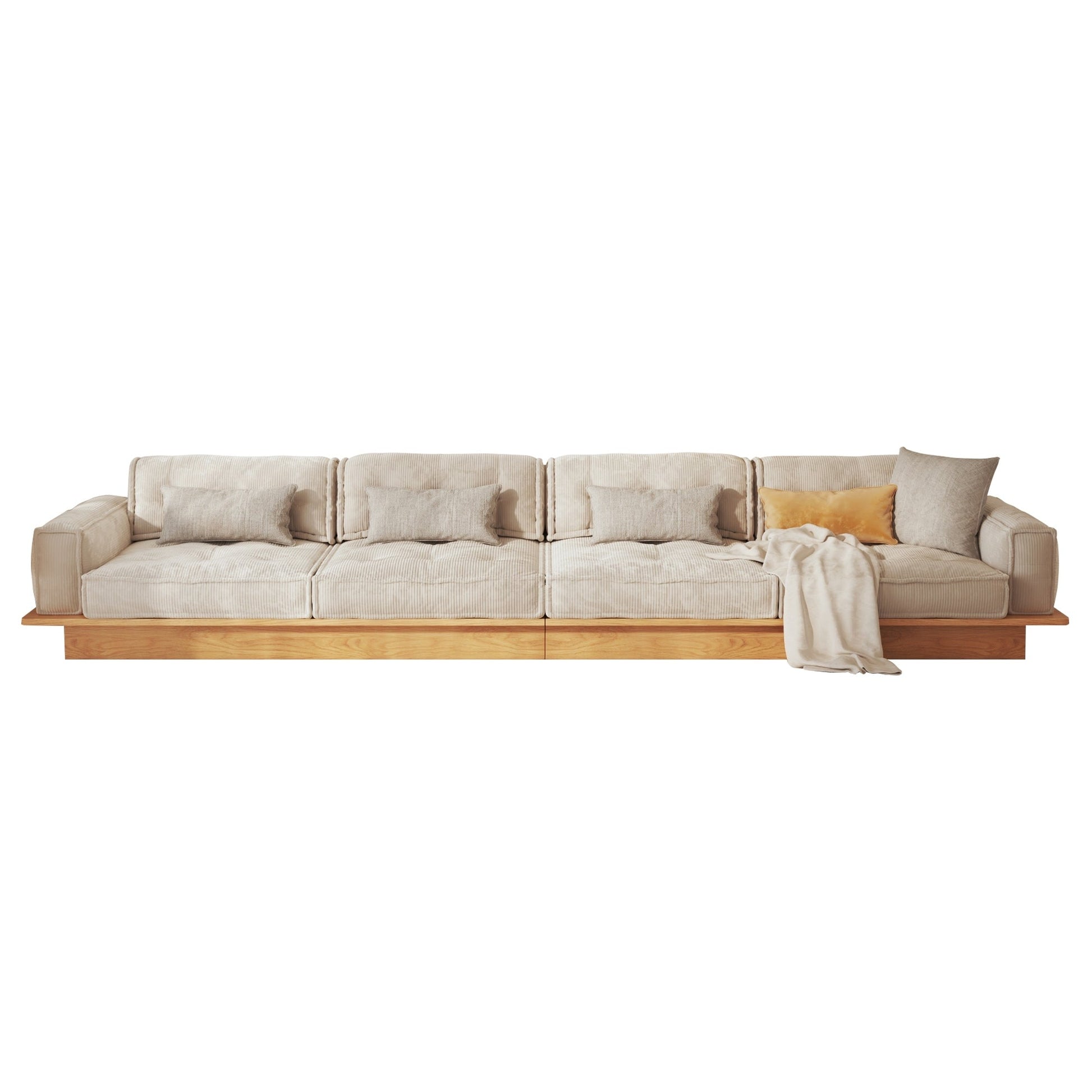 Canapé JASIWAY en velours côtelé beige avec cadre en bois