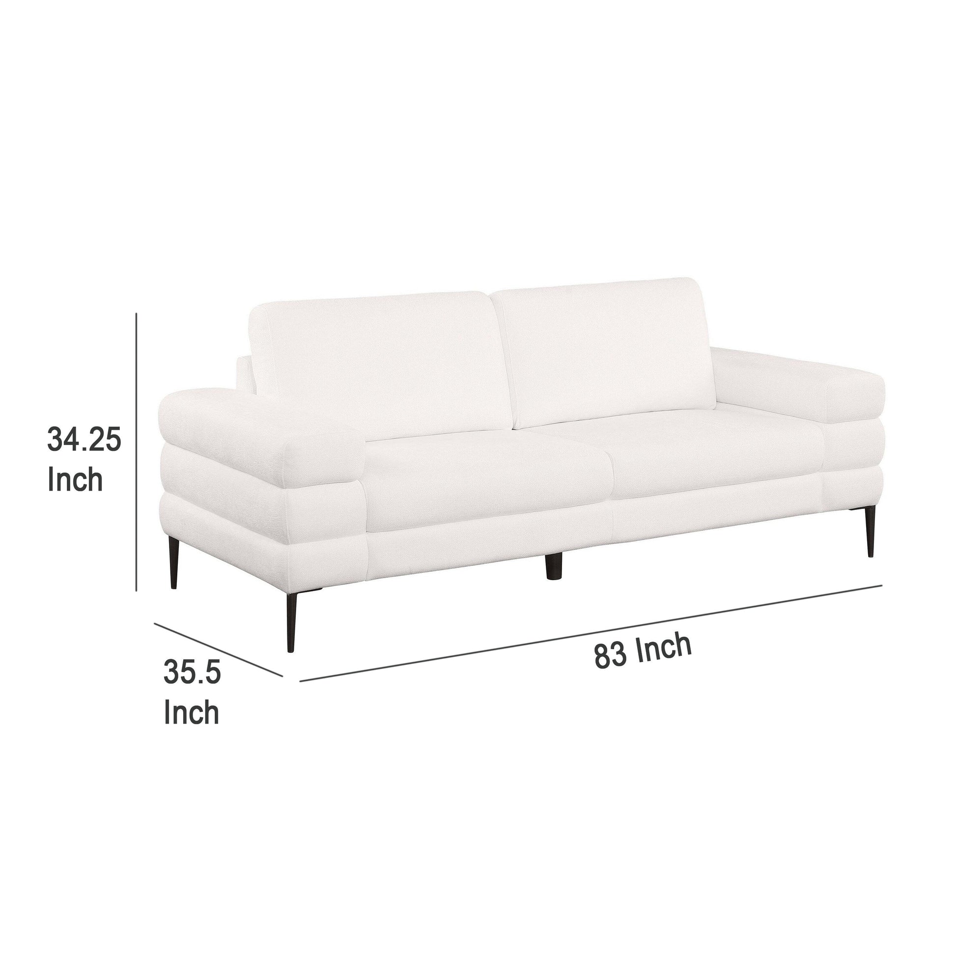 Canapé Jese, 83 pouces, tissu blanc ivoire, accoudoirs à rails de style moderne