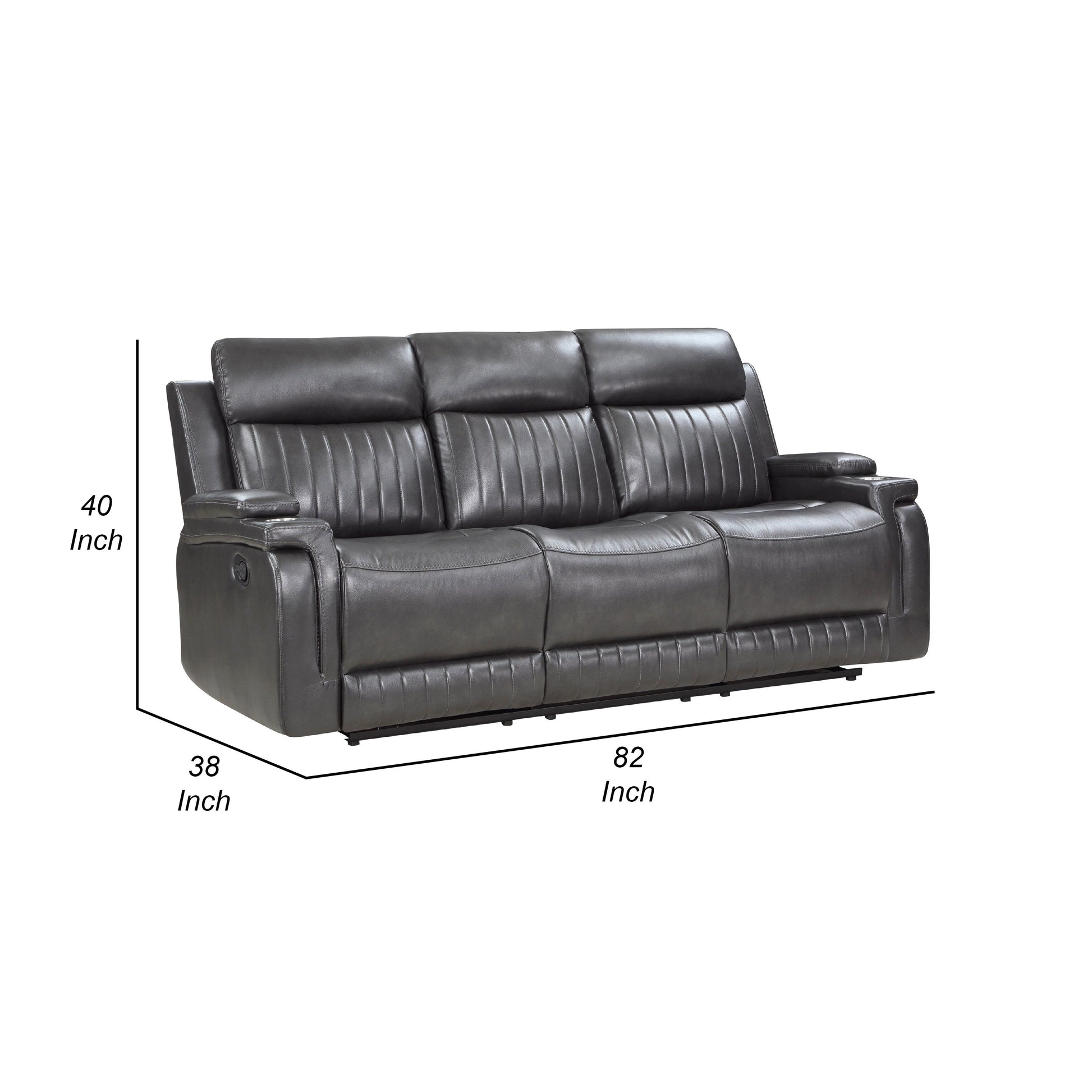 Canapé inclinable manuel Jolo, table rabattable, 82 pouces, similicuir gris