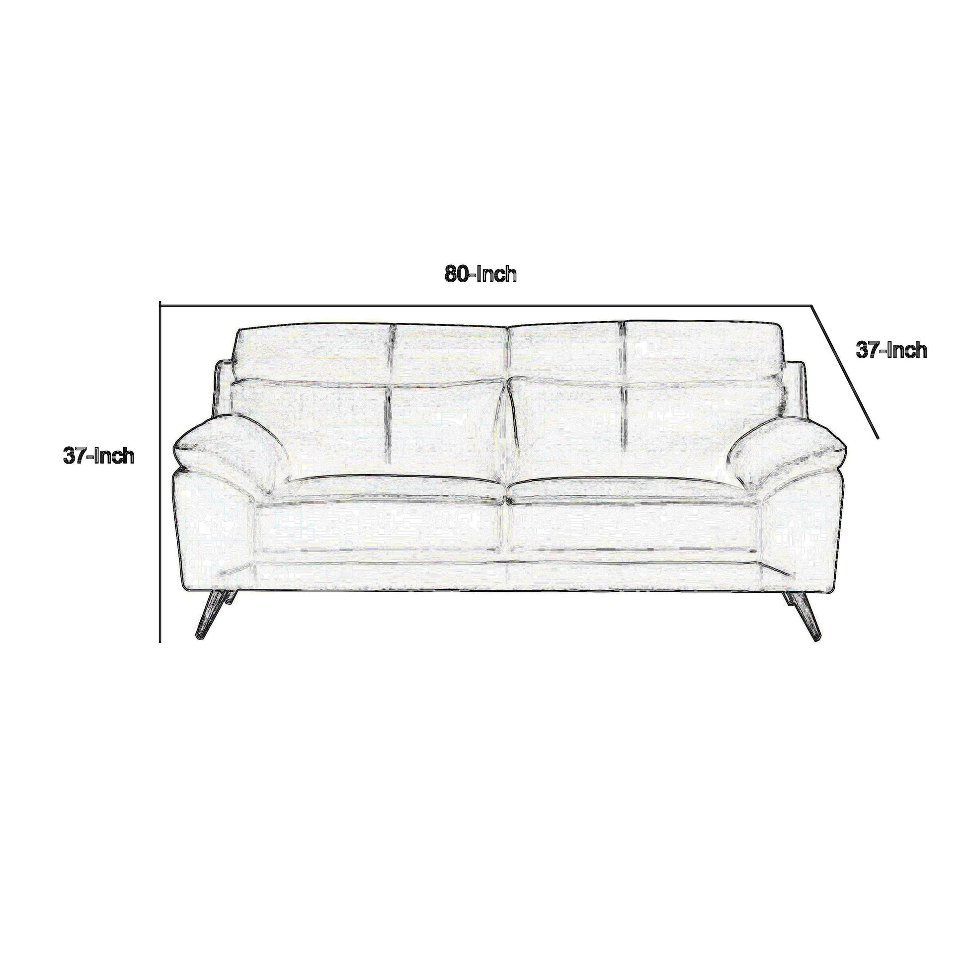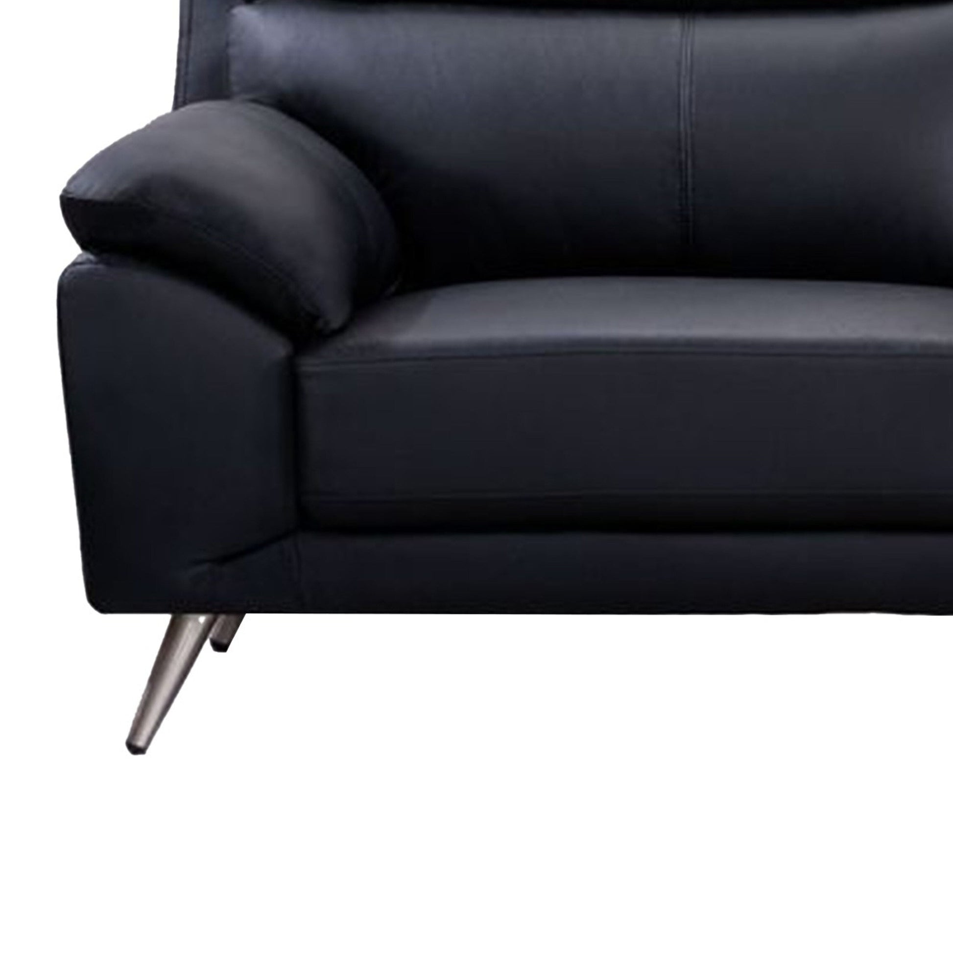 Canapé Justin, cuir pleine fleur noir, coussins en mousse, pieds en acier, 80 pouces