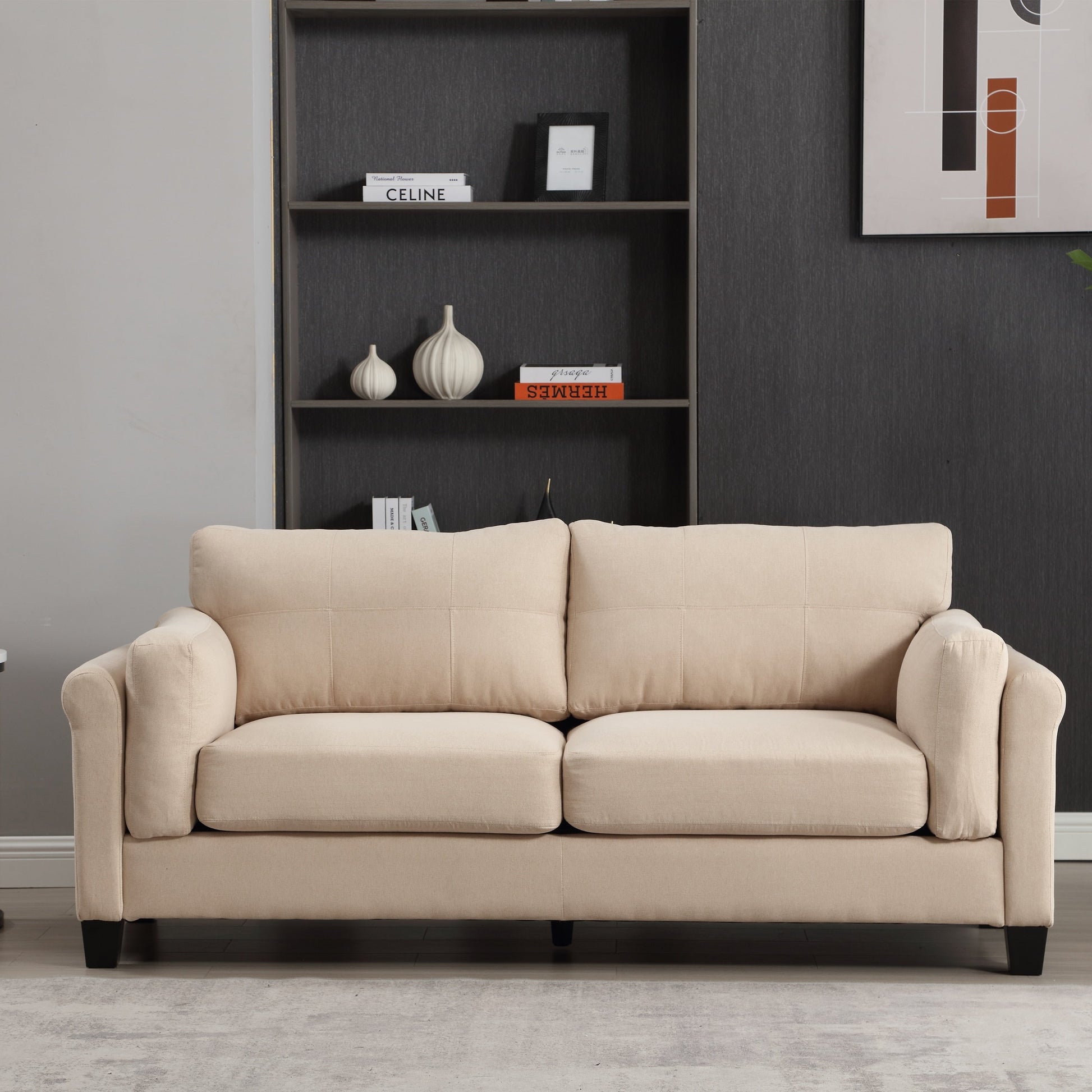 Canapé 3 places capitonné en lin kaki moderne à 79 boutons avec 2 ports USB et pieds carrés en plastique massif