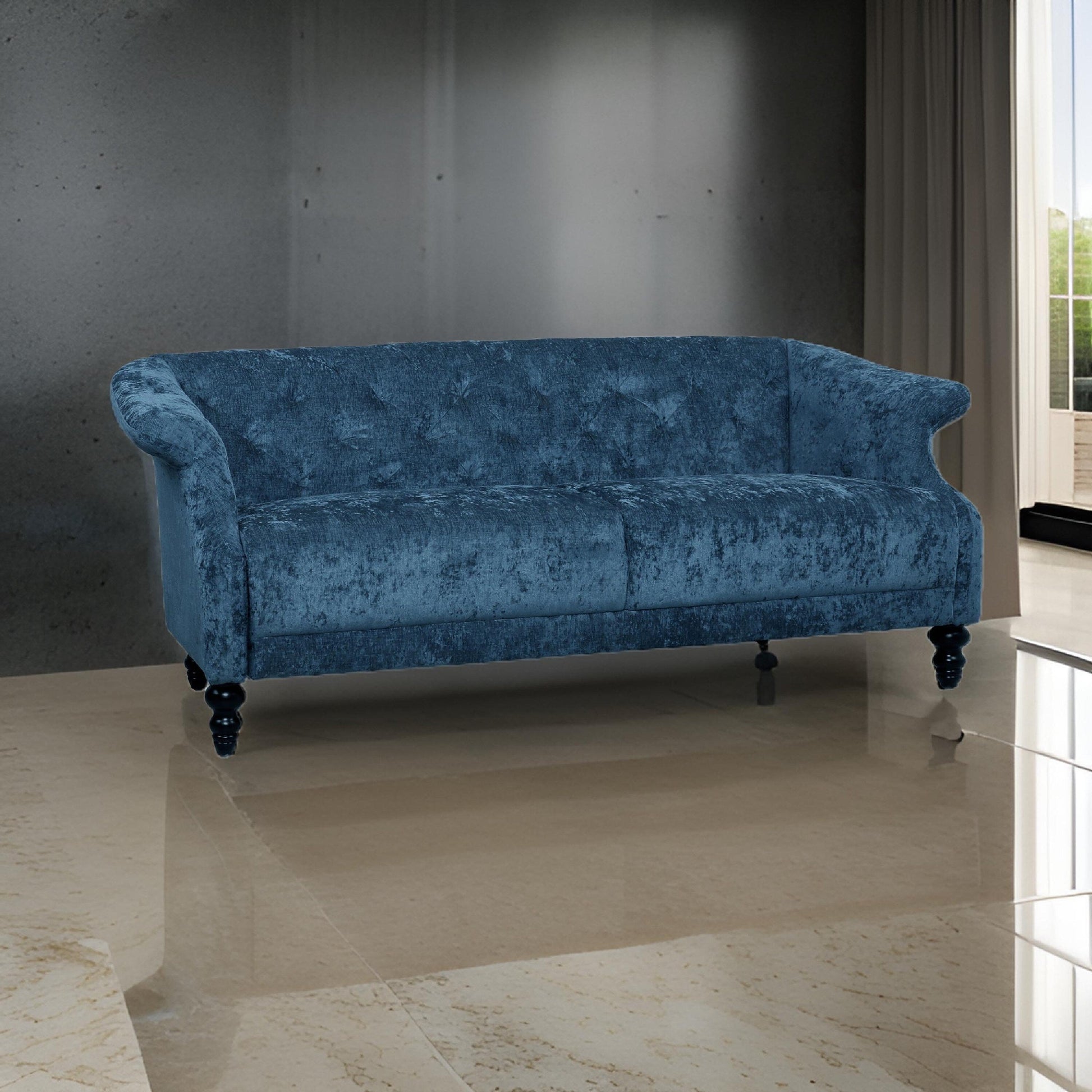 Canapé Kyle, 75 pouces, pieds en bois tourné classique, capitonné à boutons bleu clair