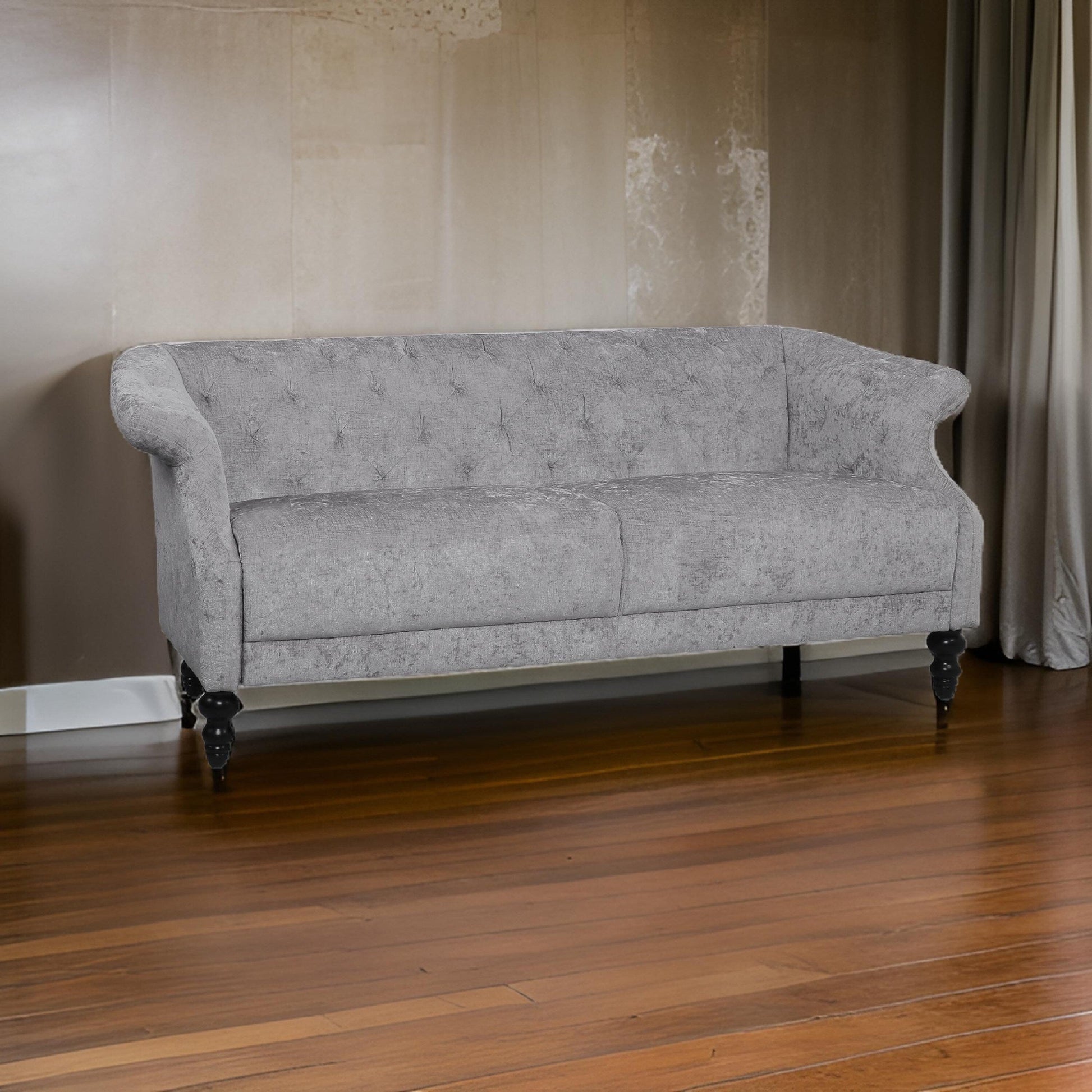 Canapé Kyle, 75 pouces, pieds en bois tourné classique, capitonné à boutons, gris clair