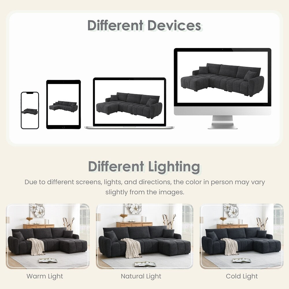 - Quatre éléments modulables : Le canapé est composé de quatre éléments modulables facilement modulables, offrant ainsi une grande flexibilité pour créer différentes configurations d'assise. Son design personnalisable s'adapte à différentes tailles et configurations de pièces, le rendant idéal pour les grands comme pour les petits espaces.