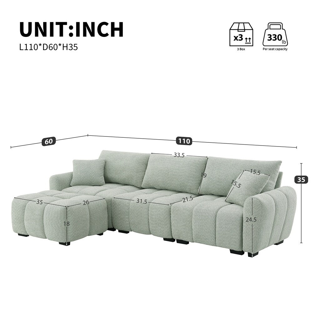 - Assise confortable : Ce canapé est doté d'un coussin d'assise ultra-épais garni de mousse haute densité et de ressorts zigzag, offrant une résilience exceptionnelle, un confort moelleux et une douceur incomparable. La base de l'assise est construite d'un seul tenant, renforçant ainsi la solidité structurelle du canapé pour une durabilité accrue.