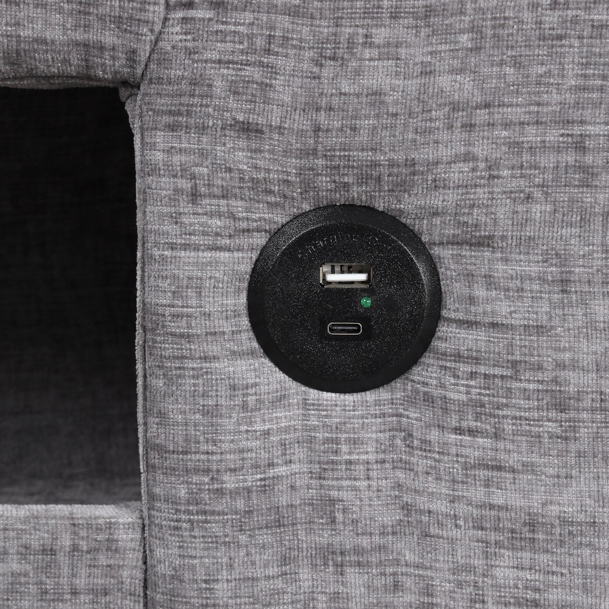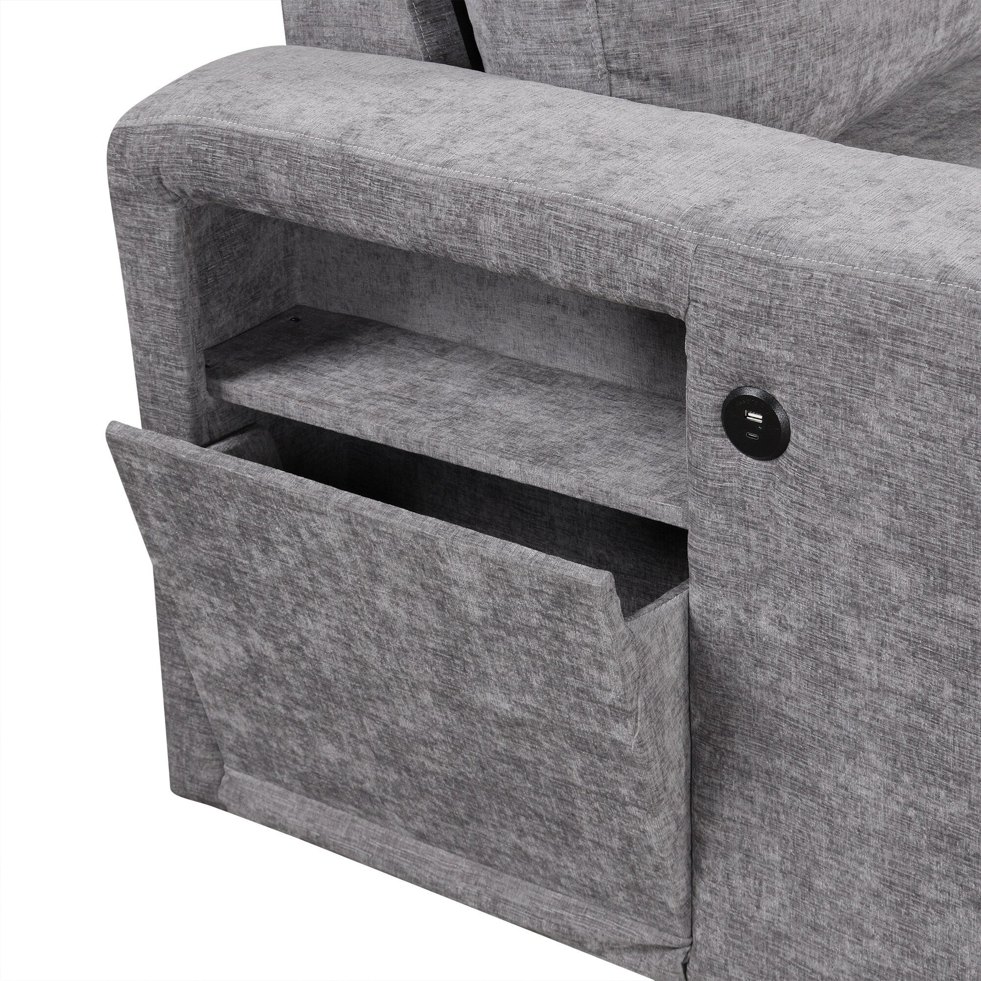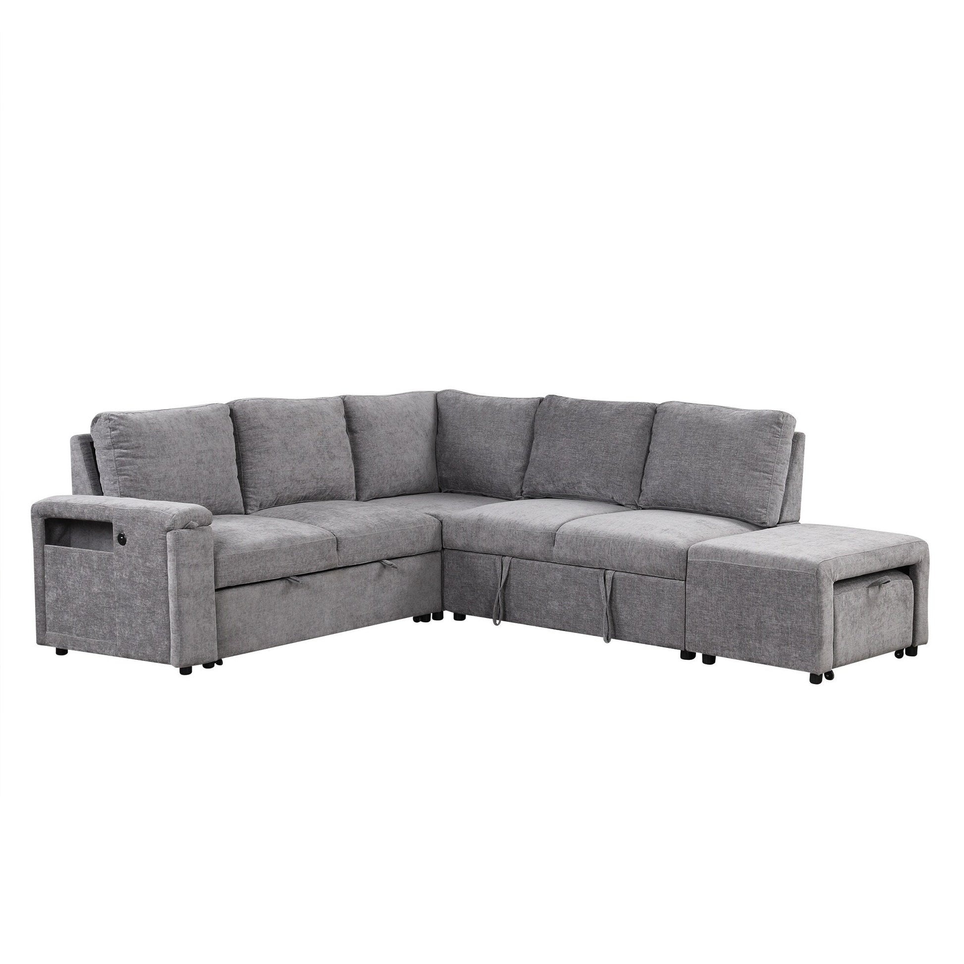 Canapé sectionnel 5 places en L avec pouf coulissant, porte-gobelets intégrés, port de chargement USB et coussins amovibles