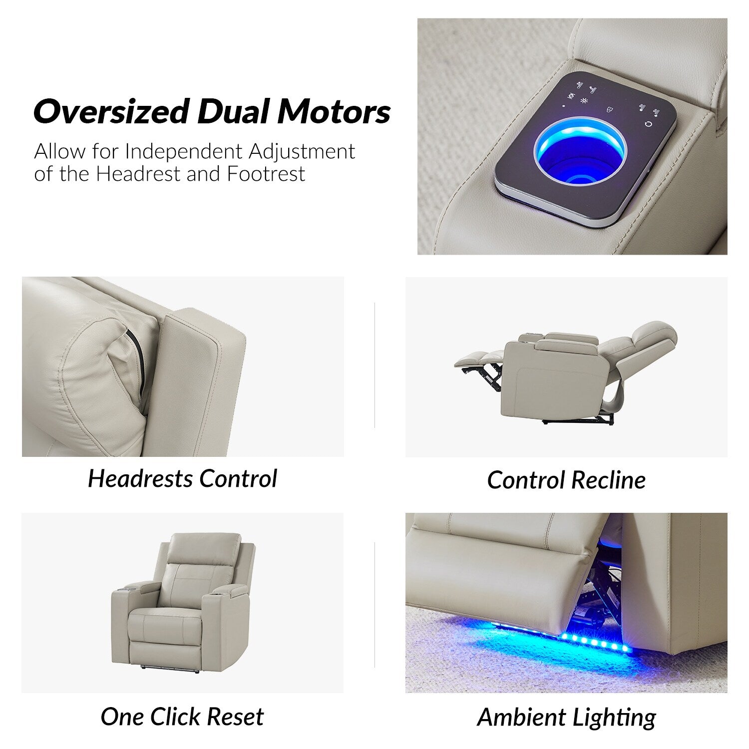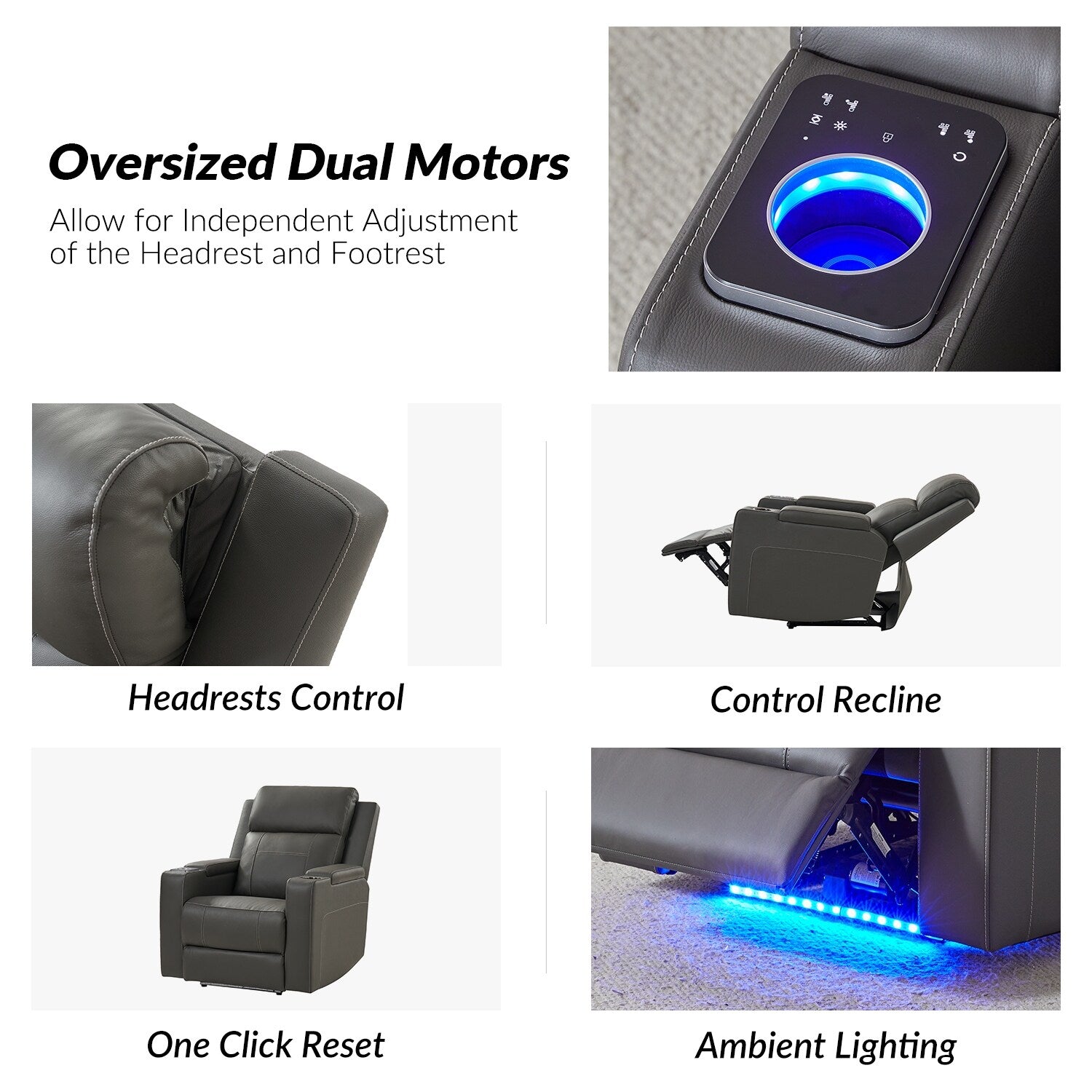 Découvrez ce fauteuil inclinable électrique en cuir véritable, alliant élégance traditionnelle et confort moderne. Ce grand fauteuil inclinable électrique à deux moteurs est conçu pour allier confort et fonctionnalité. Grâce à ses commandes intégrées pour les gobelets, vous pouvez ajuster votre position d'assise en toute simplicité, par simple pression ou par bouton. Personnalisez votre confort grâce à l'appui-tête et à l'assise réglables, avec fonction de réinitialisation et de verrouillage par simple pression. Profitez d'un confort accru grâce aux porte-gobelets relevables, qui font également office de station de recharge sans fil. Un éclairage d'ambiance illumine les accoudoirs avant et droit, créant une ambiance chaleureuse. Les accoudoirs fonctionnels offrent de nombreux rangements, avec un porte-gobelet à gauche. Conçu pour un confort spacieux, l'assise généreuse offre un espace de détente généreux. De plus, chaque fauteuil inclinable est fourni avec un gobelet isotherme blanc, idéal pour savourer votre boisson préférée en toute détente. Découvrez le confort de ce fauteuil inclinable électrique classique en cuir véritable.
