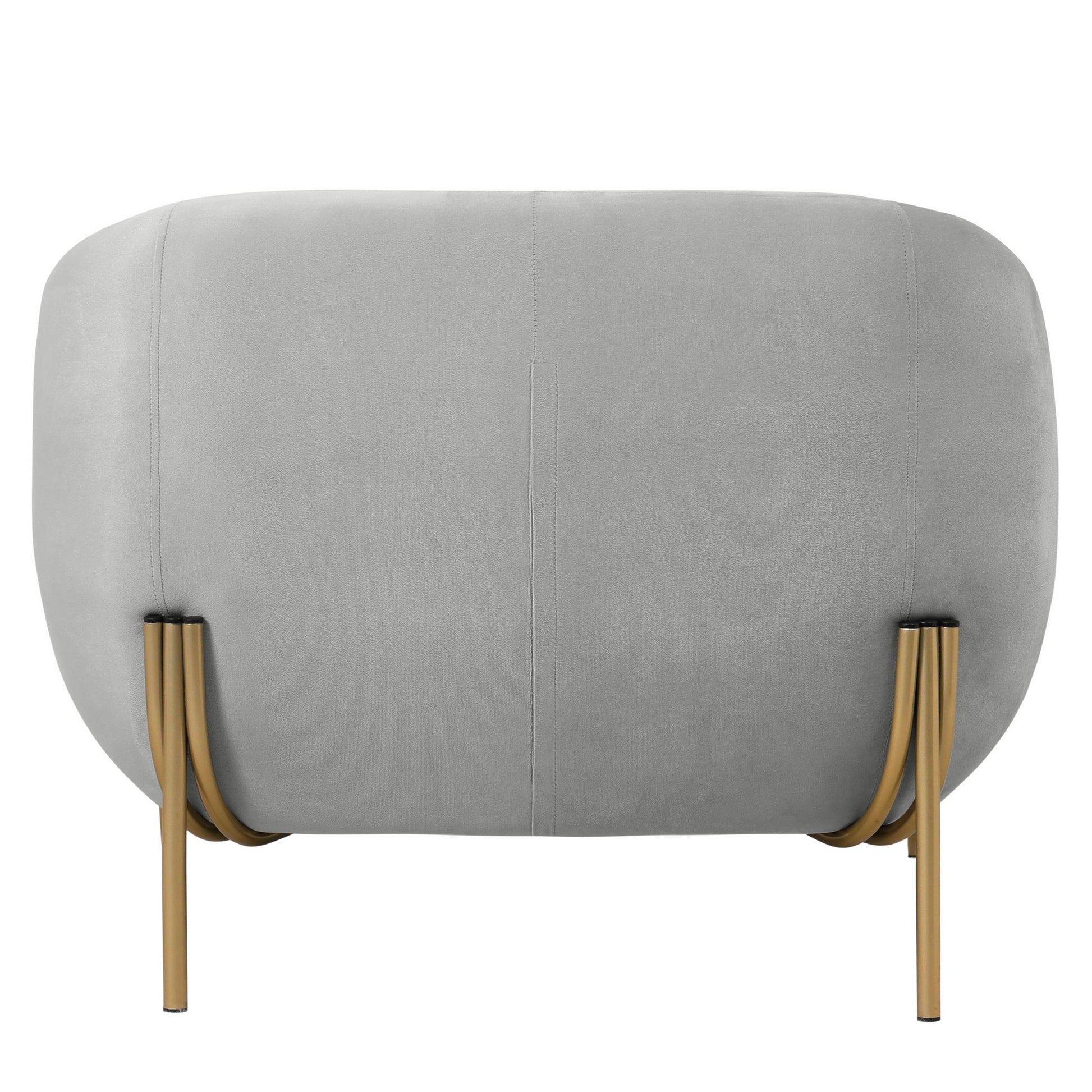 Ce fauteuil d'appoint présente un design continu avec un dossier, des accoudoirs et une assise incurvés, reliés harmonieusement et sans rupture apparente. Son élégante structure repose sur une base renforcée en métal doré, reliant l'assise aux pieds pour une stabilité accrue. La base est également dotée d'éléments en caoutchouc sur le dessus, qui agissent comme un tampon protecteur pour réduire les frottements et prévenir l'usure du revêtement. -