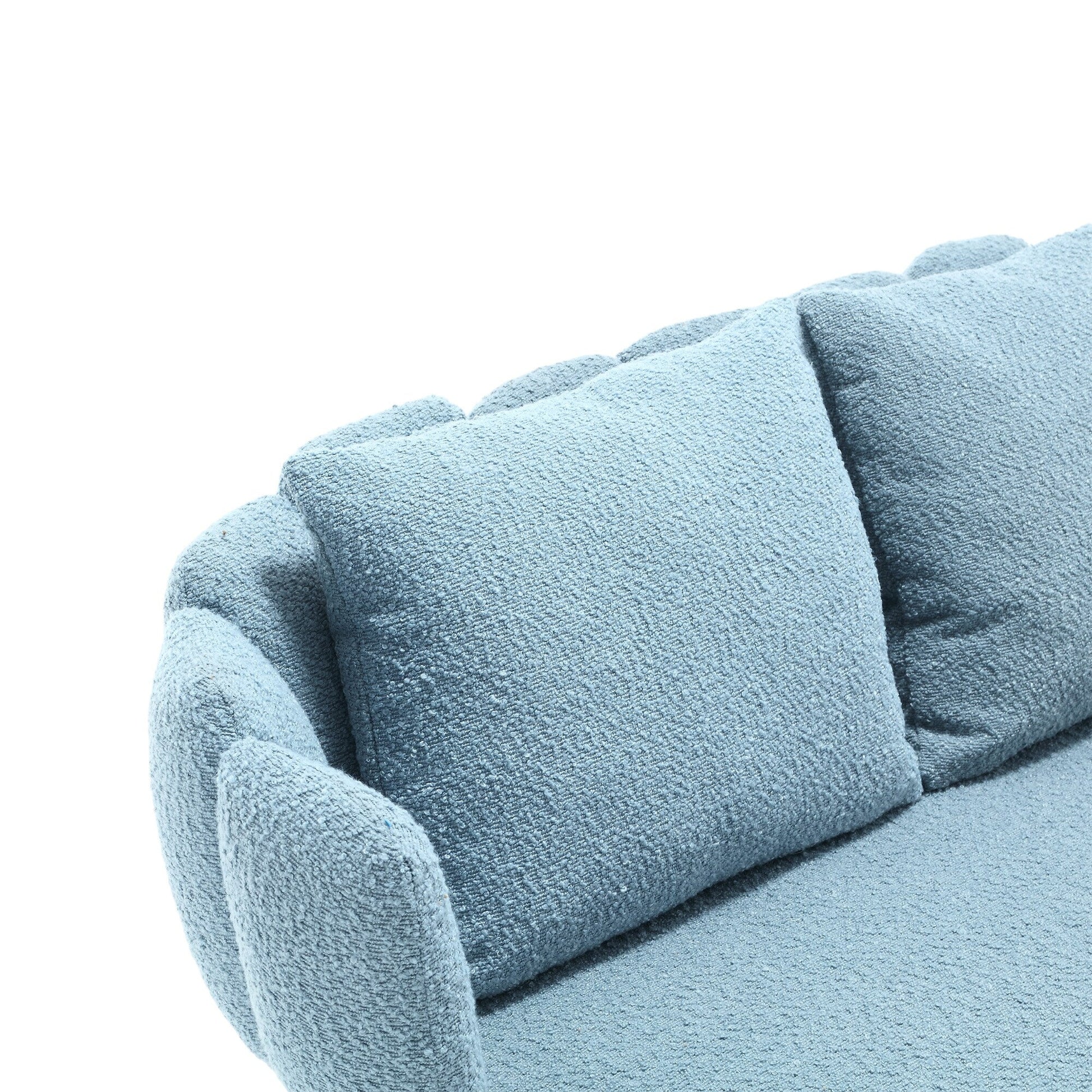 Canapé causeuse bleu clair bouclé avec cadre en métal