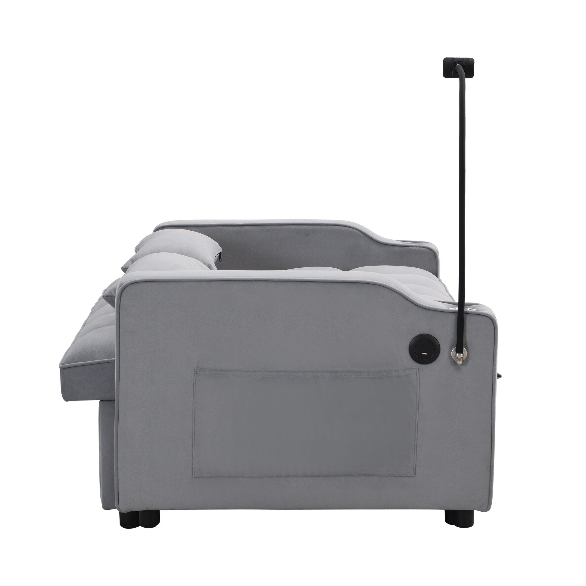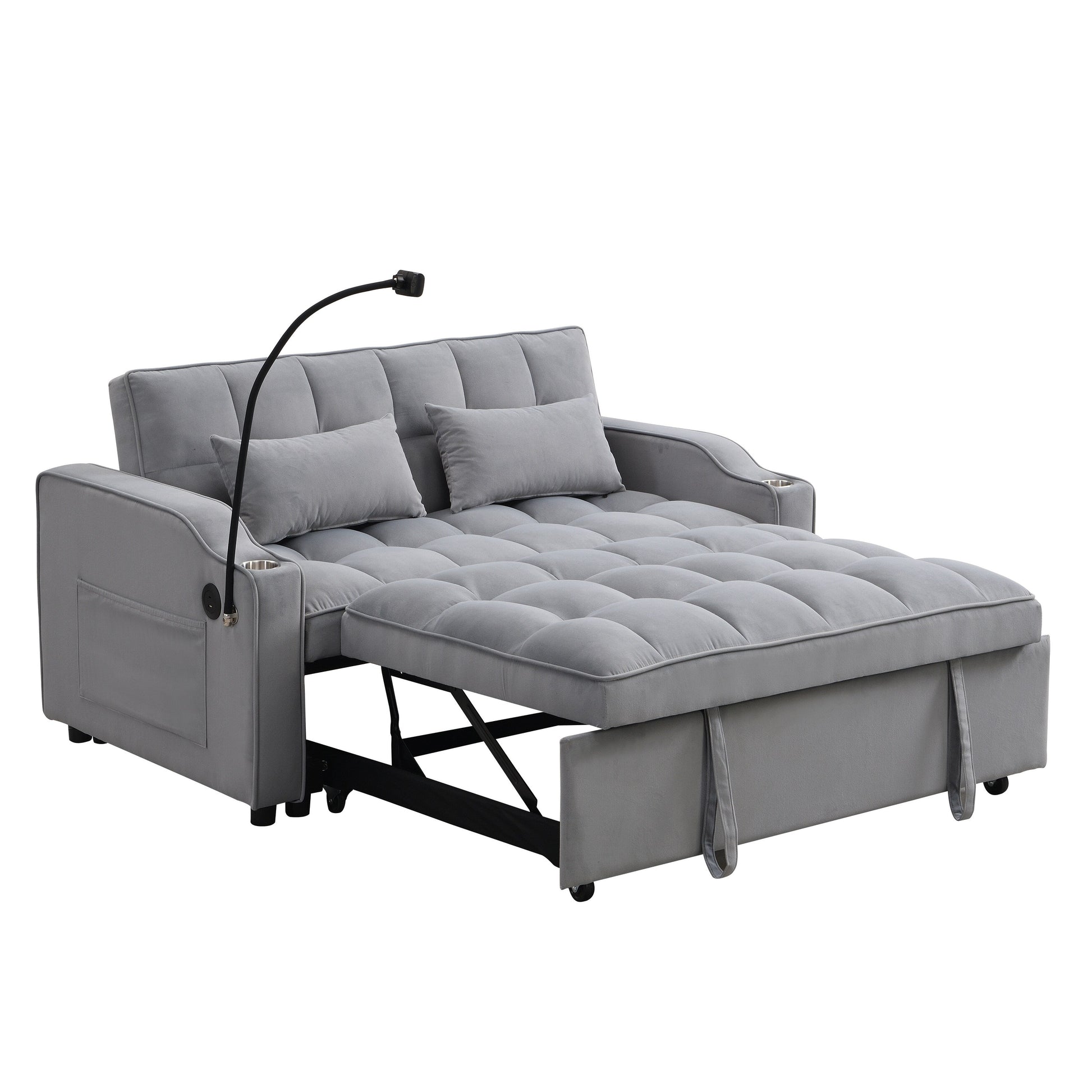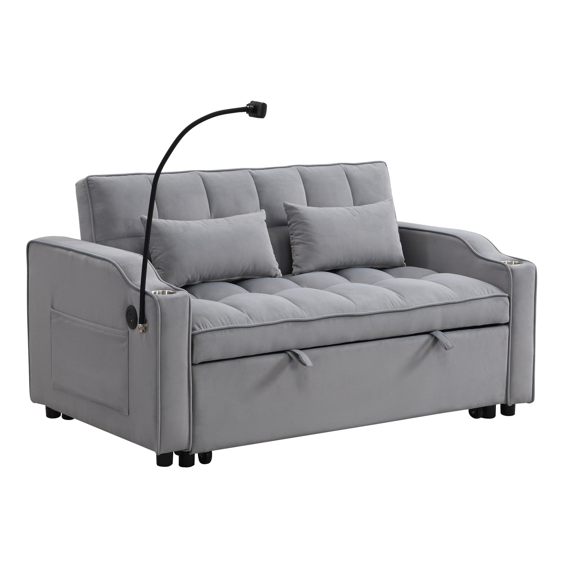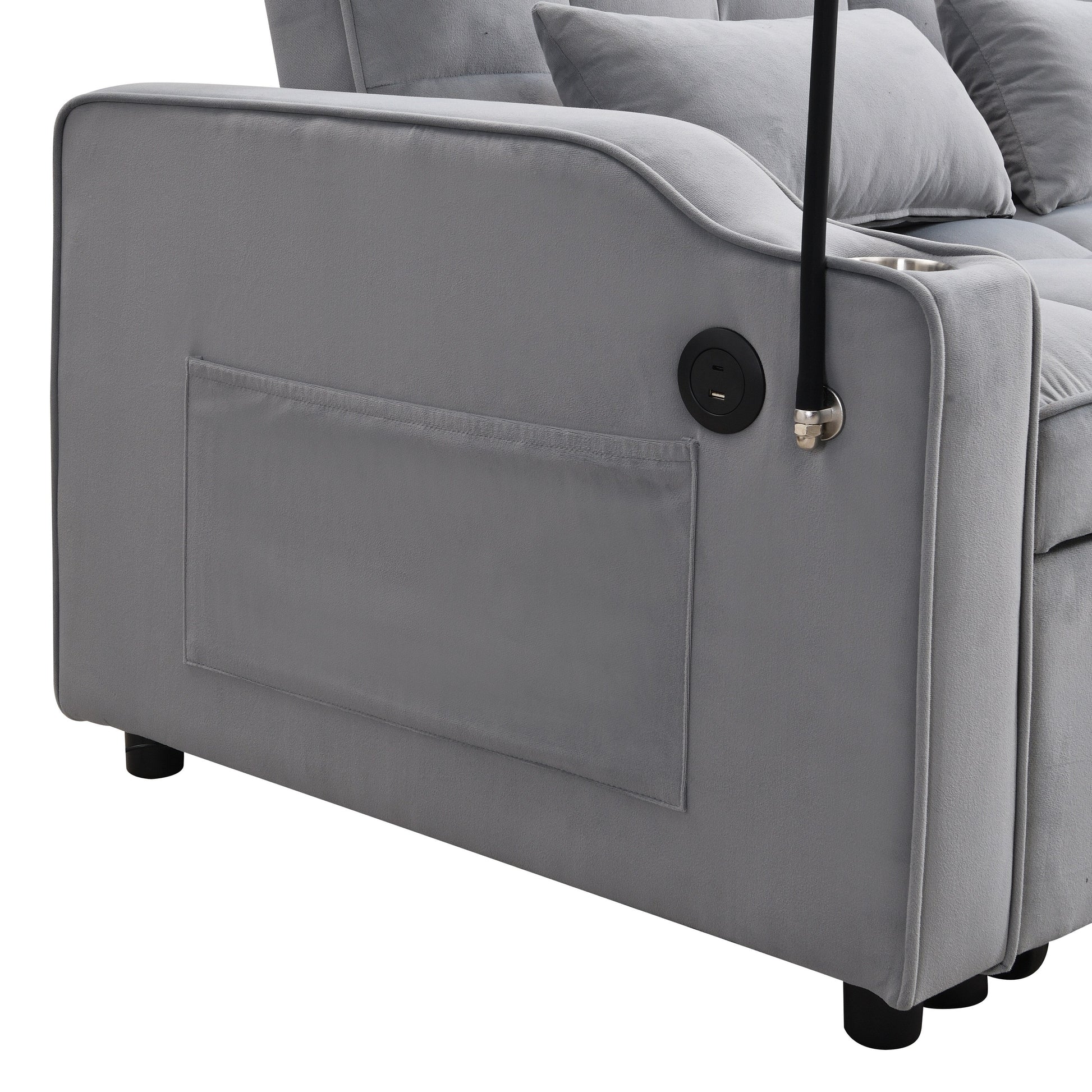 Canapé-lit convertible en velours gris clair avec dossier réglable