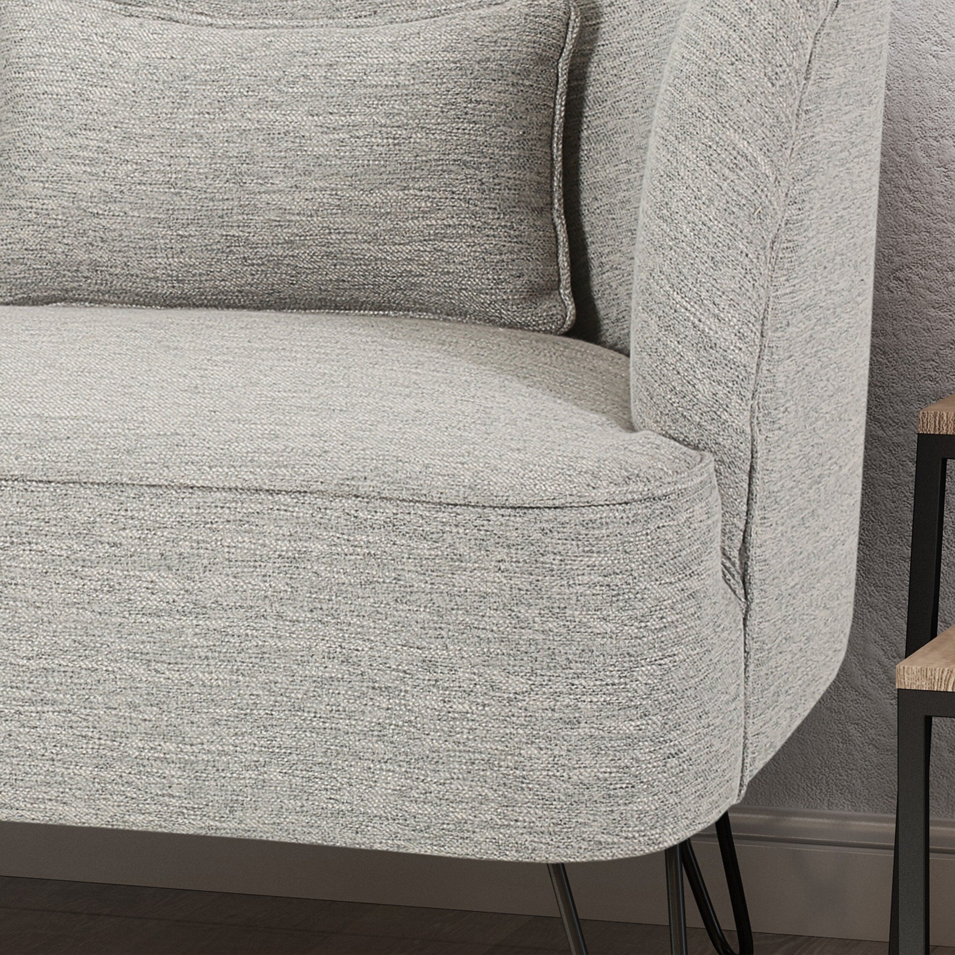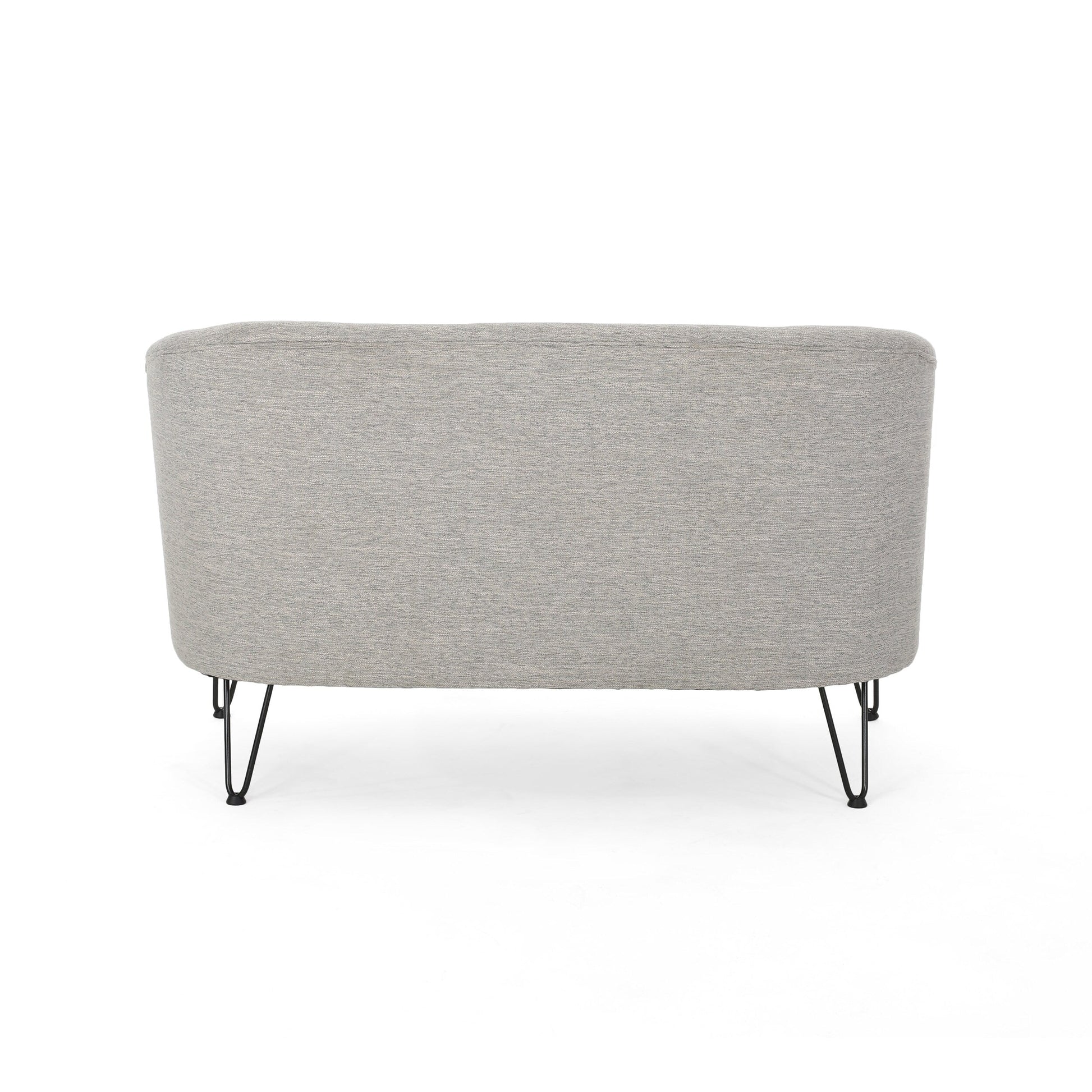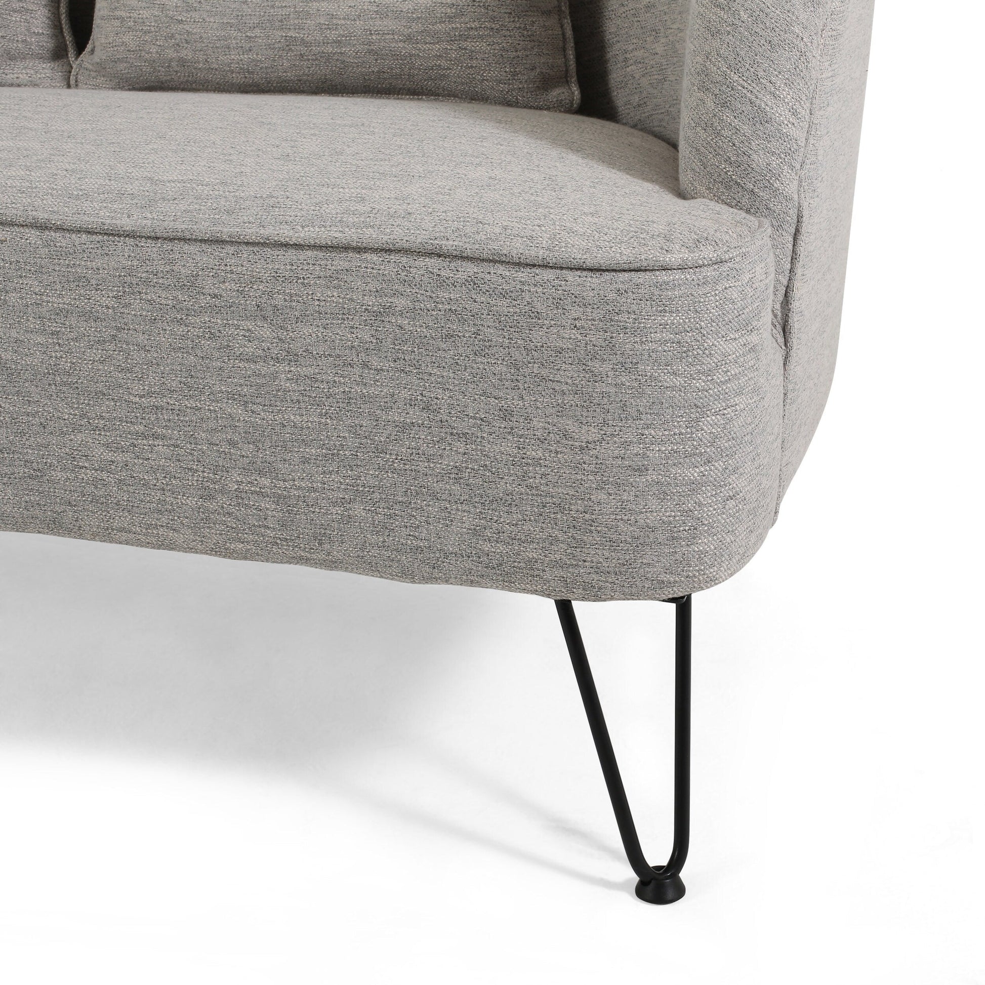 - Pieds en épingle à cheveux polis : Arborant une finition noire épurée, quatre pieds en épingle à cheveux en fer complètent le design. Ces pieds offrent non seulement une base robuste, mais ajoutent également une touche moderne et élégante à la causeuse, rehaussant ainsi son esthétique générale.