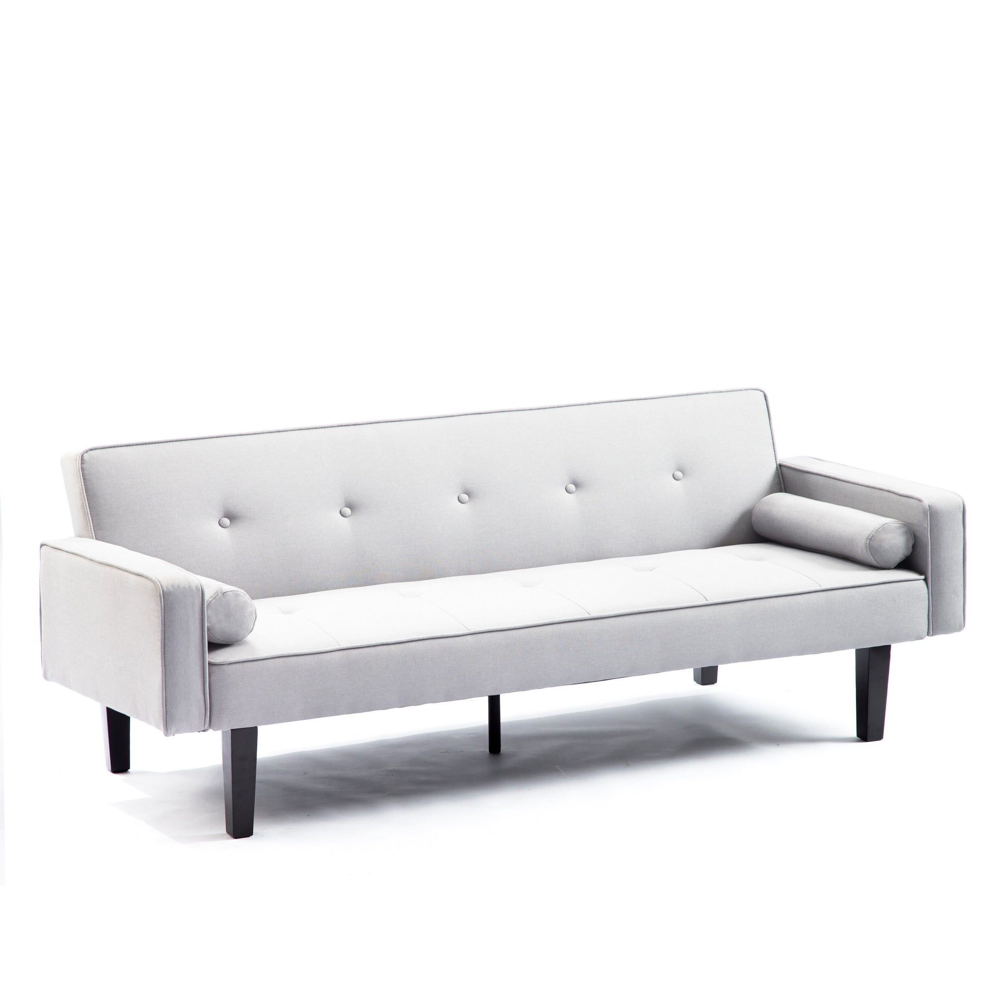 Canapé-lit futon 3 places convertible gris clair avec pieds en bois