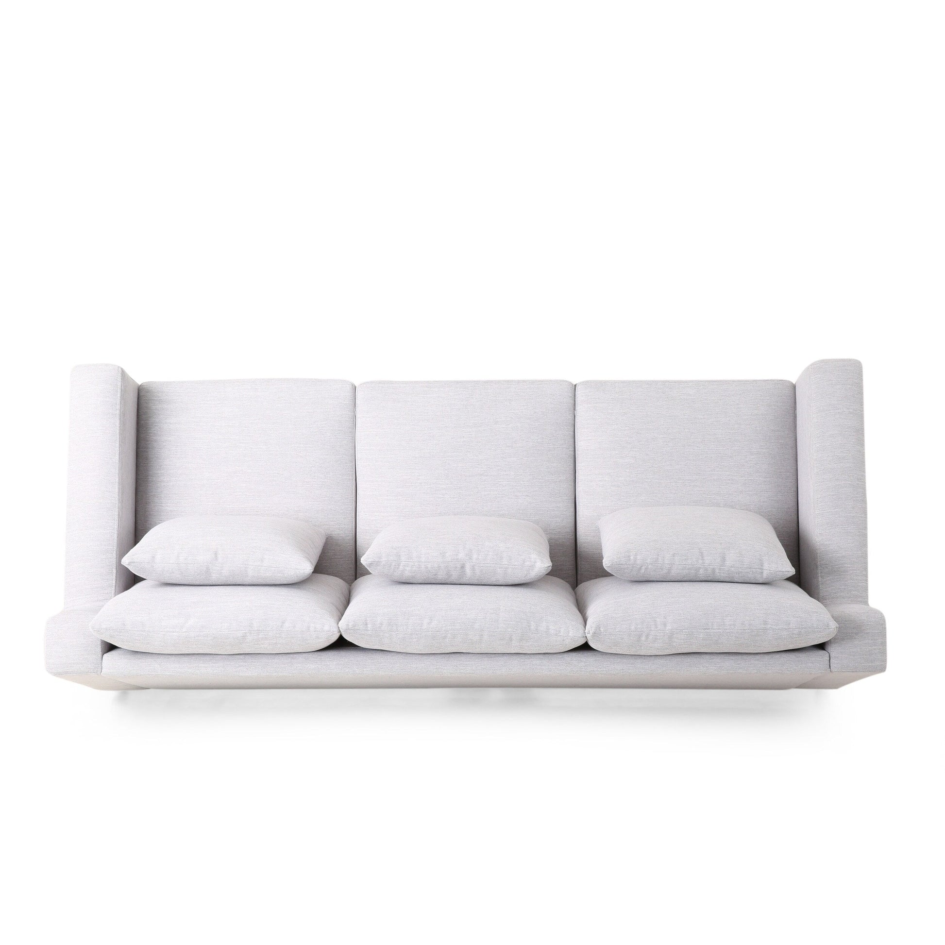 Canapé 3 places gris clair moderne 80 avec pieds en bois et coussins assortis pour le salon
