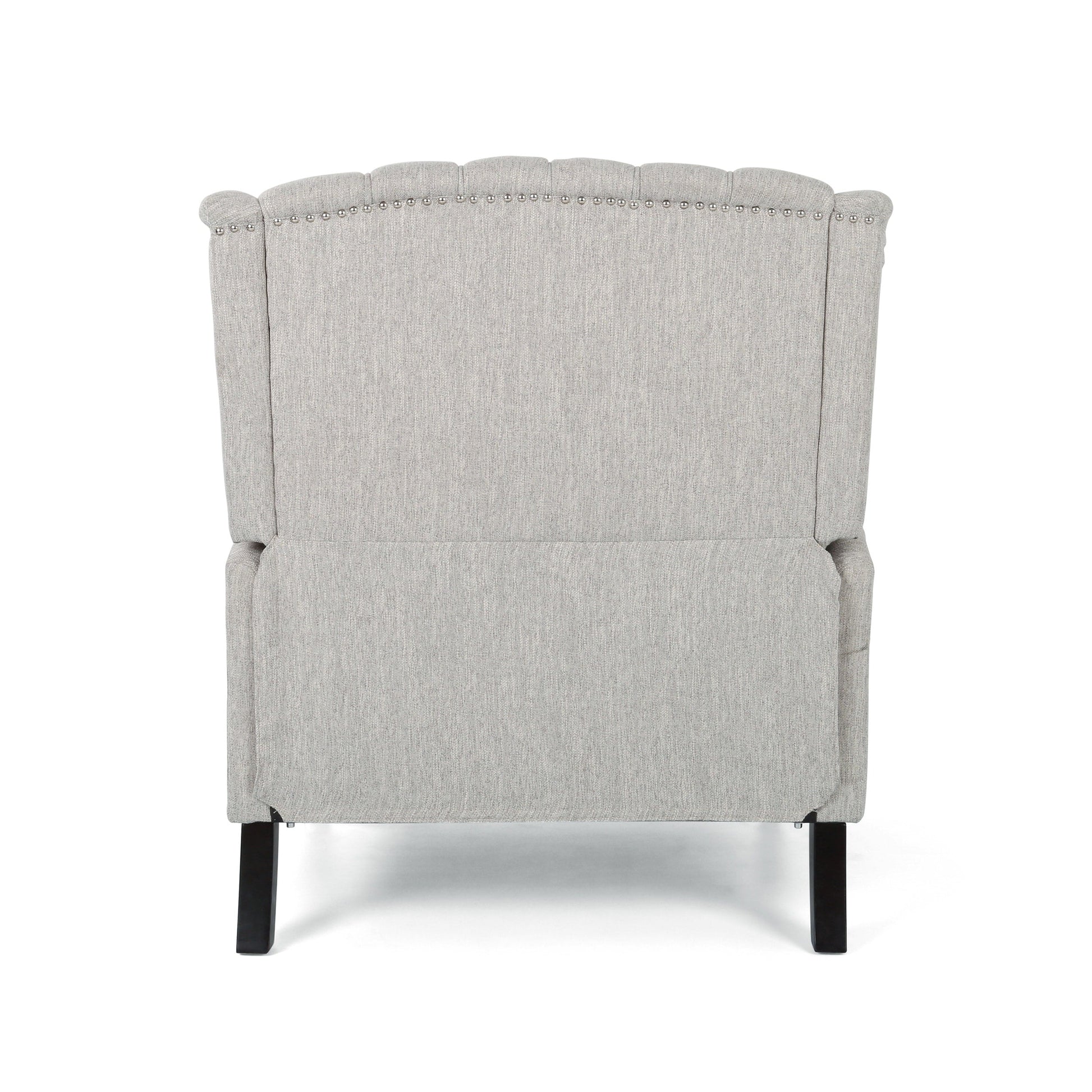 Fauteuil inclinable rembourré surdimensionné gris clair avec repose-pieds, dossier capitonné et clous décoratifs