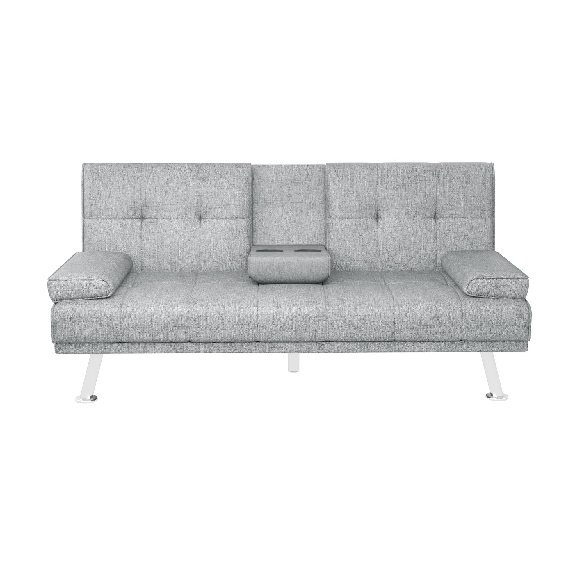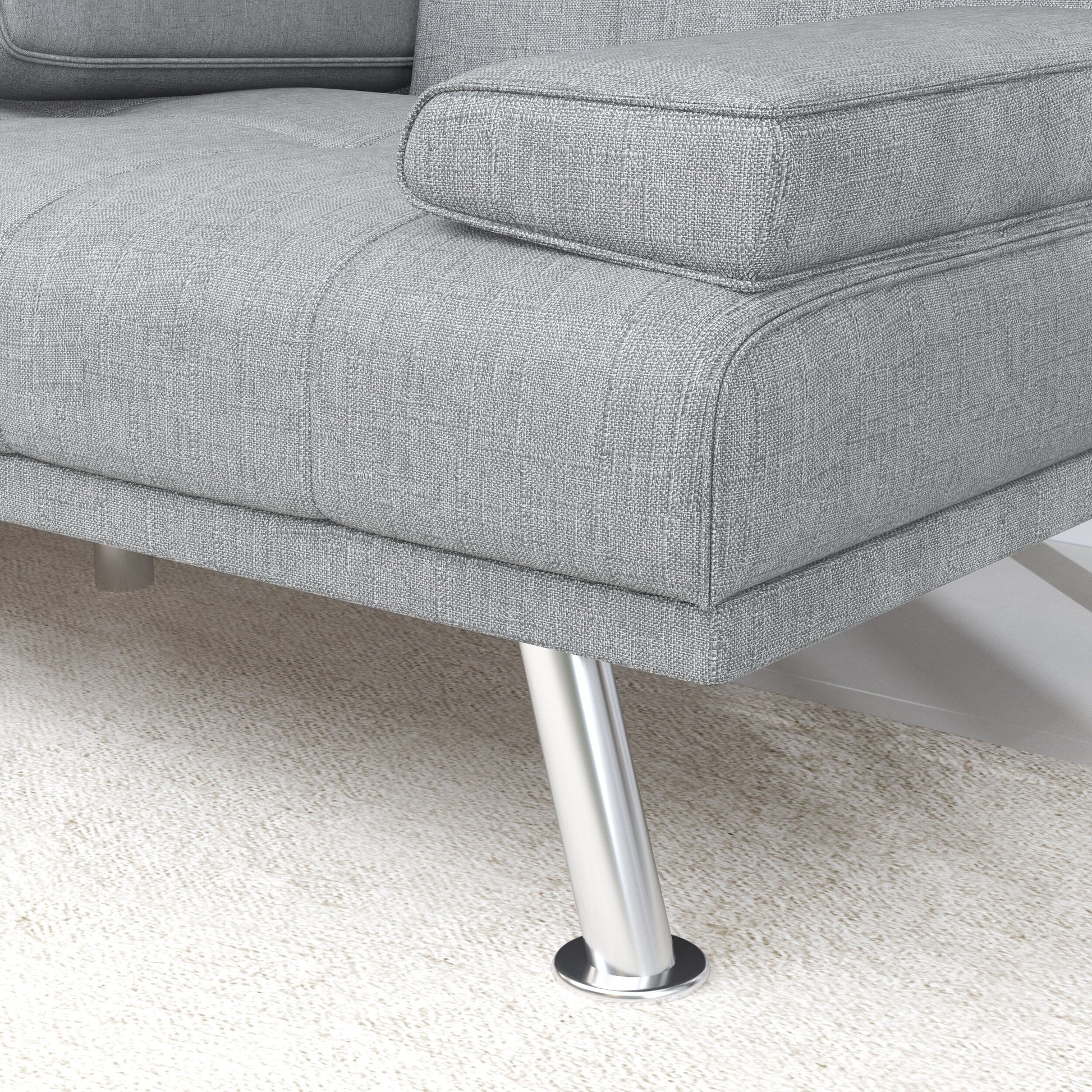 Canapé-lit 66 places rembourré gris clair avec 2 porte-gobelets et pieds en acier inoxydable pour le salon