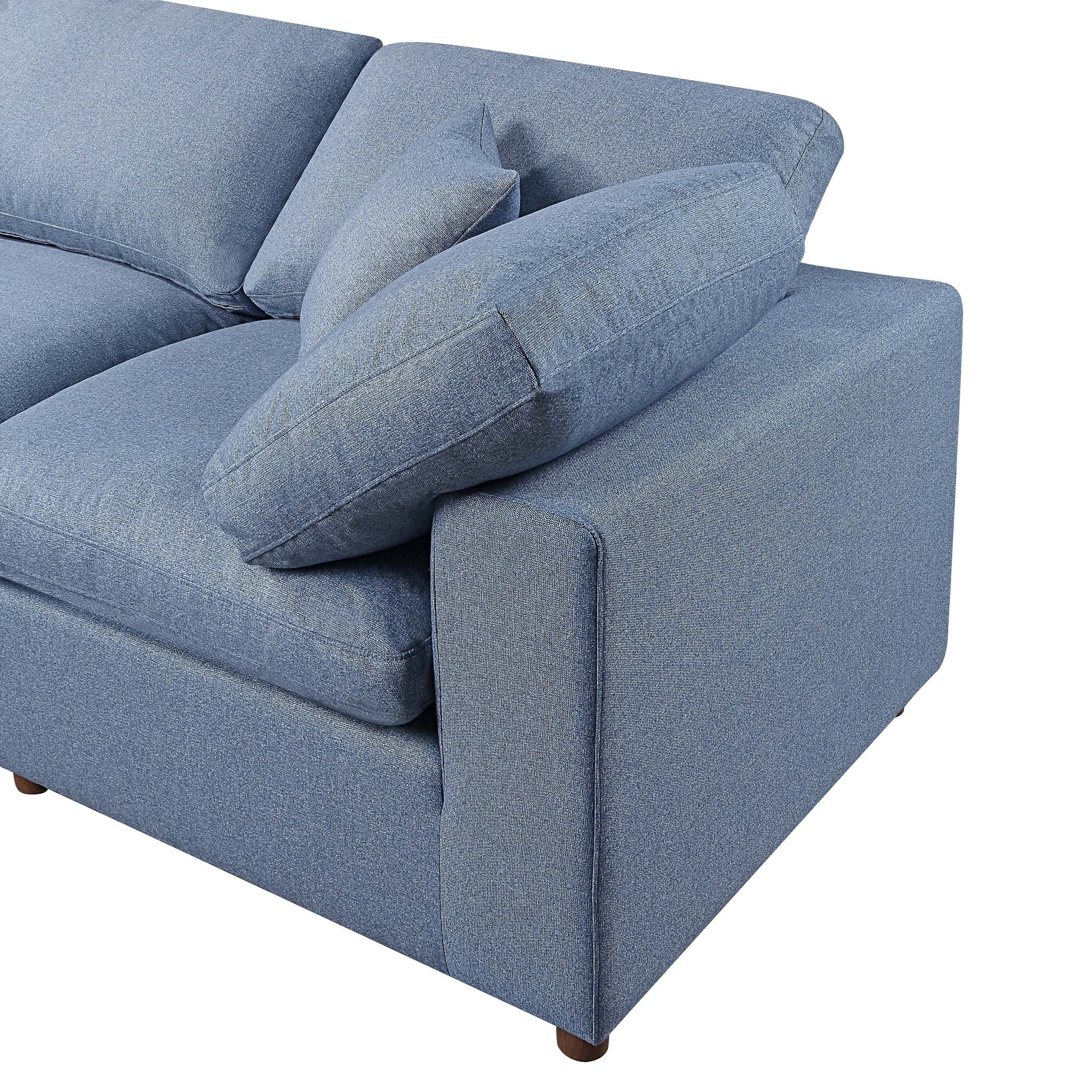 - Confort et maintien : Le tissu en lin bleu (5 % lin, 40 % viscose, 55 % polyester) garni de plumes offre un confort optimal et un excellent soutien. Le canapé conserve sa forme même après une utilisation prolongée, vous permettant de vous détendre et de profiter de vos loisirs après une dure journée de travail.